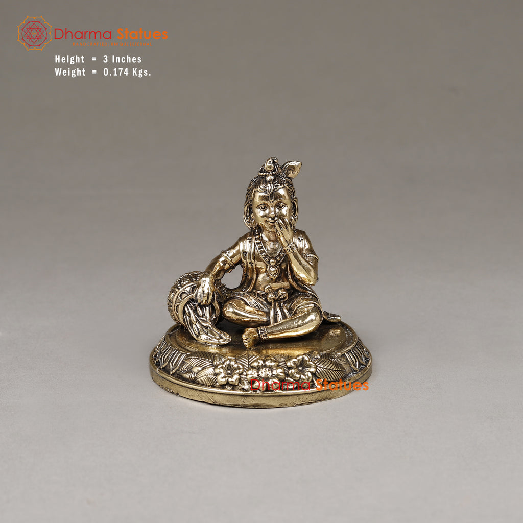 Brass Krishna with Butter, 3"