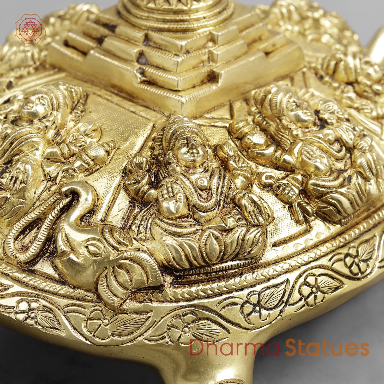 Brass Auspicious Ashtalakshmi Tortoise with Meru, Golden finish 13.5”