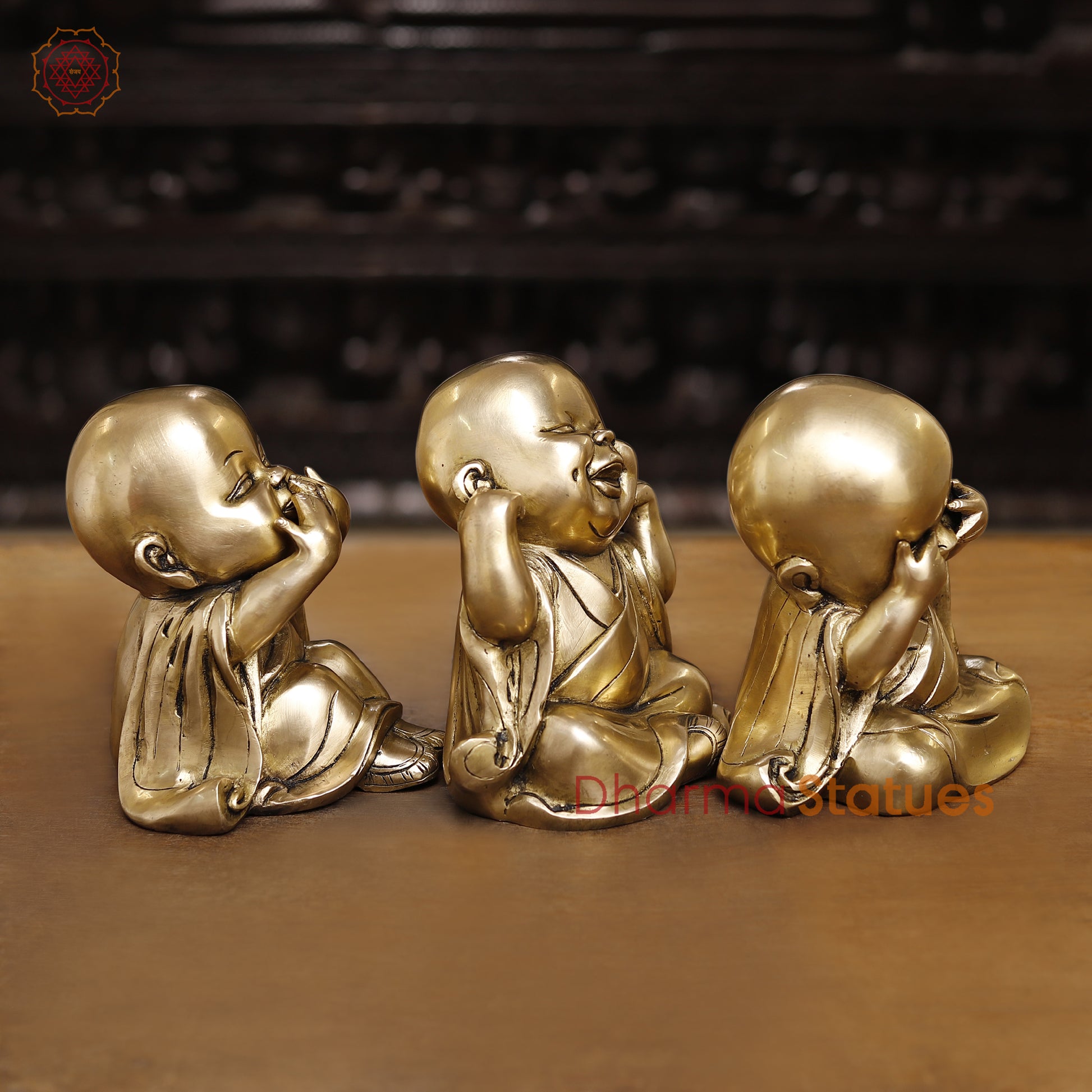 Brass Happy Monks, Fine Golden Finish 6.5"