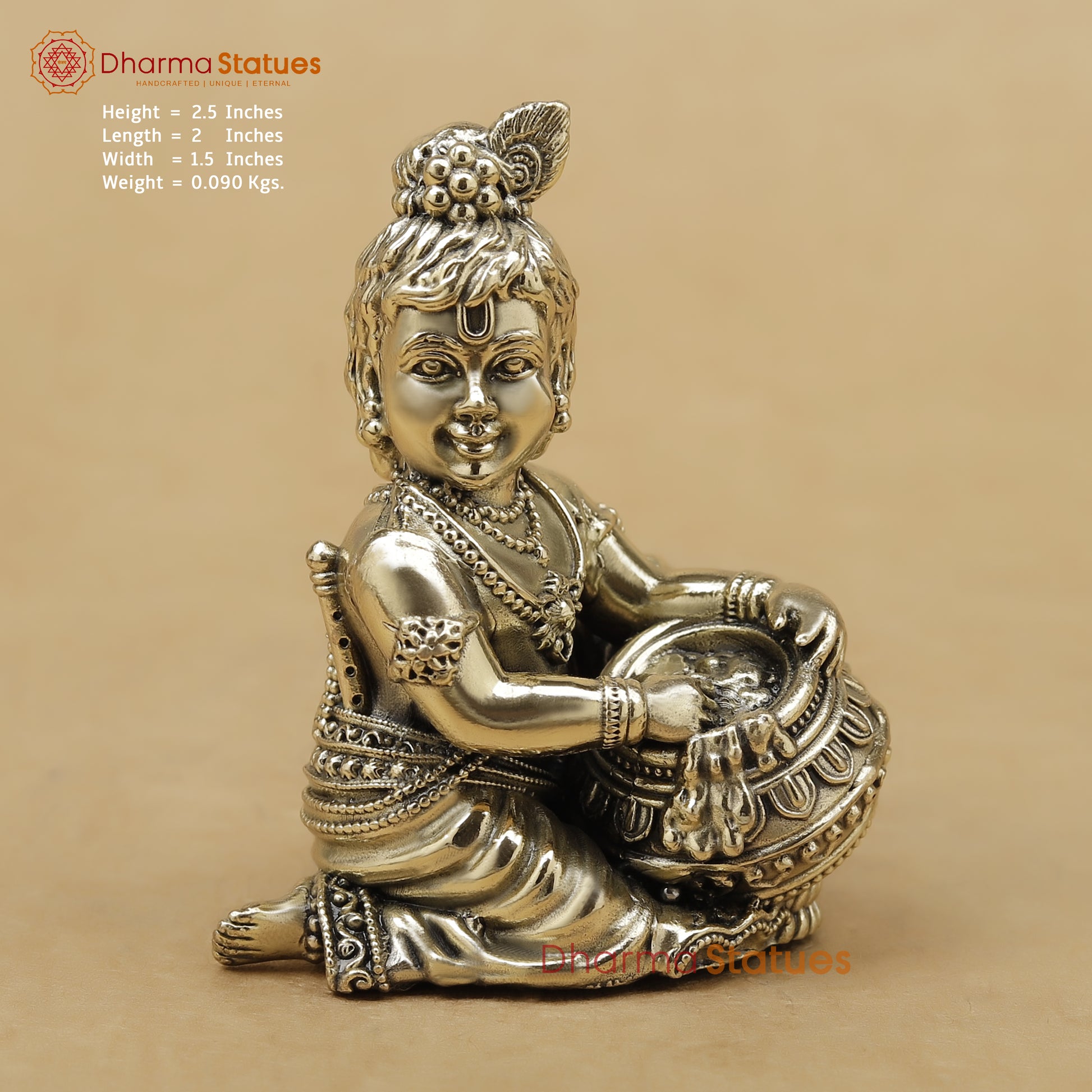 Brass Baby Krishna Fine, 2.5"
