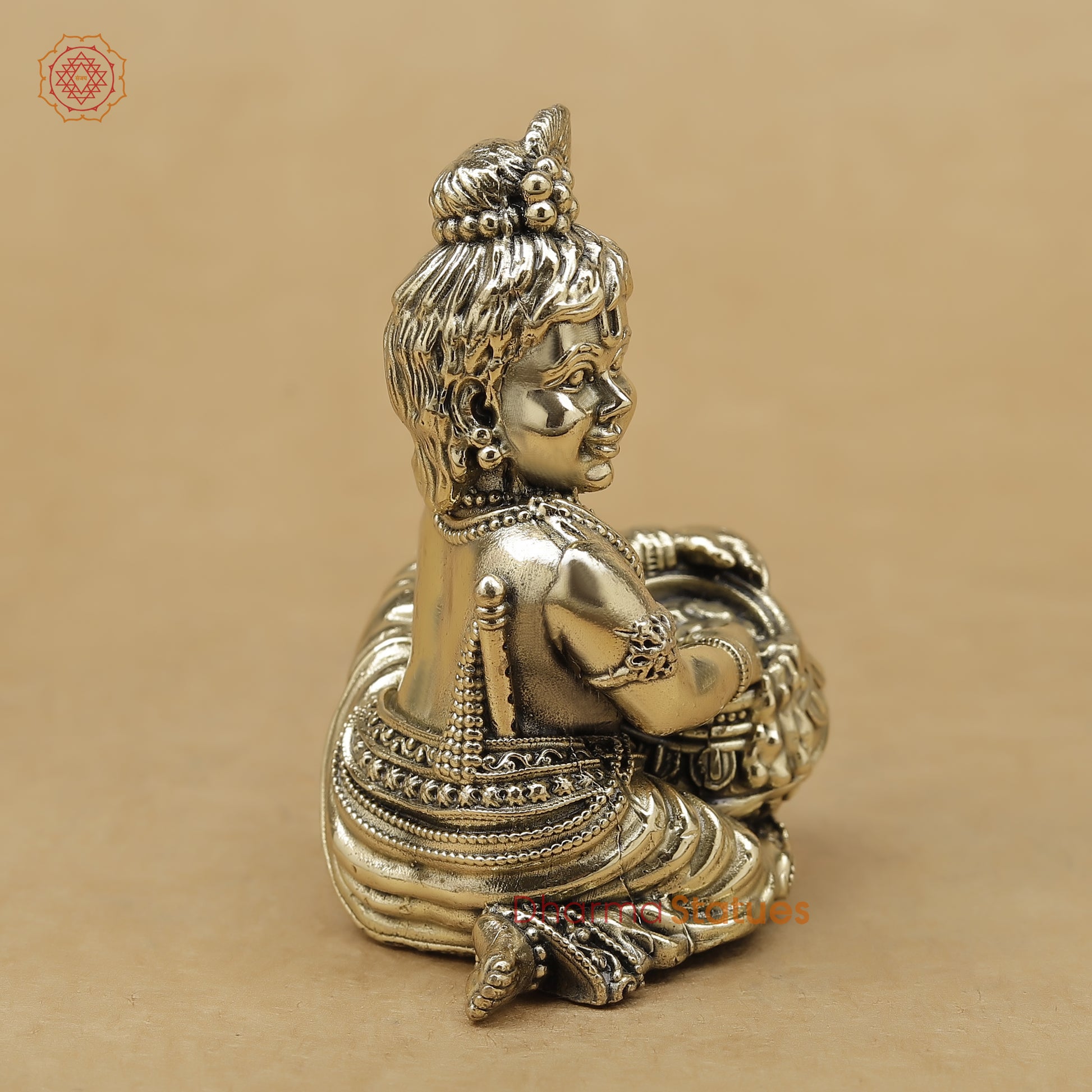 Celebrate divine innocence with this beautifully crafted Laddu Gopal (Baby Krishna) statue. Depicted joyfully holding a pot of butter, this handcrafted brass-finished idol radiates charm, purity, and positive energy. Perfect for home décor, gifting, Janmashtami celebrations, or your pooja room, it brings blessings of love, prosperity, and protection.