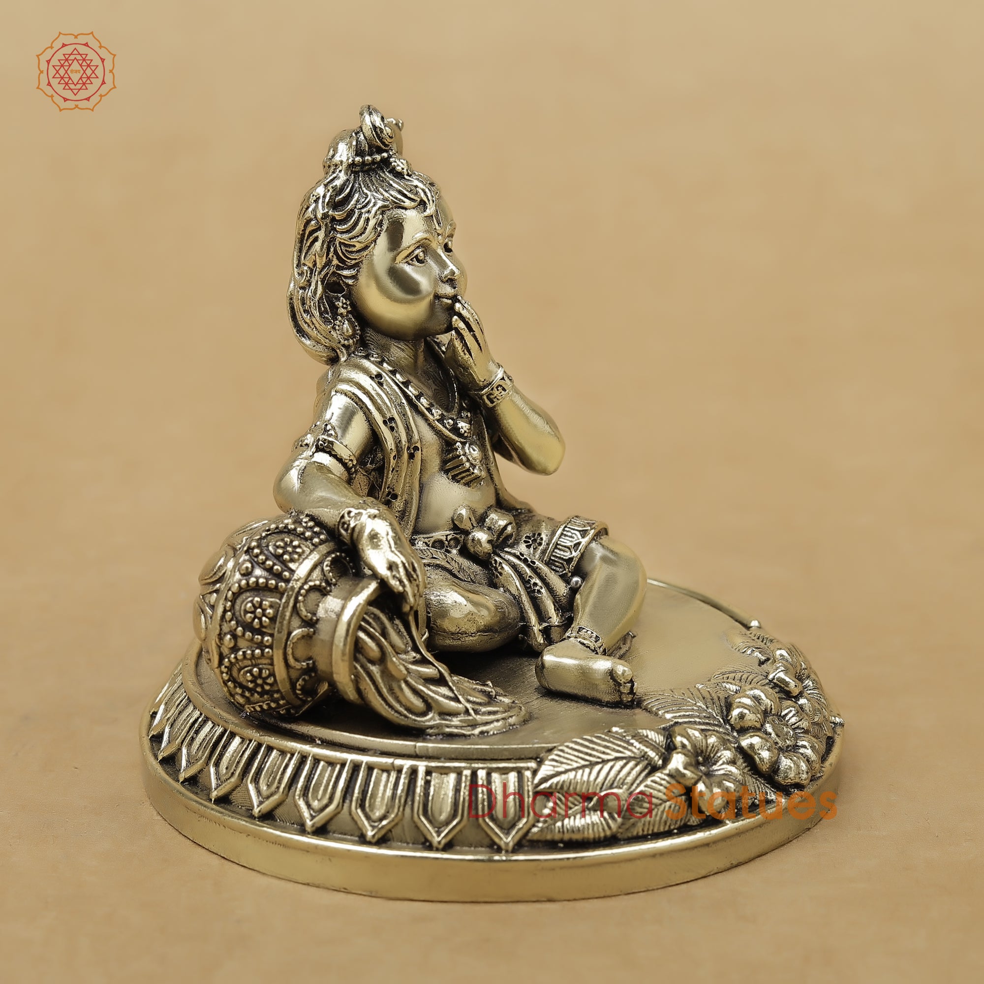 Bring home the innocence and divine charm of Makhan Chor Krishna with this exquisitely crafted brass-finish idol. Depicted playfully enjoying butter, this statue captures the joyful and mischievous essence of Little Krishna. Perfect for pooja rooms, gifting, home décor, and Janmashtami celebrations, it radiates love, purity, and positive energy in any space.