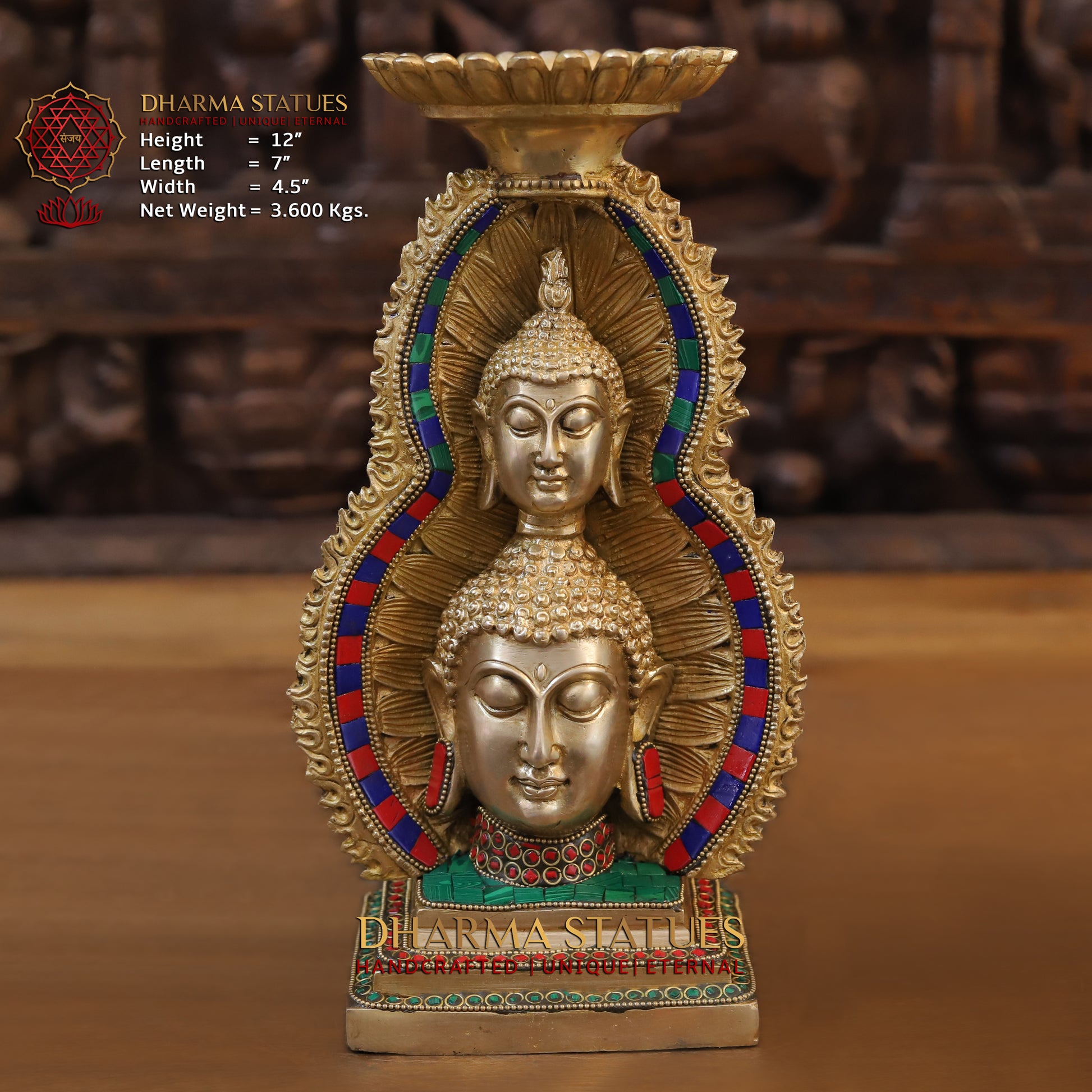 This 12" Brass Buddha Candle features intricate golden and stonework, enhancing the aesthetic appeal of any space. Made with high-quality brass, it adds a touch of elegance and serenity to your home or office. Perfect for meditation, relaxation, and creating a peaceful atmosphere.