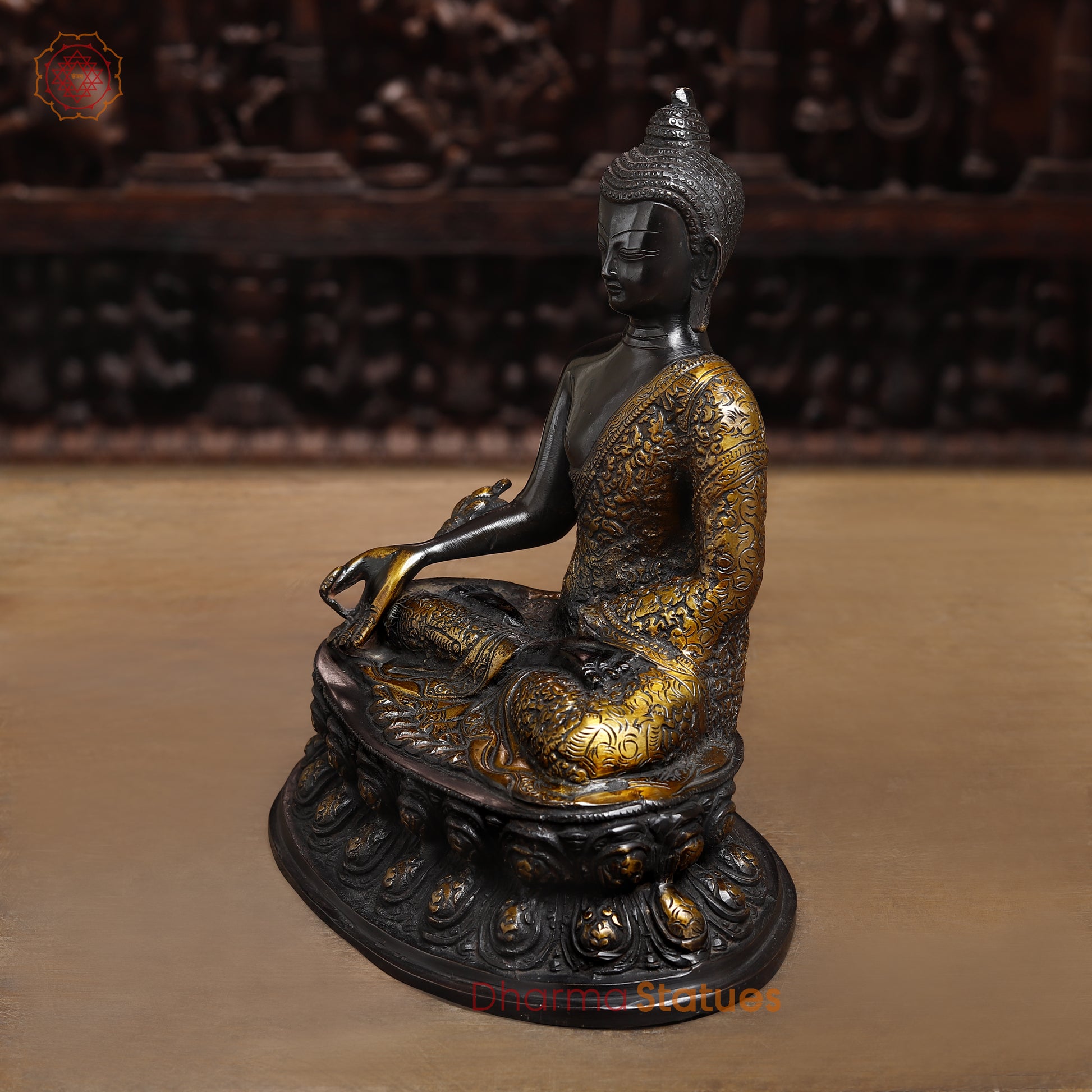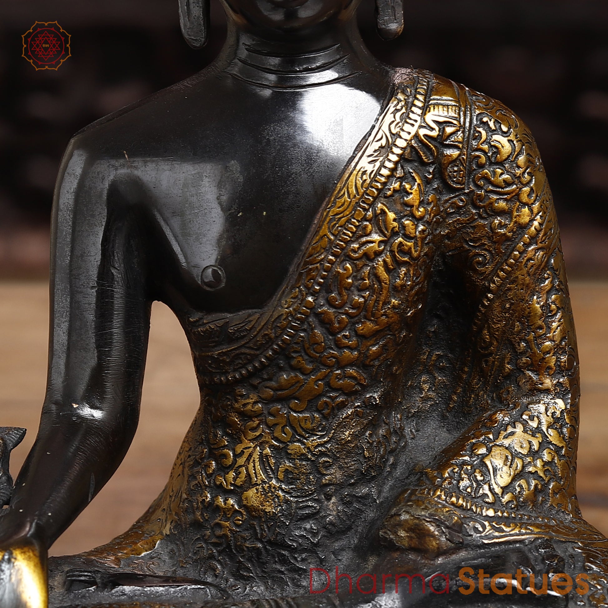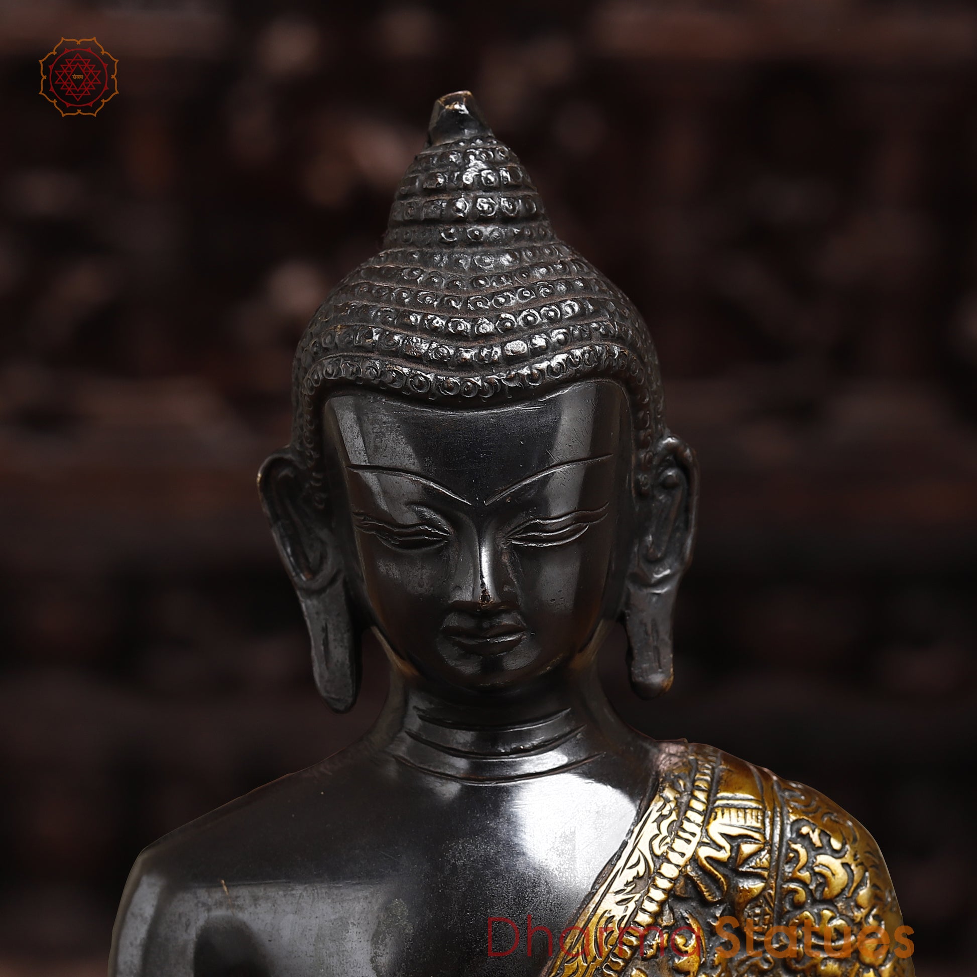 Brass Buddha seated, Black Patina & Golden Finish, 11"