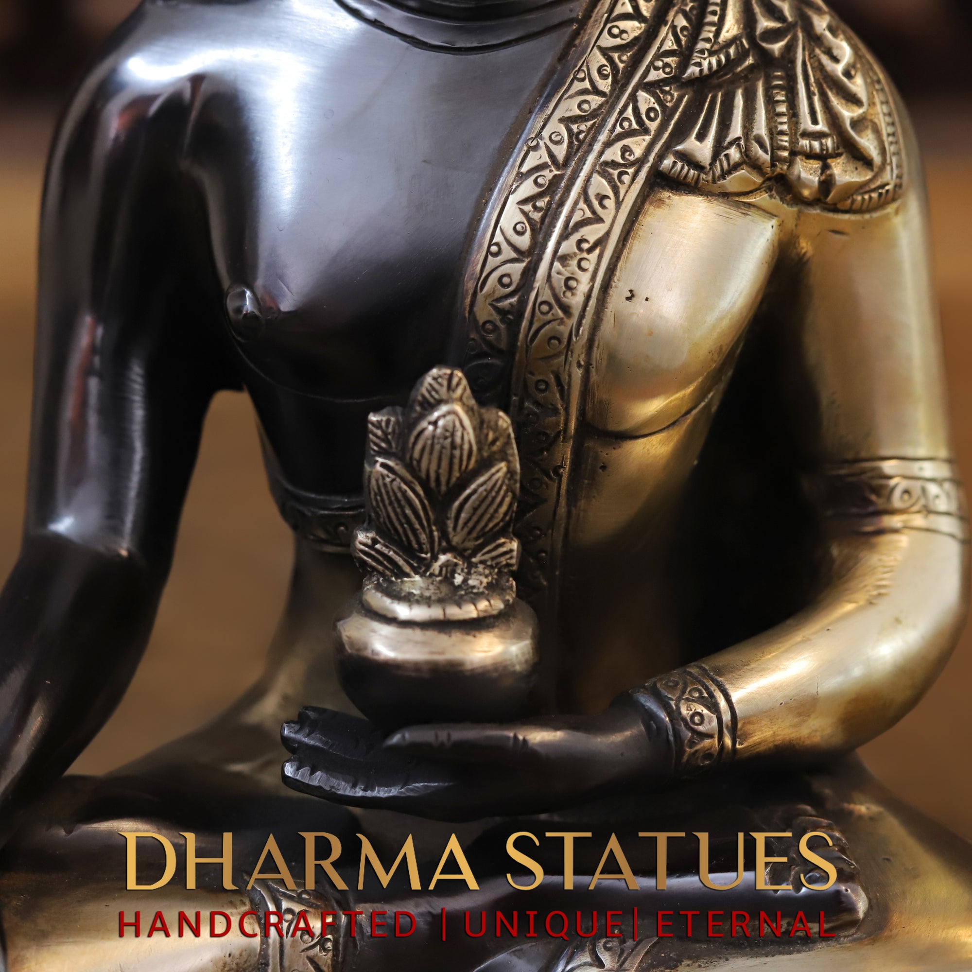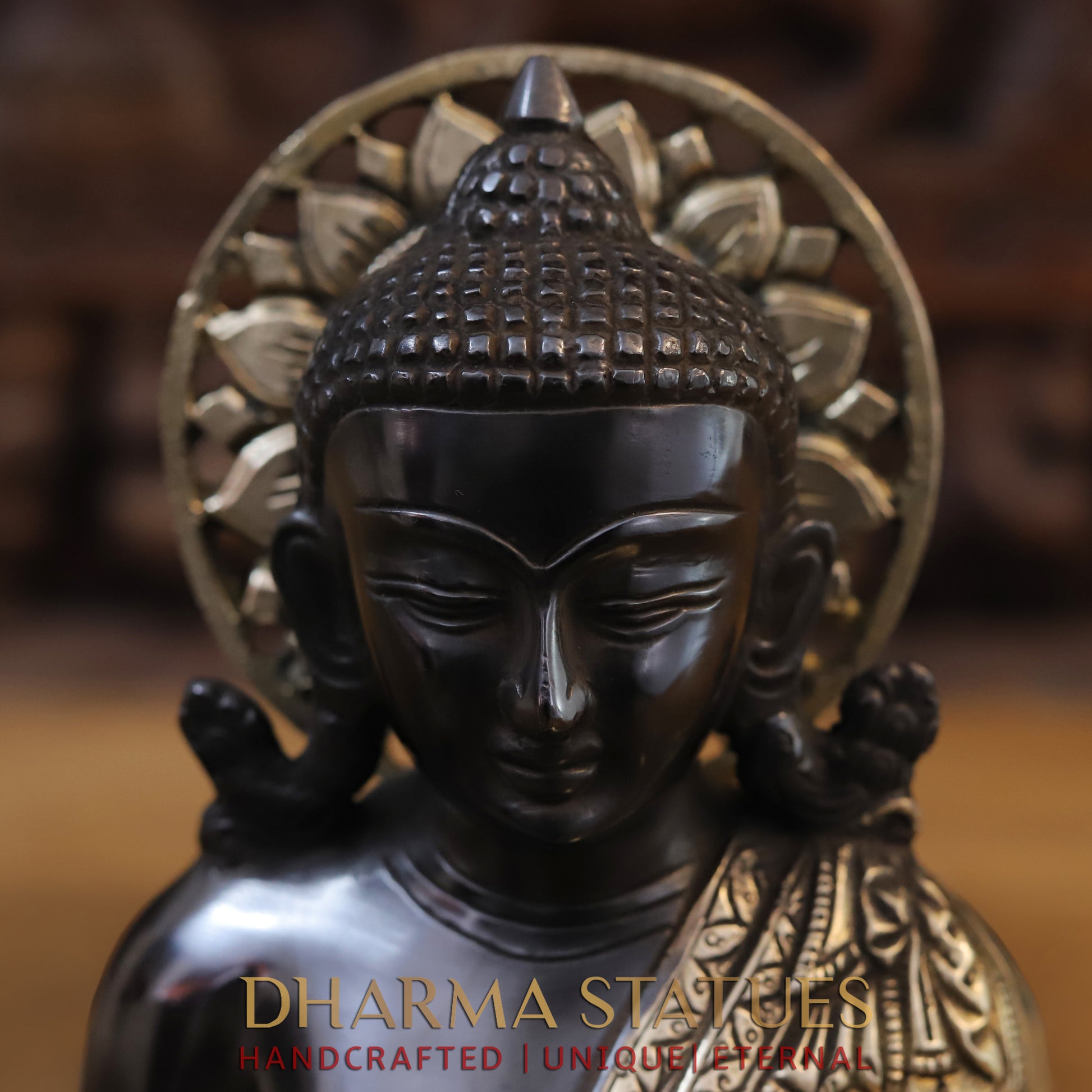 Brass Buddha Statue Seated, Black Patina & Golden Finish, 10"