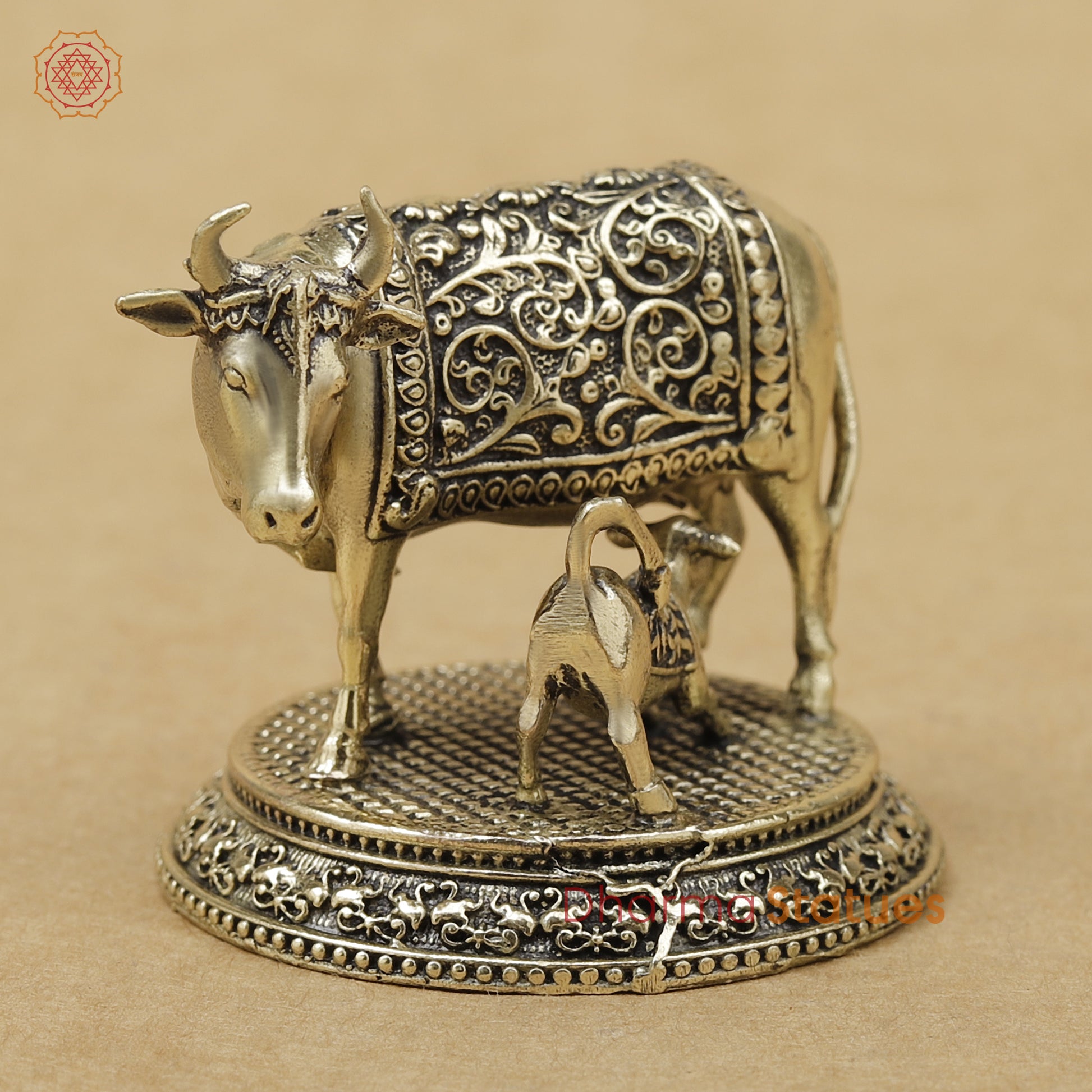 Bring home the divine grace of Gaumata with this beautifully handcrafted Cow and Calf statue, symbolizing purity, abundance, compassion, and maternal love. Intricately detailed with antique brass finishing, this piece represents blessings of prosperity, good health, and spiritual harmony.