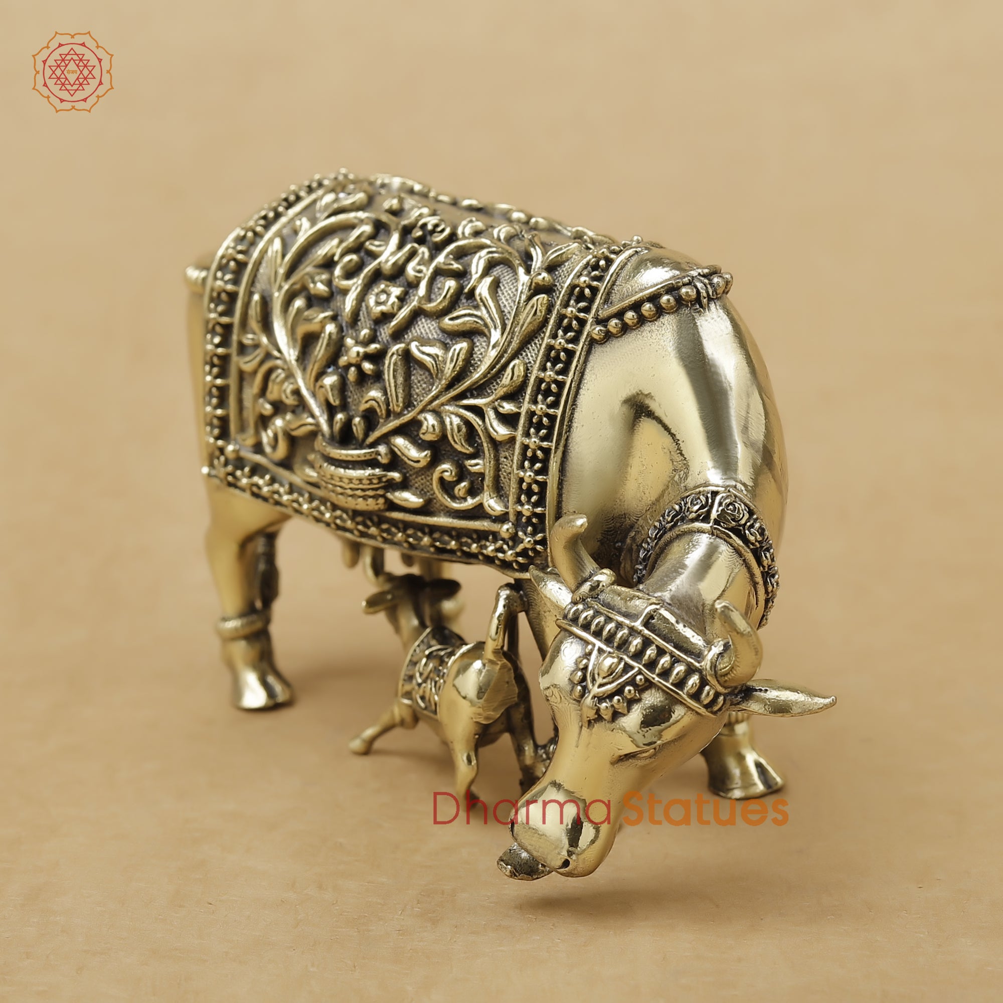 Bring home the divine grace of Gaumata with this beautifully handcrafted Cow and Calf statue, symbolizing purity, abundance, compassion, and maternal love. Intricately detailed with antique brass finishing, this piece represents blessings of prosperity, good health, and spiritual harmony.