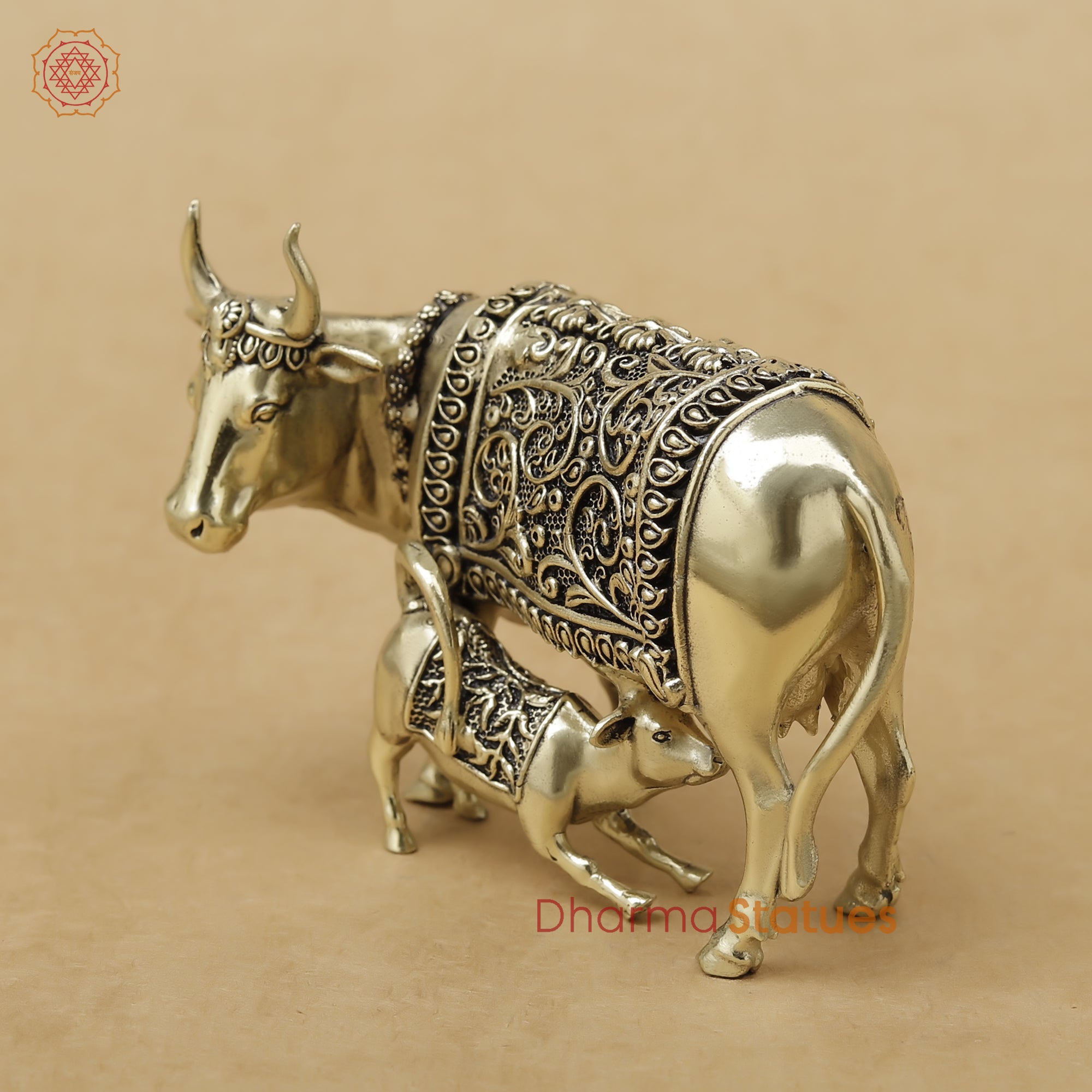 Bring home the divine grace of Gaumata with this beautifully handcrafted Cow and Calf statue, symbolizing purity, abundance, compassion, and maternal love. Intricately detailed with antique brass finishing, this piece represents blessings of prosperity, good health, and spiritual harmony.