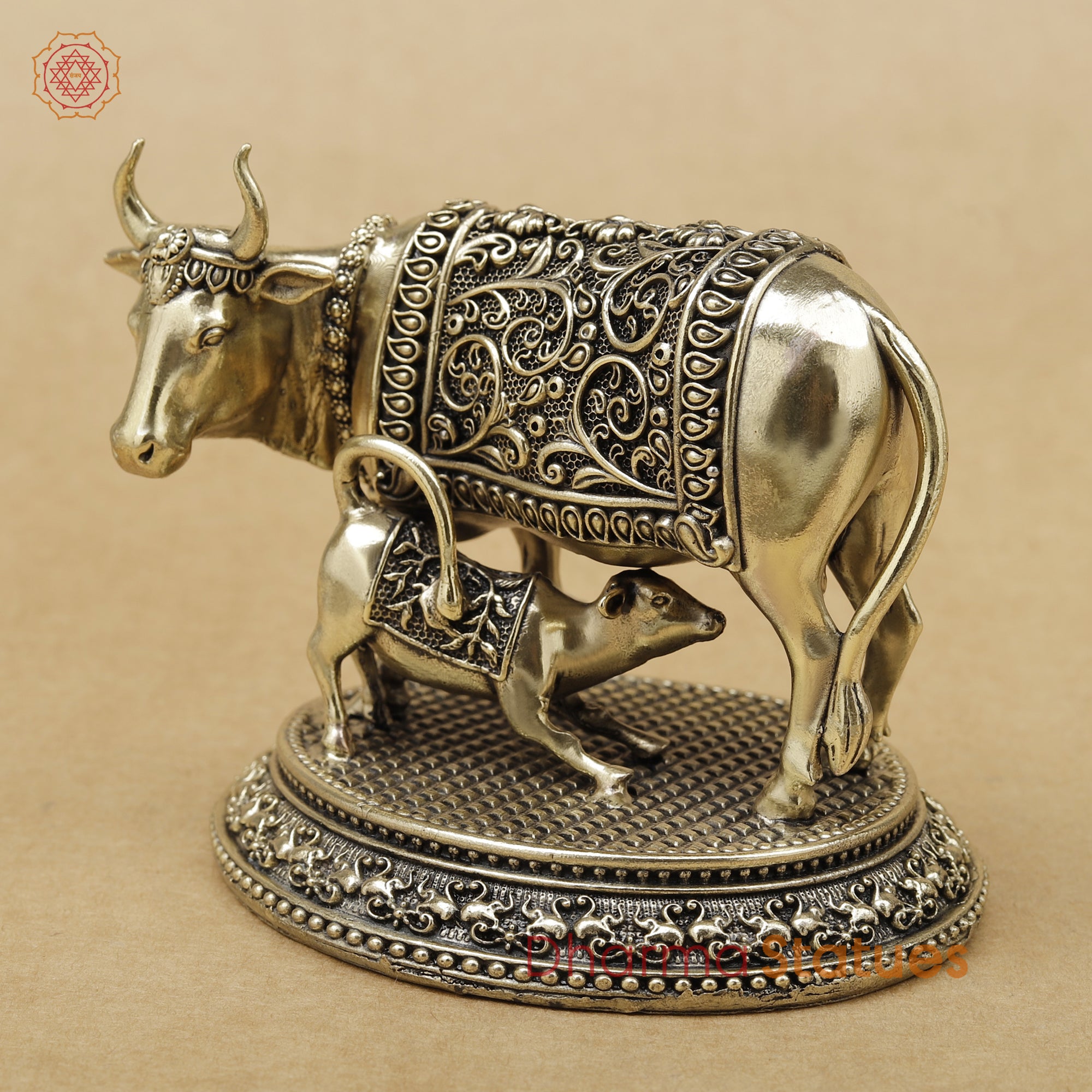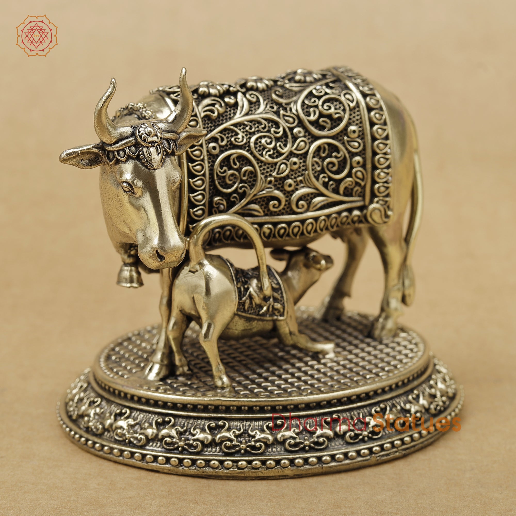 Bring home the divine grace of Gaumata with this beautifully handcrafted Cow and Calf statue, symbolizing purity, abundance, compassion, and maternal love. Intricately detailed with antique brass finishing, this piece represents blessings of prosperity, good health, and spiritual harmony.