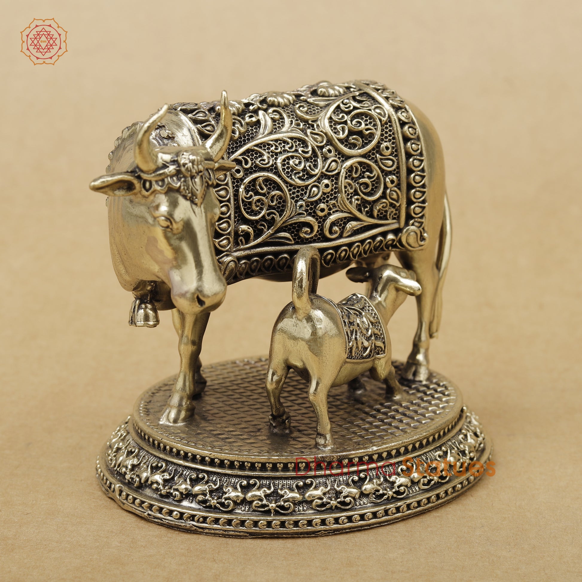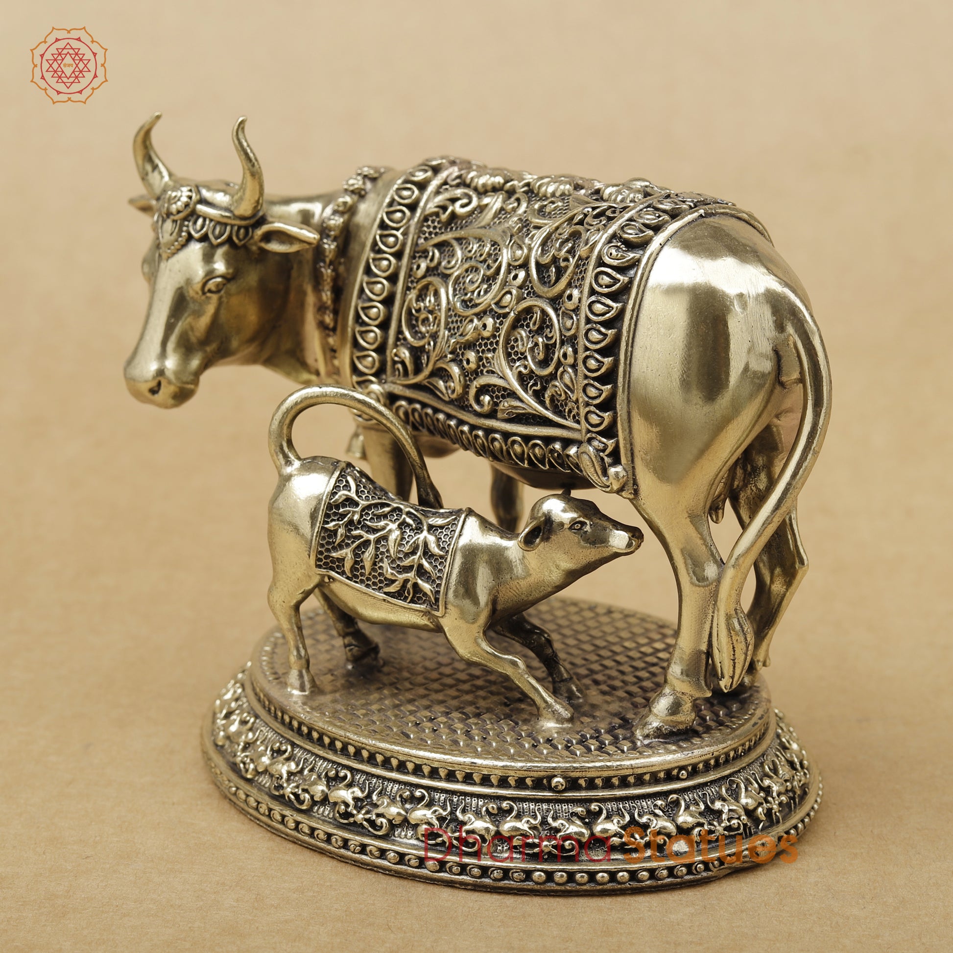 Bring home the divine grace of Gaumata with this beautifully handcrafted Cow and Calf statue, symbolizing purity, abundance, compassion, and maternal love. Intricately detailed with antique brass finishing, this piece represents blessings of prosperity, good health, and spiritual harmony.