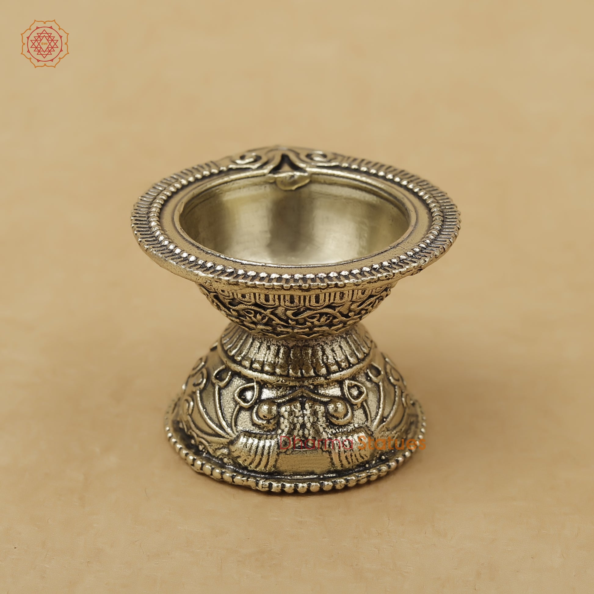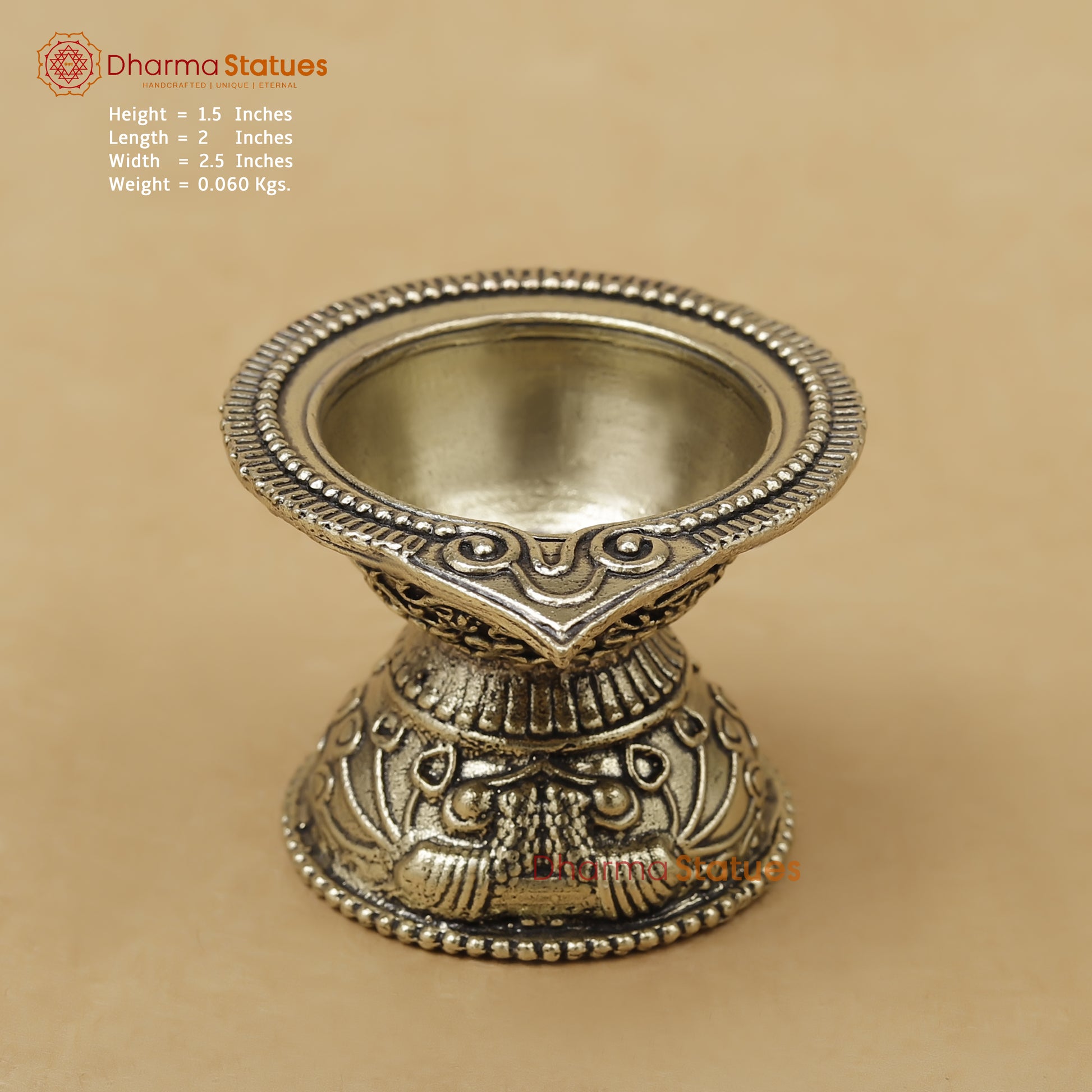 Enhance your pooja rituals with this beautifully crafted Mini Decorative Diya, designed in an elegant antique brass finish. Despite its compact size, this diya features intricate carvings on the base and rim, giving it a traditional and premium look. Perfect for daily worship, festive décor, gifting, or as a part of your home temple setup.