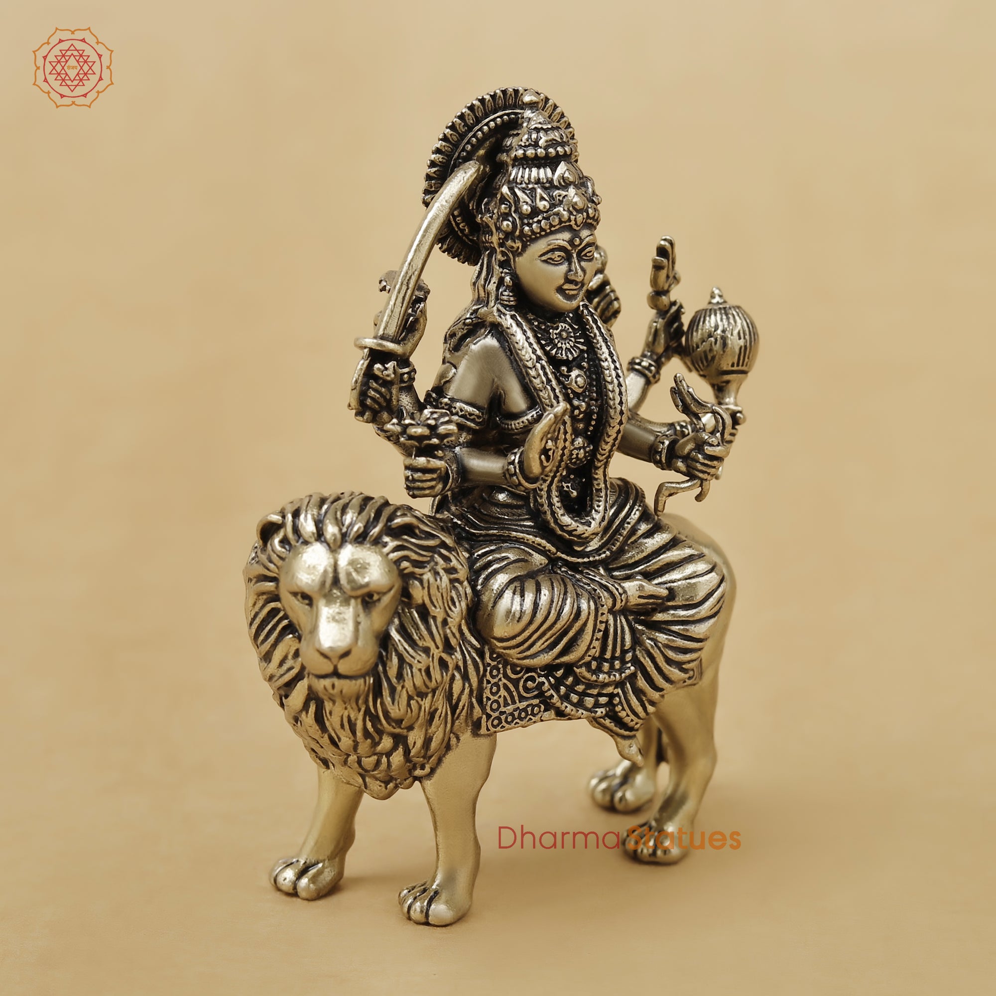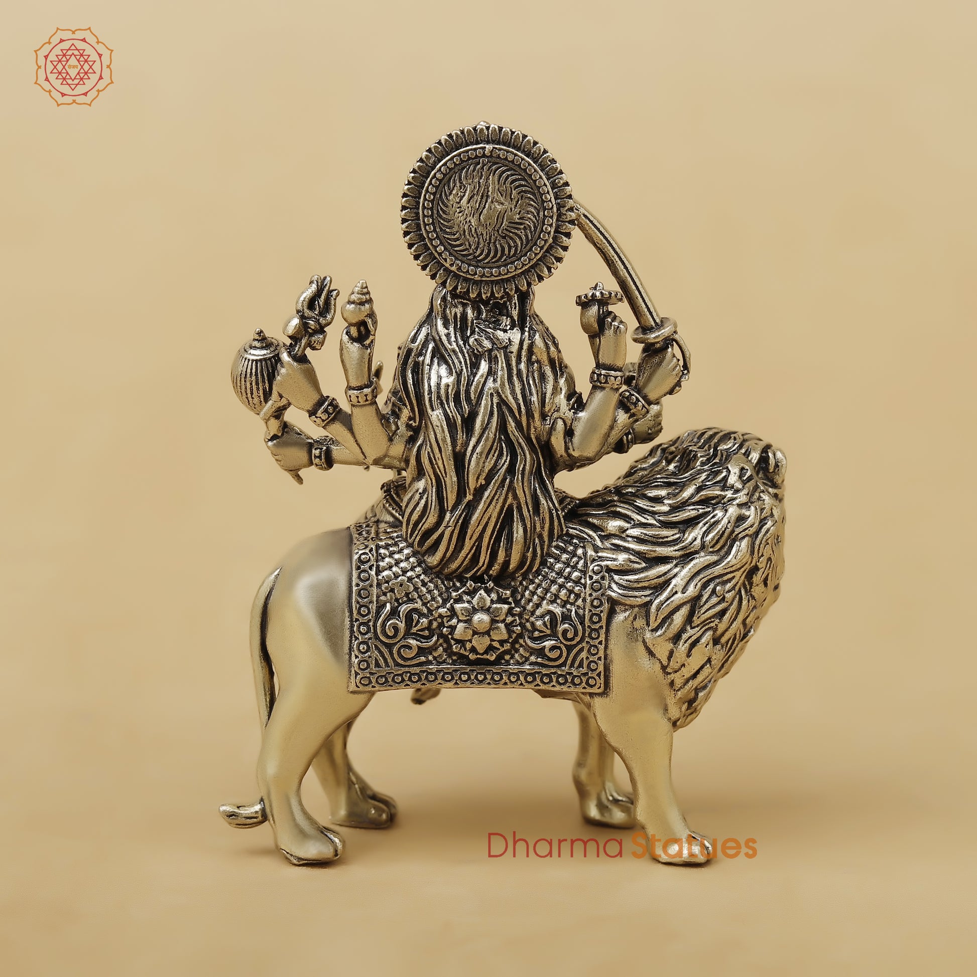 Bring divine energy into your space with this beautifully handcrafted Maa Durga idol, intricately designed and symbolizing strength, protection, and prosperity. Cast in a premium metallic finish, the statue features Maa Durga seated gracefully on her lion, holding her traditional weapons with detailed craftsmanship.
