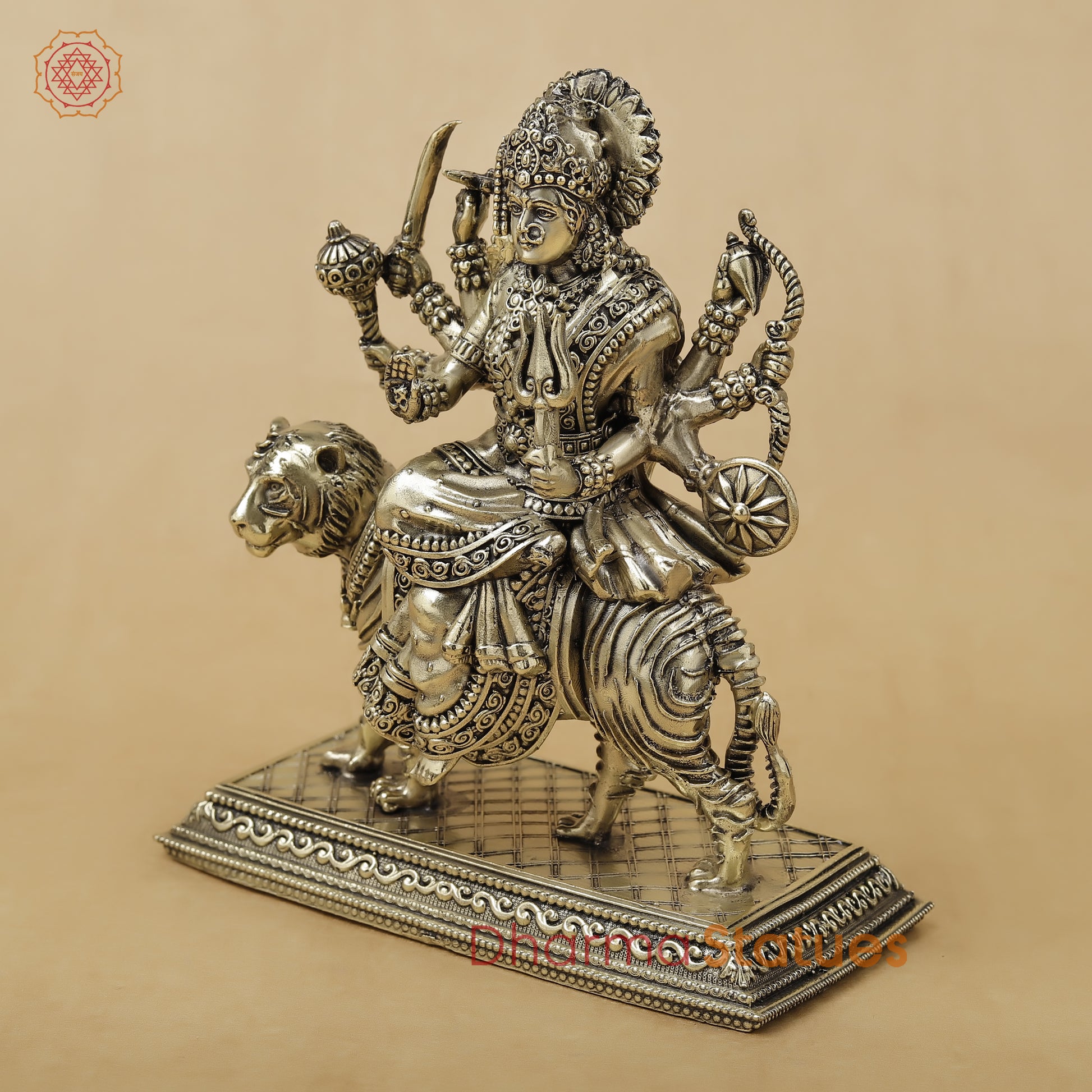 Enhance your sacred space with this exquisitely handcrafted Maa Durga statue, featuring the Goddess seated majestically on her tiger. The detailed artistry, ornate attire, and finely carved weapons capture the divine power and grace of Maa Durga, symbolizing protection, courage, and blessings.