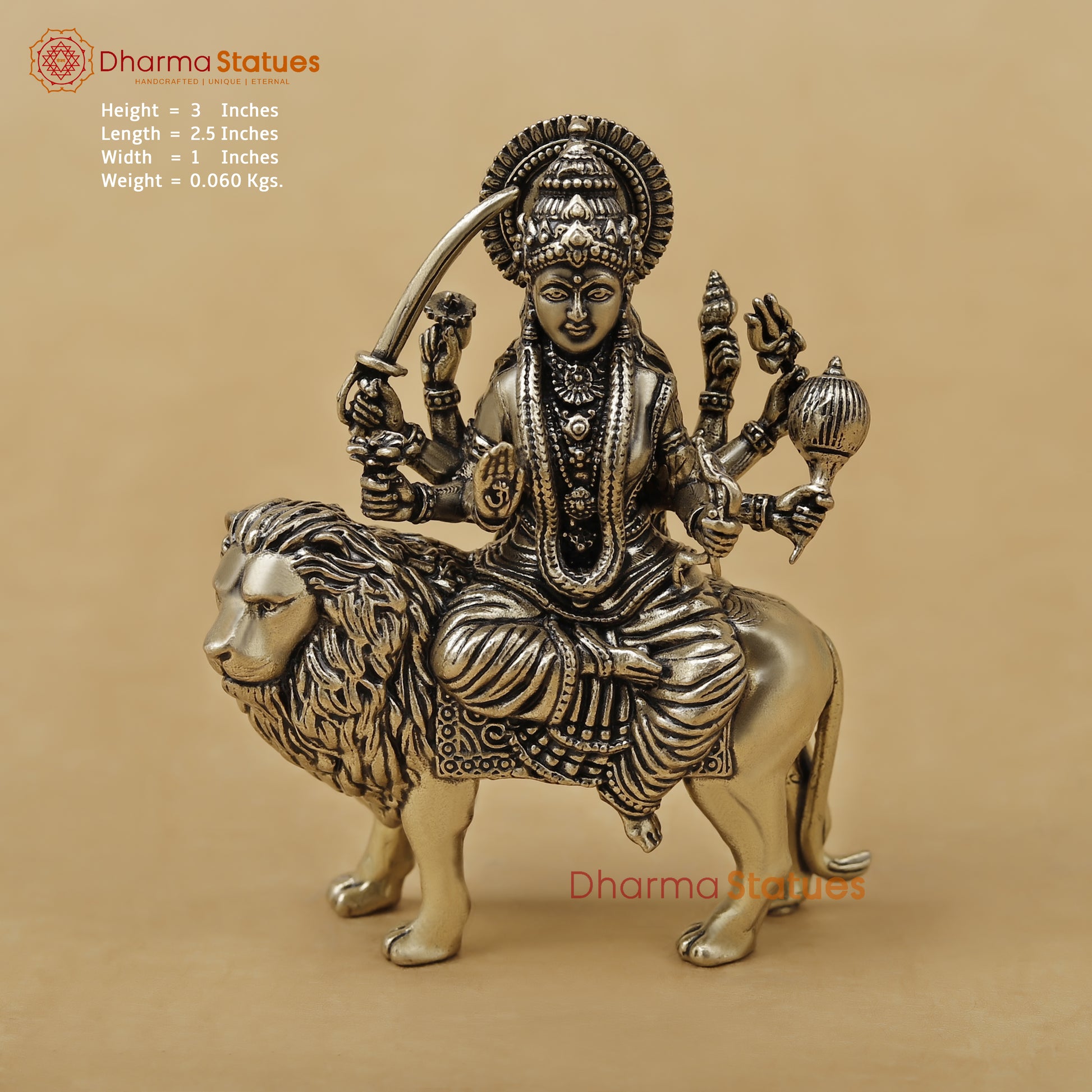 Brass Durga is a powerful symbol of strength, protection, and divine energy. This finely detailed 3-inch statue, finished in radiant gold, beautifully portrays Goddess Durga in her majestic form—making it a perfect addition to your altar, desk, or sacred space.