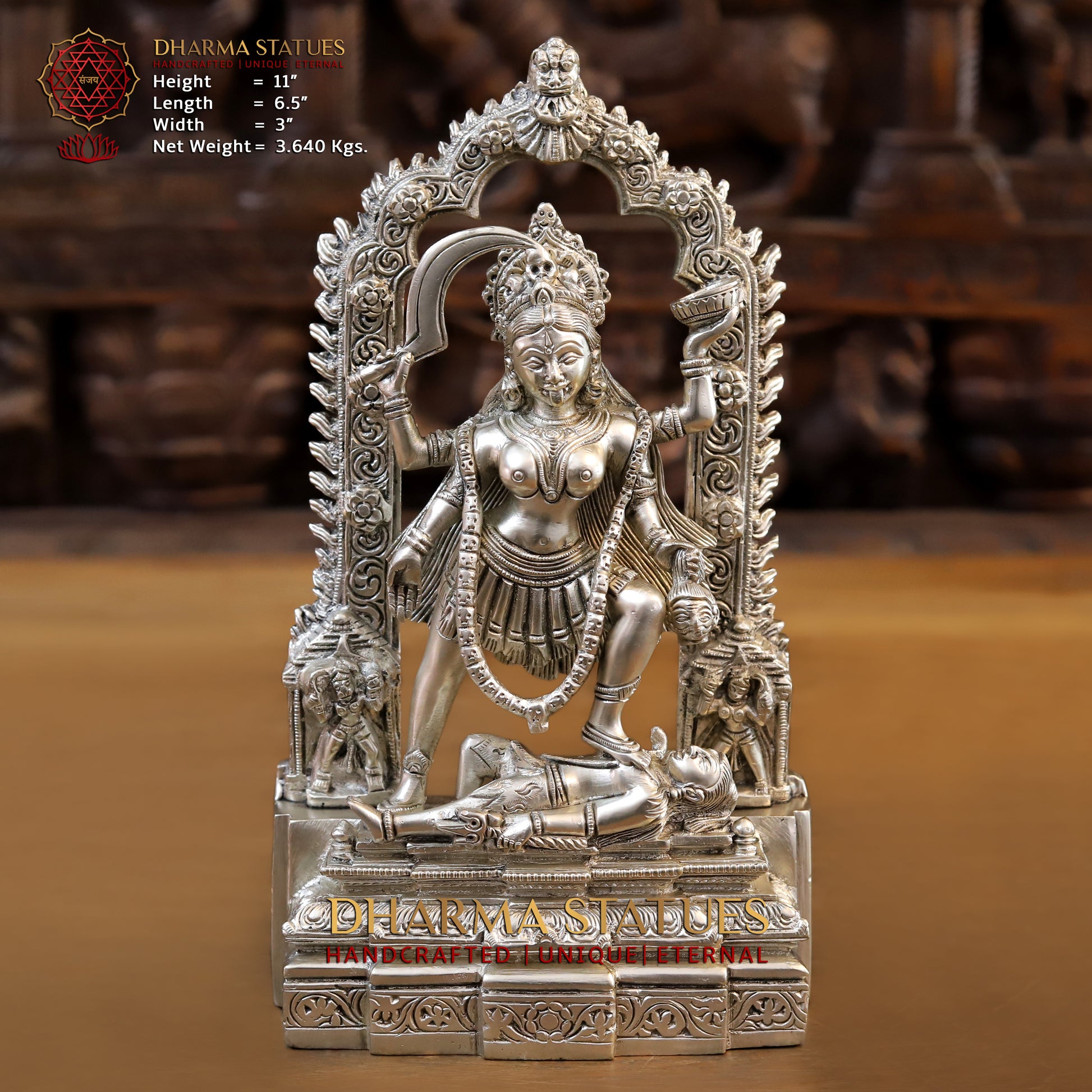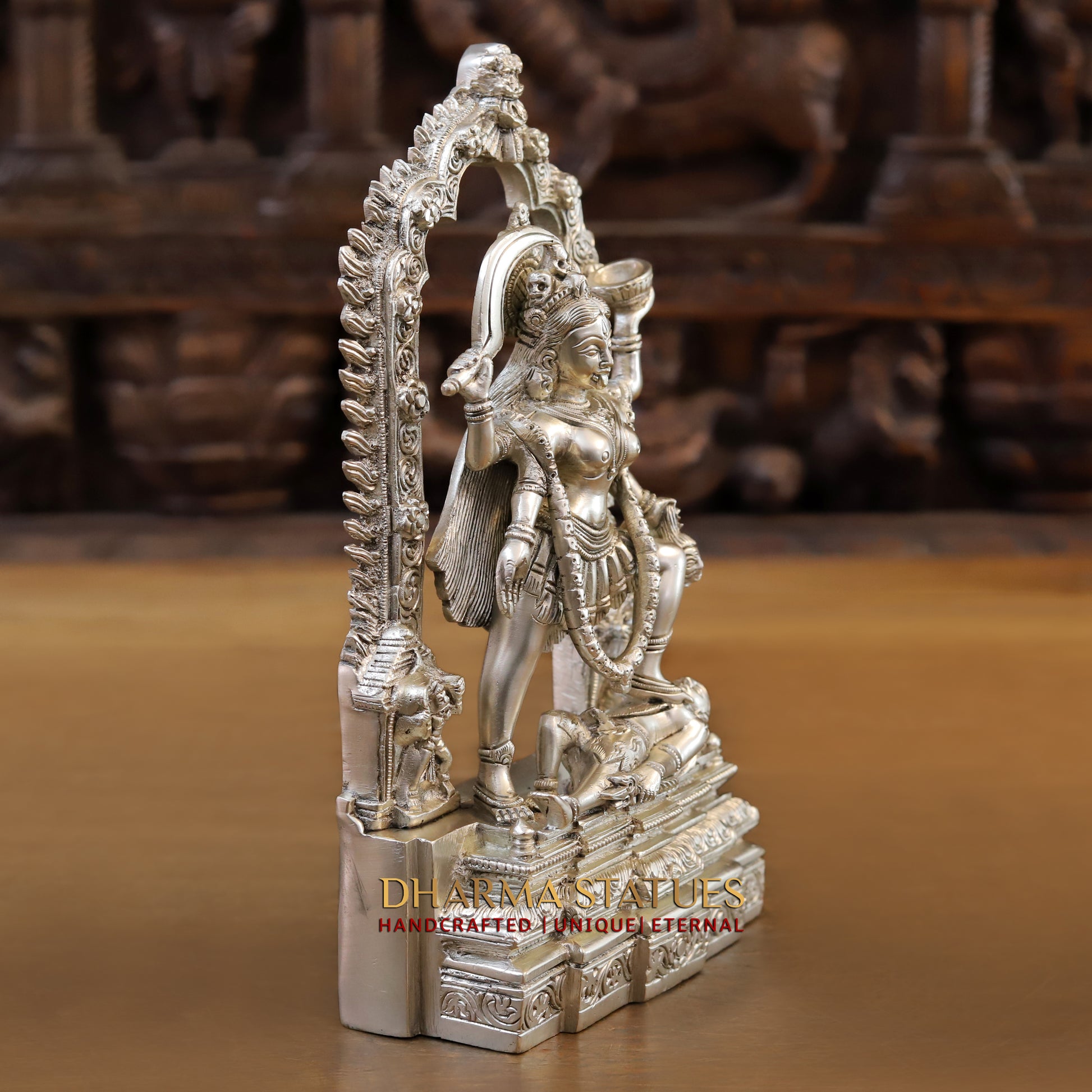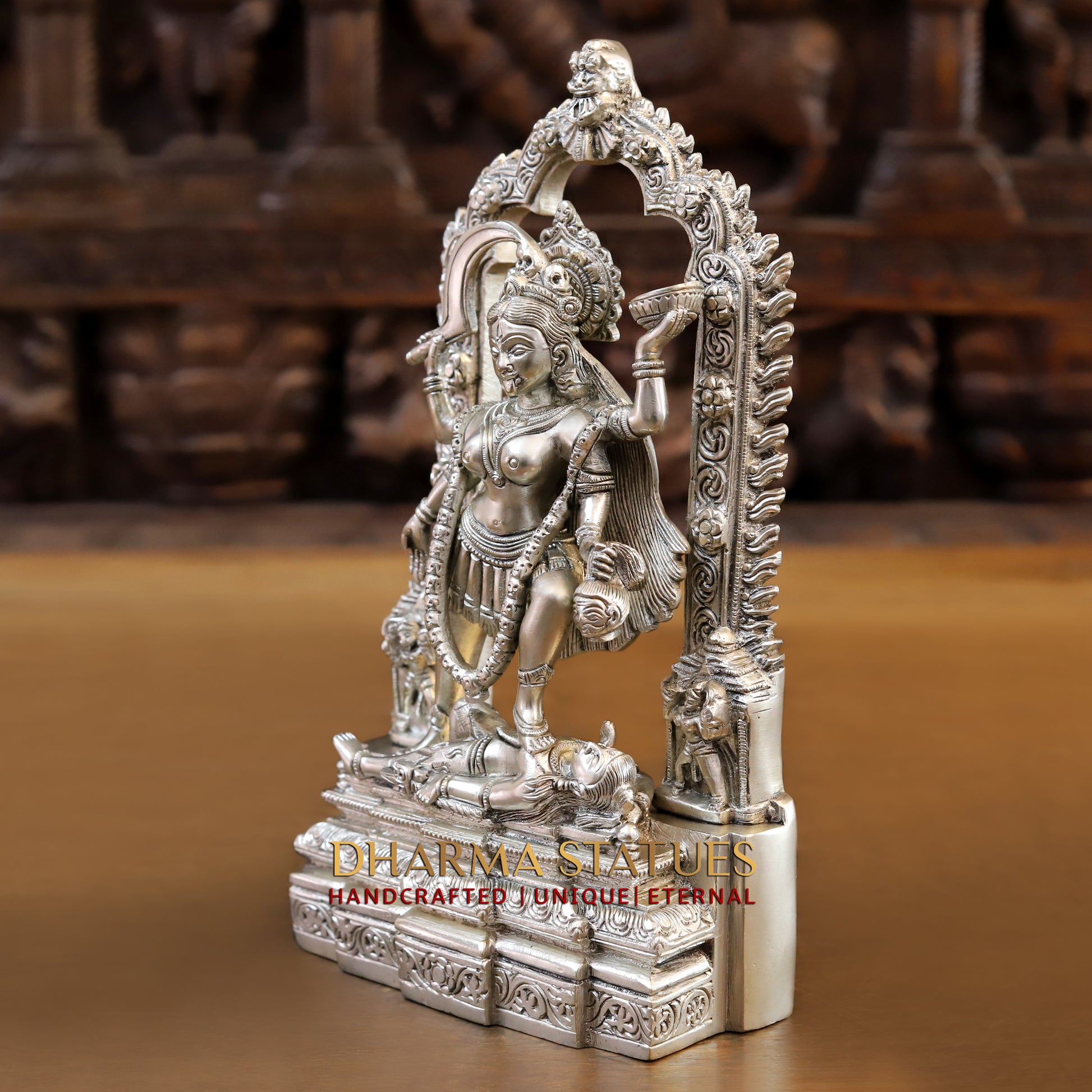 Brass Kaali standing with Arch, Silver Fine Finish 11"