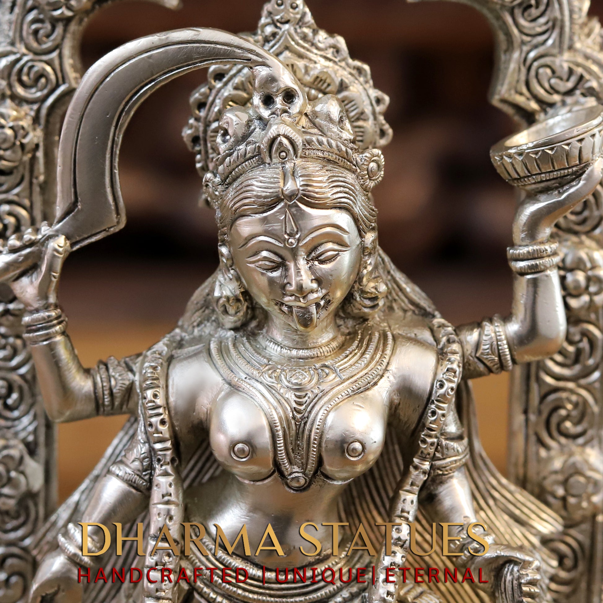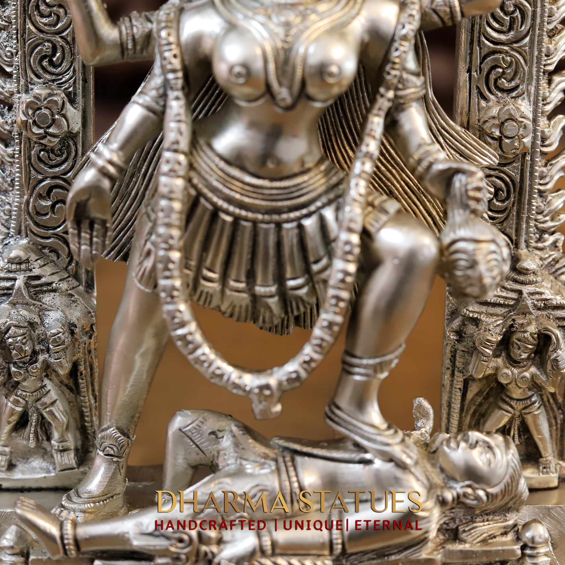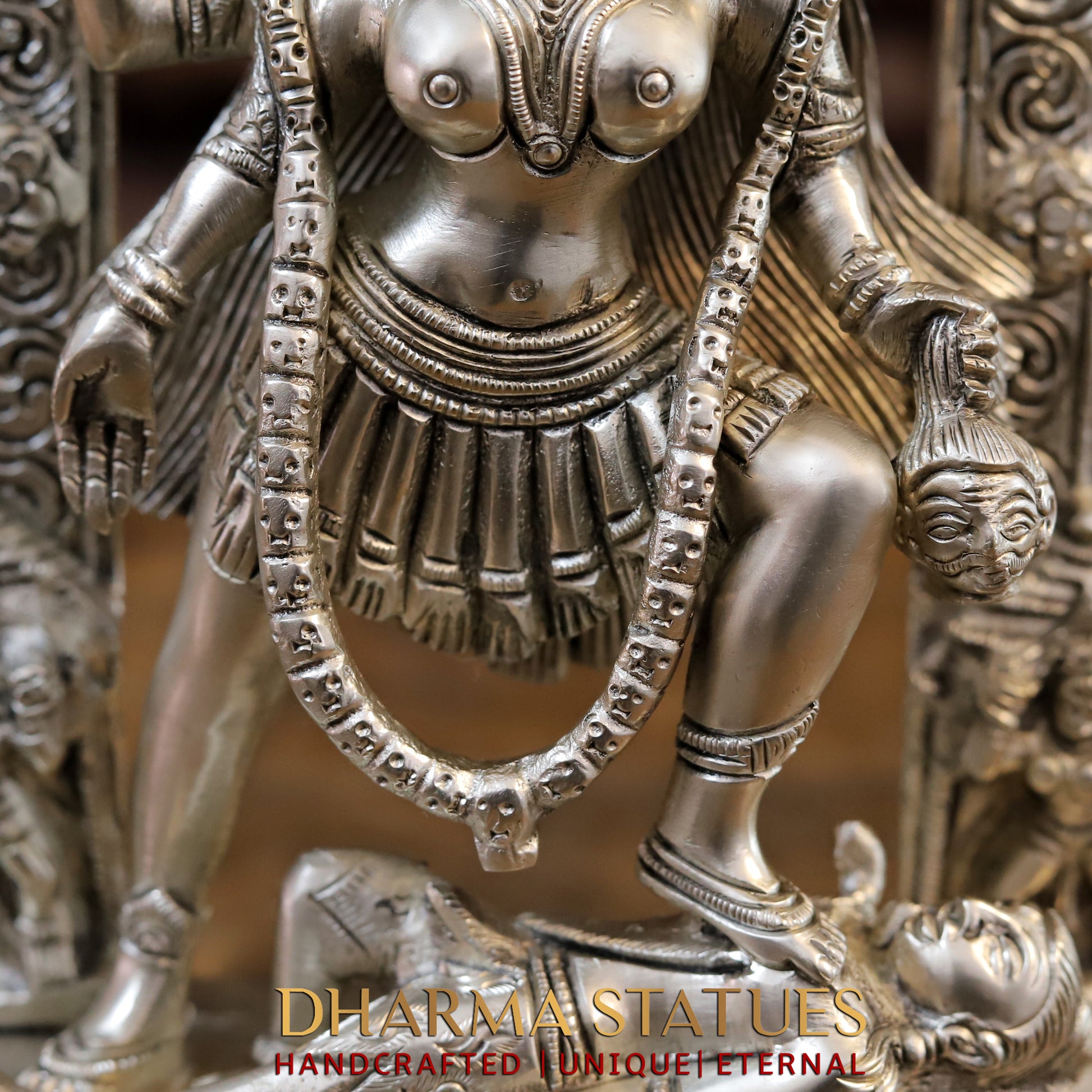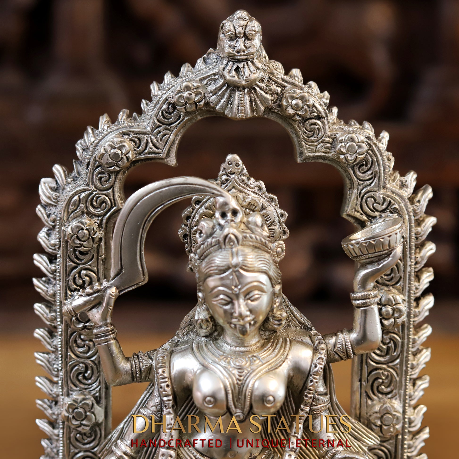 Brass Kaali standing with Arch, Silver Fine Finish 11"