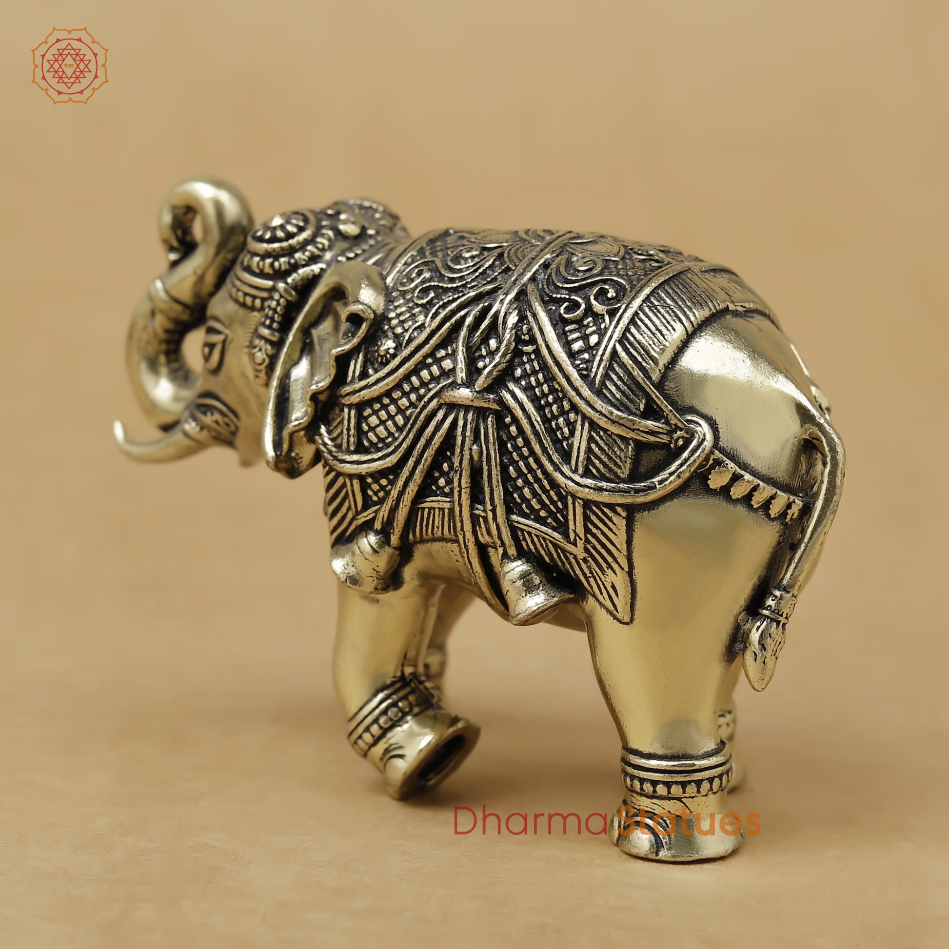 Celebrate timeless craftsmanship with this exquisite brass elephant statue from Dharma Statues. Every curve, carving, and motif is lovingly hand-crafted, reflecting the artistry of traditional metalwork. The elephant, adorned in ornate ceremonial attire, stands as a symbol of wisdom, prosperity, and protection. Compact yet captivating, it adds richness and cultural depth to any living space or office. Featuring intricate detailing and an elegant antique finish, it’s a perfect décor accent for desks, shelves, and gift-giving.