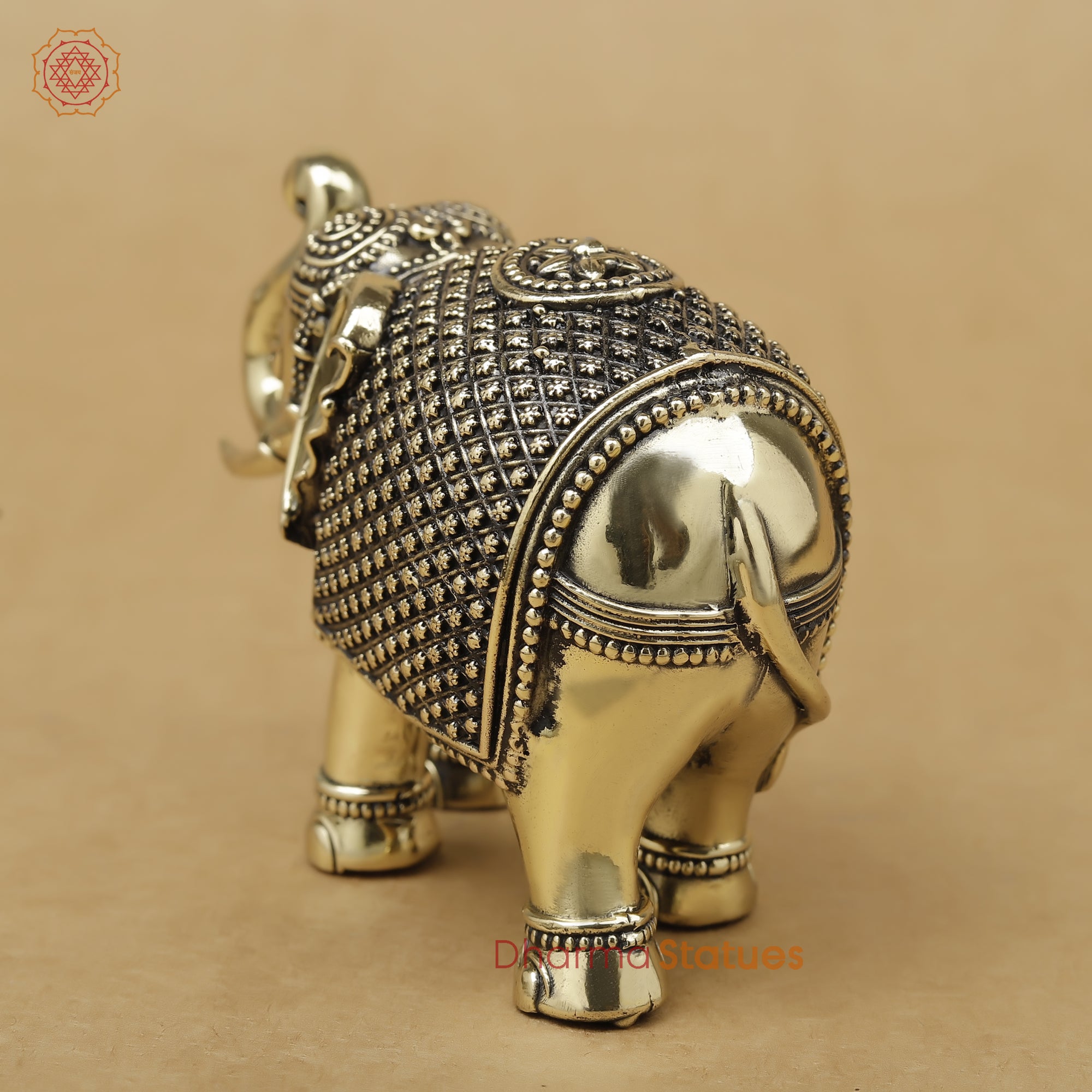 Bring home the charm of traditional artistry with this exquisitely detailed elephant figurine. Designed with a premium metallic finish and intricate carvings, it symbolizes strength, wisdom, and good fortune. A perfect décor accent for any home or workspace.