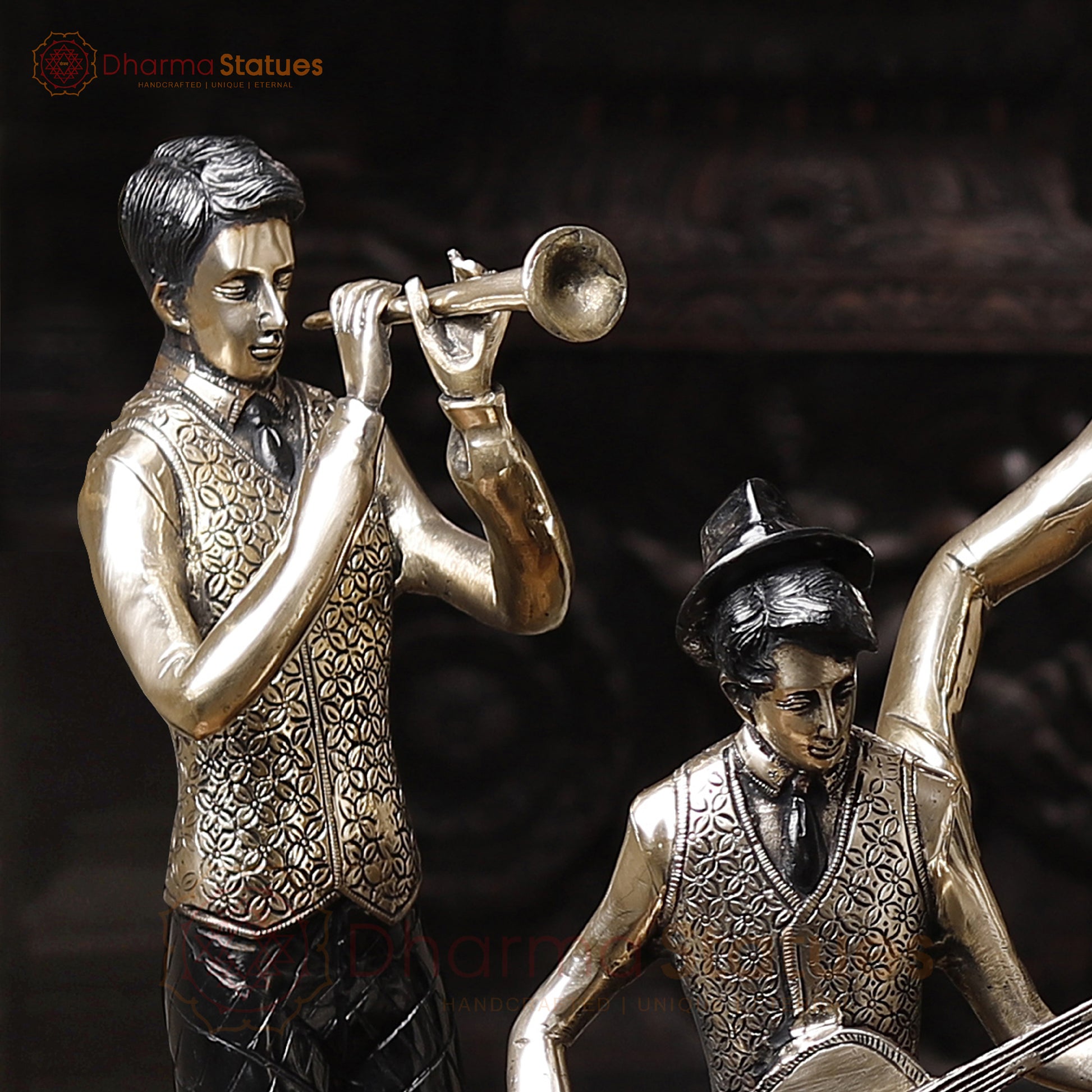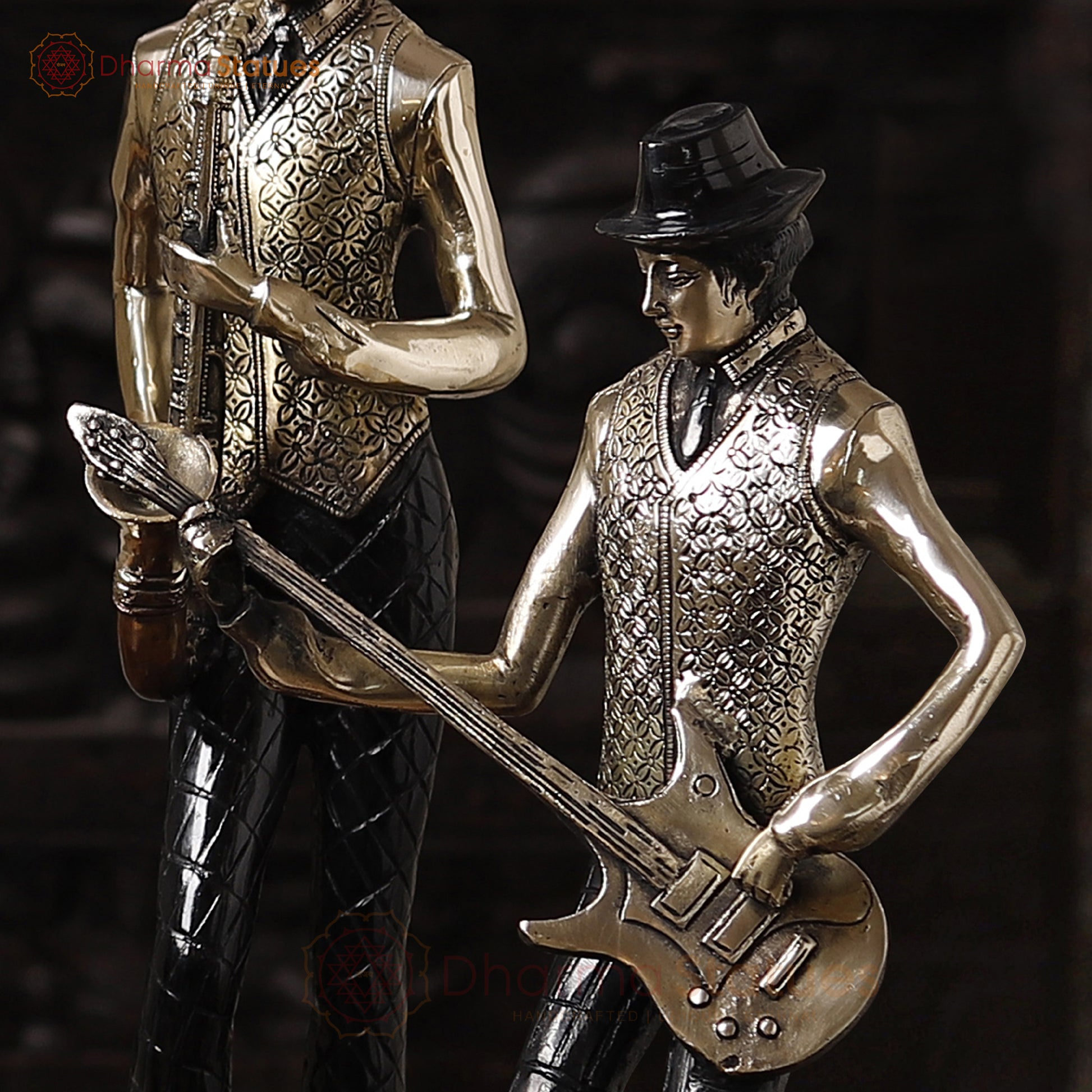 This set of seven Brass French Musician Statues boasts a stunning silver and black patina finish, perfect for adding a touch of elegance to any space. Standing at 30 inches tall, these statues are expertly crafted to capture the essence of French musicians, making them a unique and sophisticated addition to your home decor. Best for Wedding Gift | Diwali Gift | Gift purpose | Temple | worshipping | Perfect for Home decoration | Office decoration.