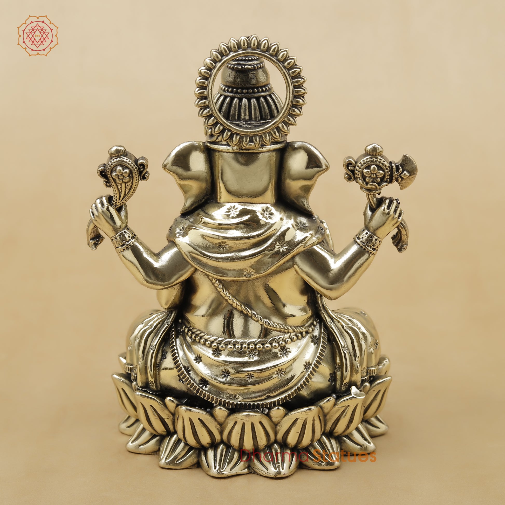 This exquisite Lord Ganesha statue features intricate detailing and a graceful lotus base, symbolizing purity and prosperity. Handcrafted to perfection, it radiates divine charm and positive energy. Ideal for home décor, pooja rooms, offices, and gifting, it invites wisdom, success, and auspicious blessings into any space.