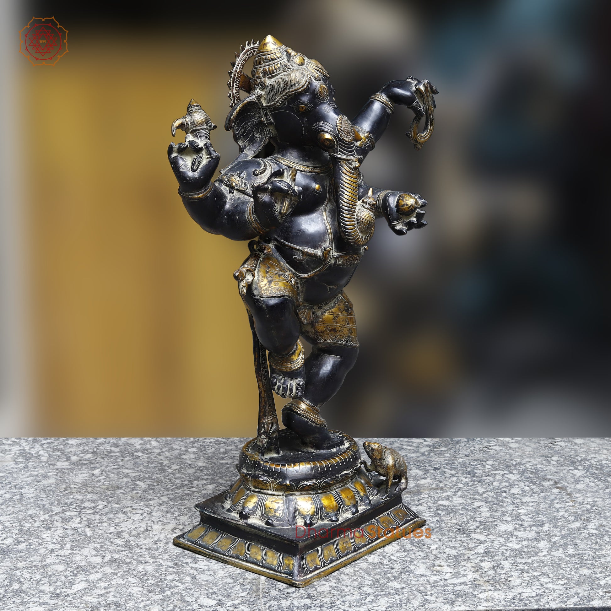 Brass Ganesh Dancing, Black Patina & Golden Finish, 42"