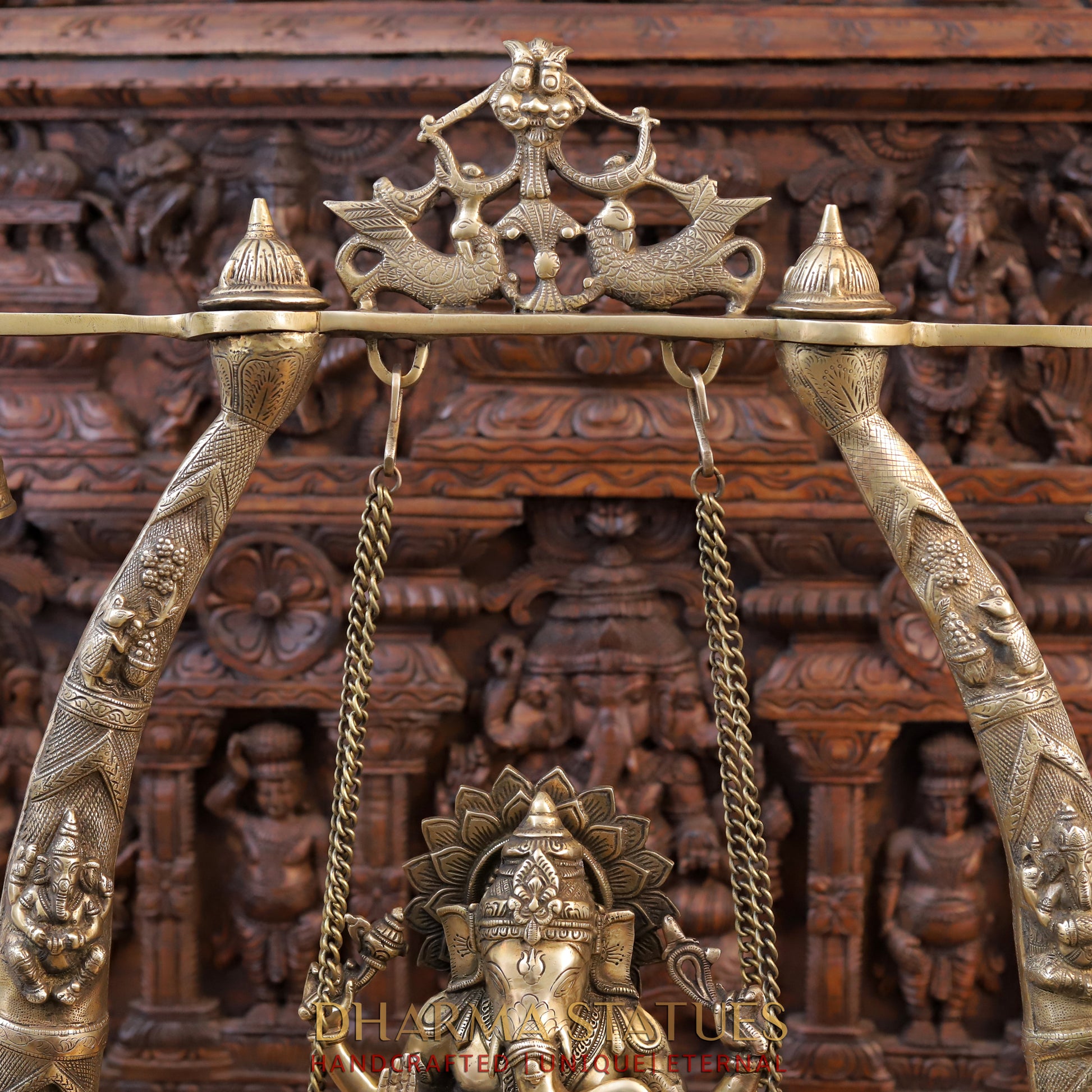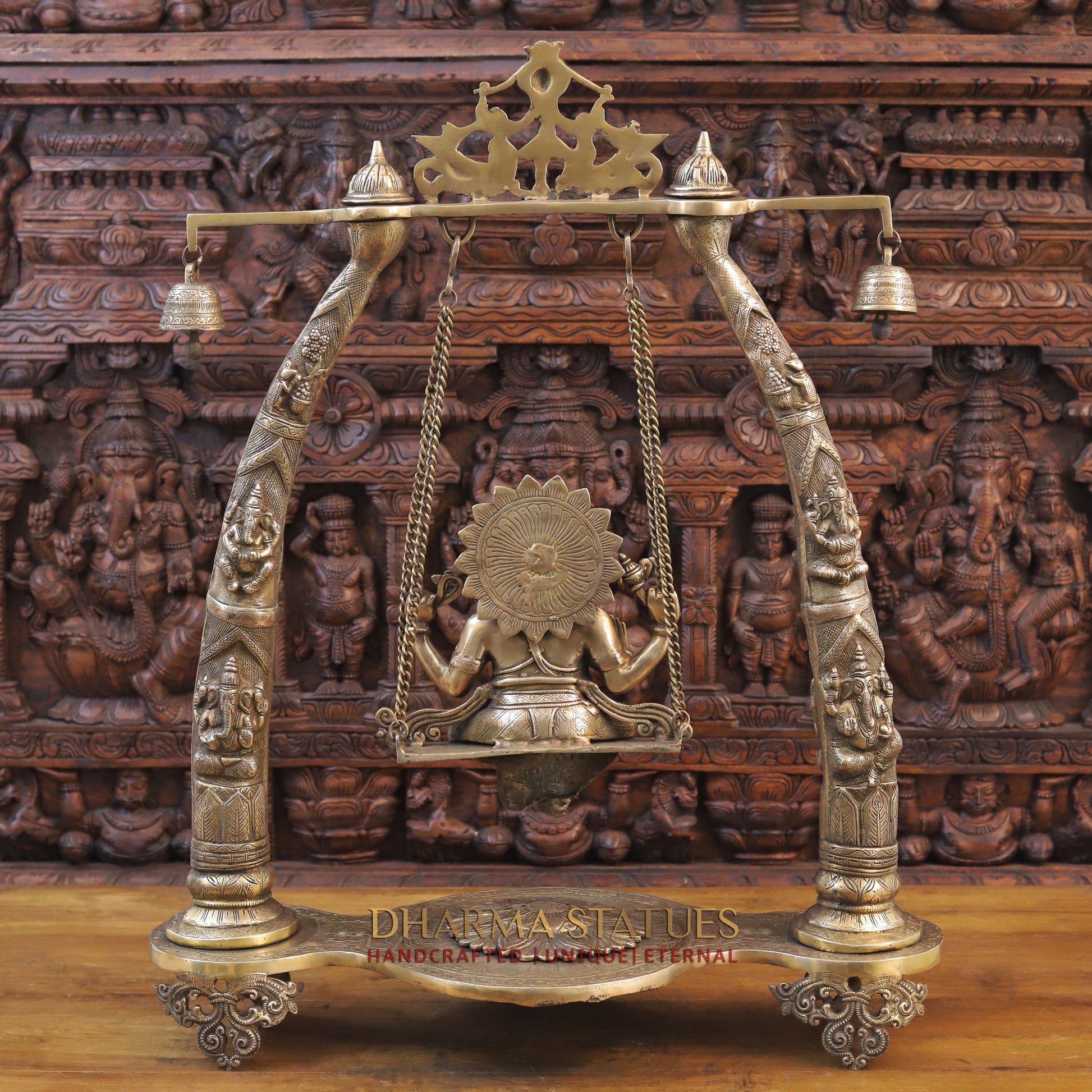 Brass Ganesh on a Swing, Golden Finish, 35"