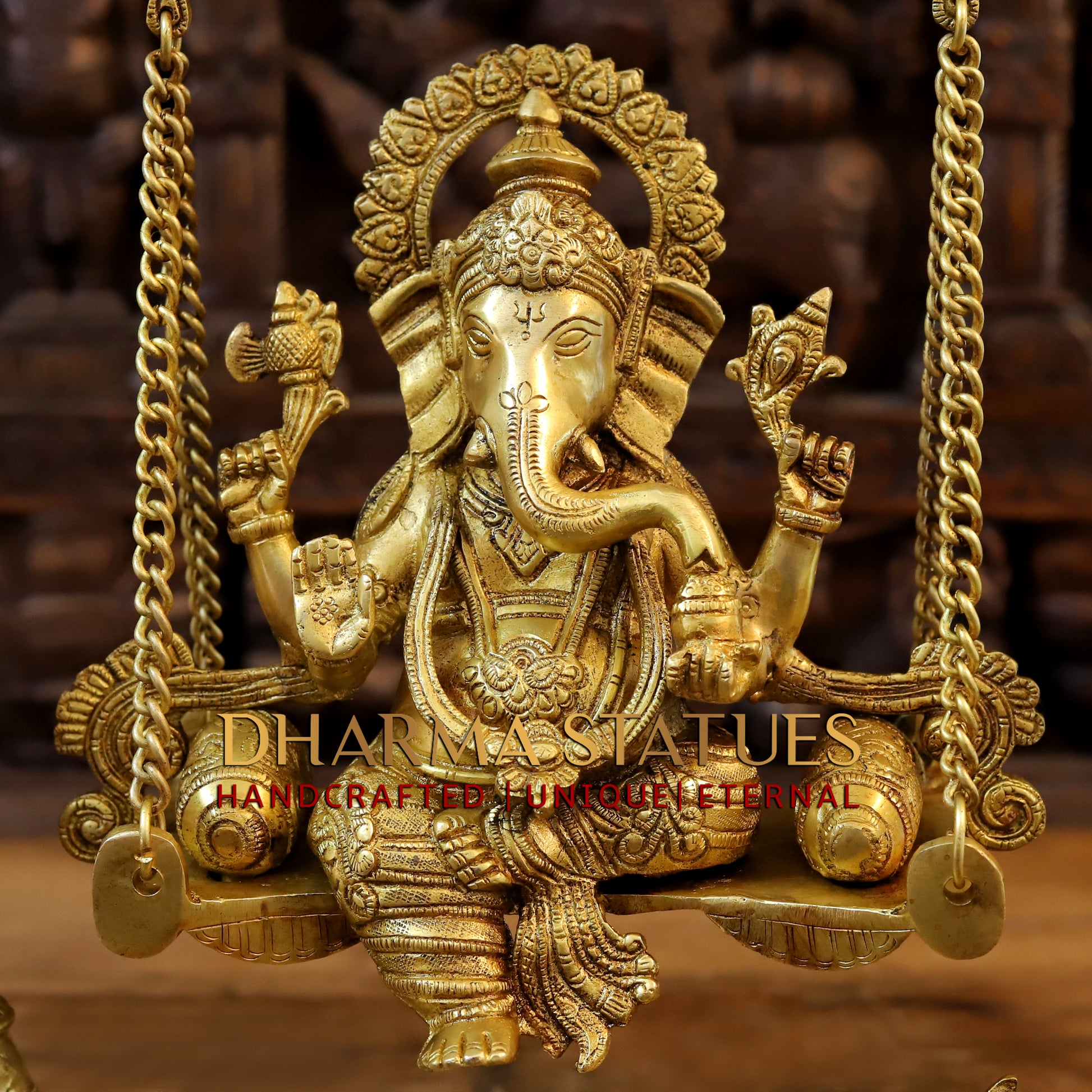 Brass Ganesh Jhula, Blessing Posture , Golden finish 26"