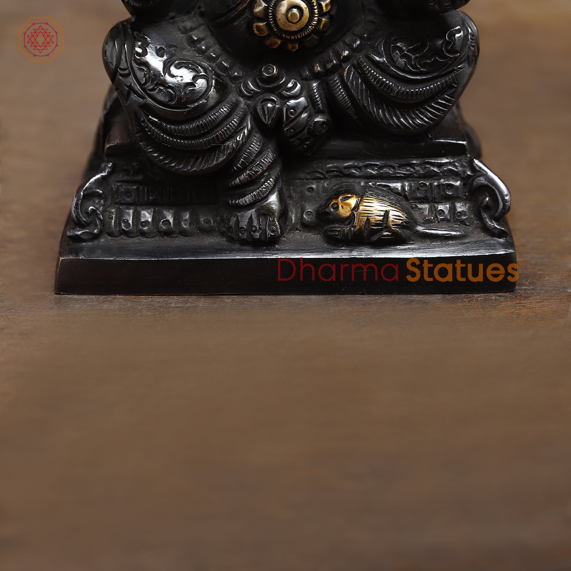 Brass Ganesh seated in Blessing Posture, Black Patina & Golden Finish, 5"
