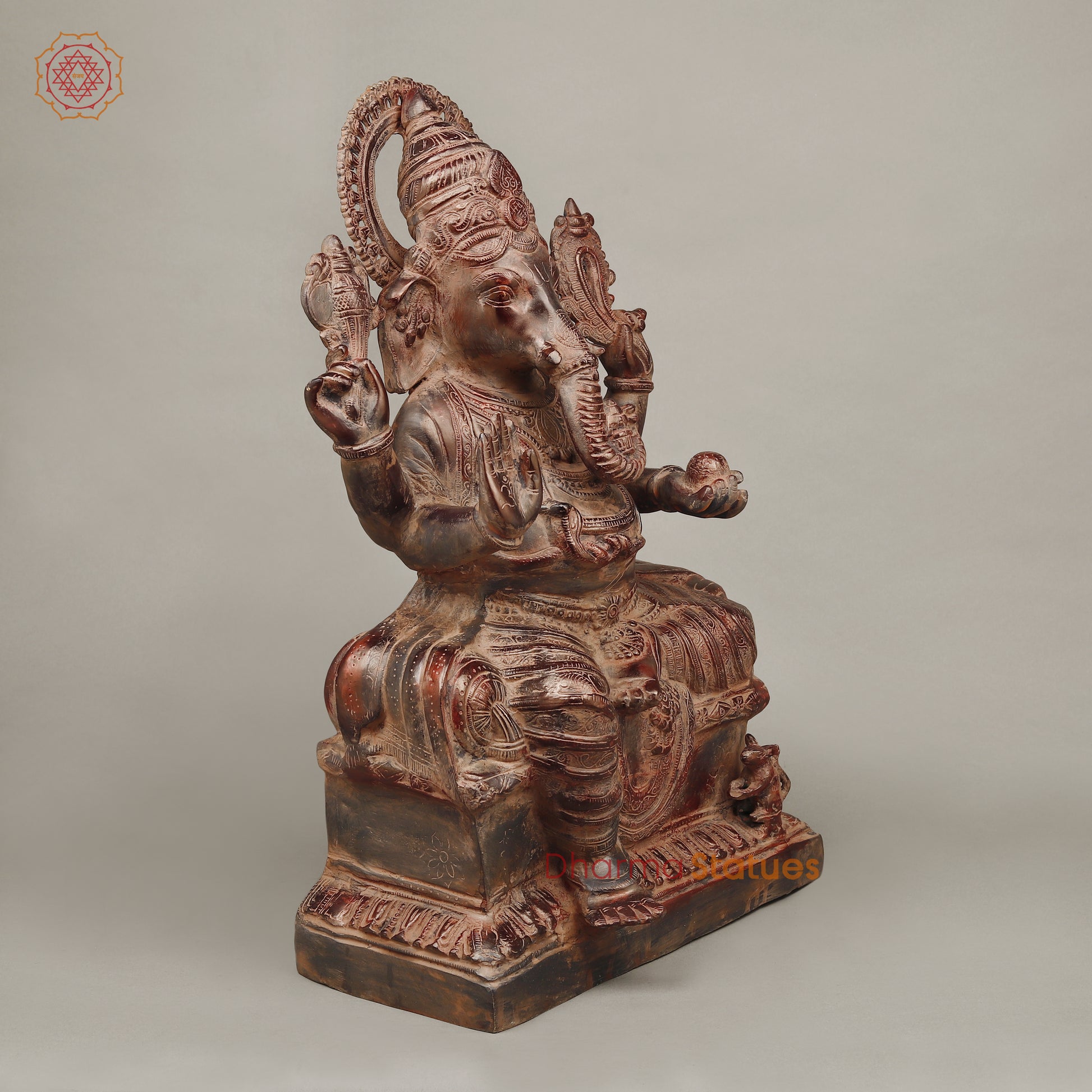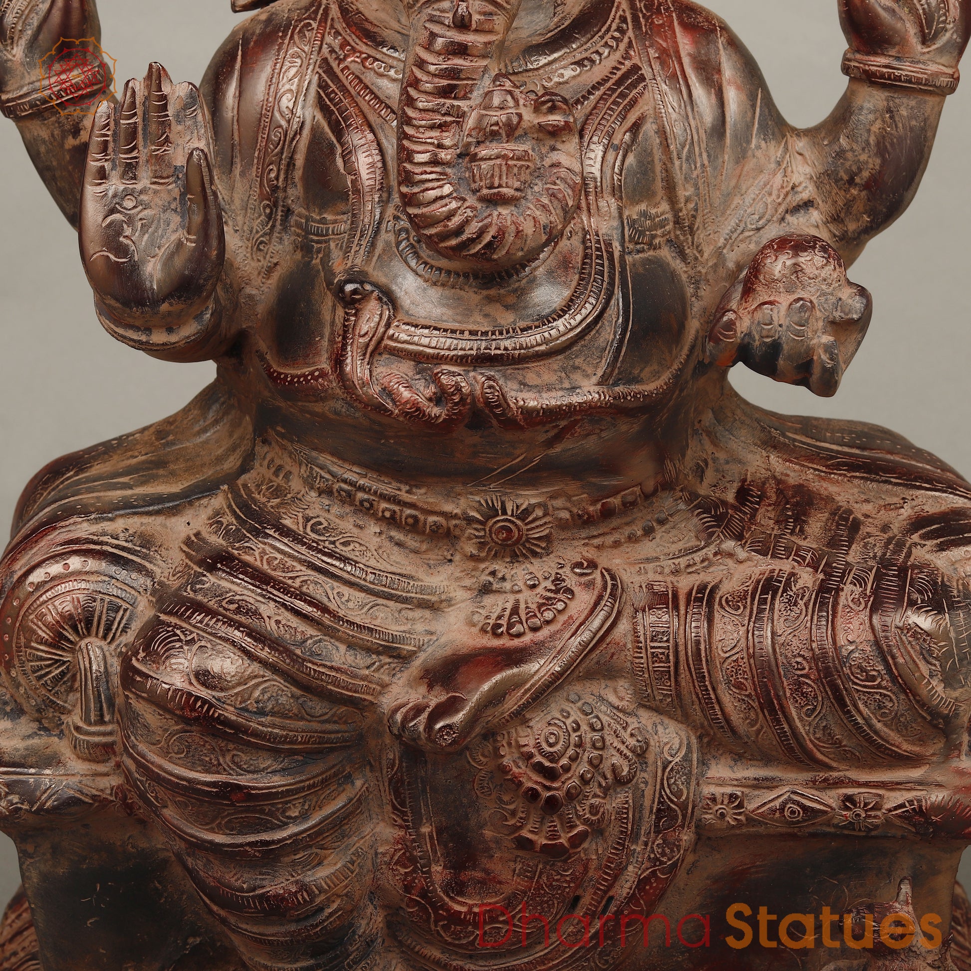 Brass Ganesh seated in Blessing Posture, Rustic Copper Finish 22.5"