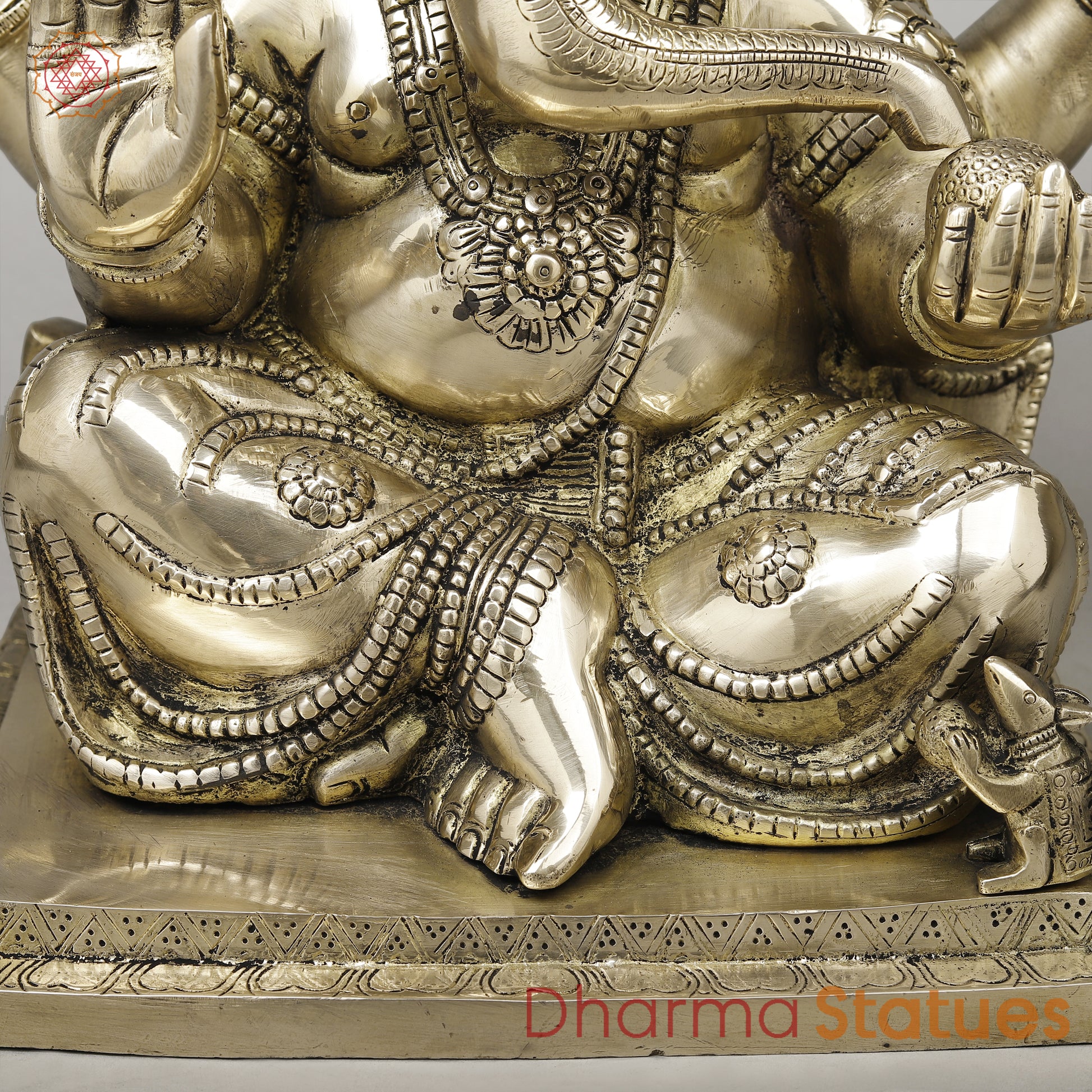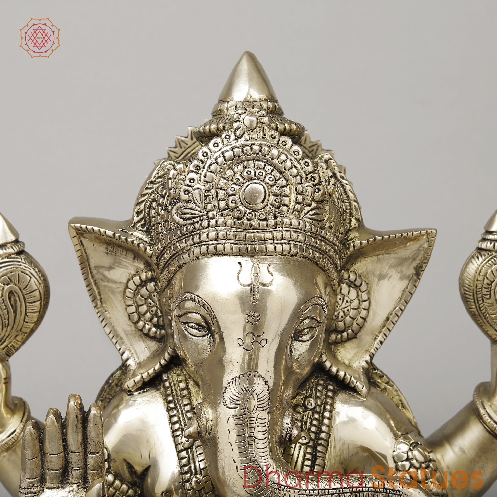 Brass Ganesh Seated in Blessing Posture, Smooth Finish, 14"
