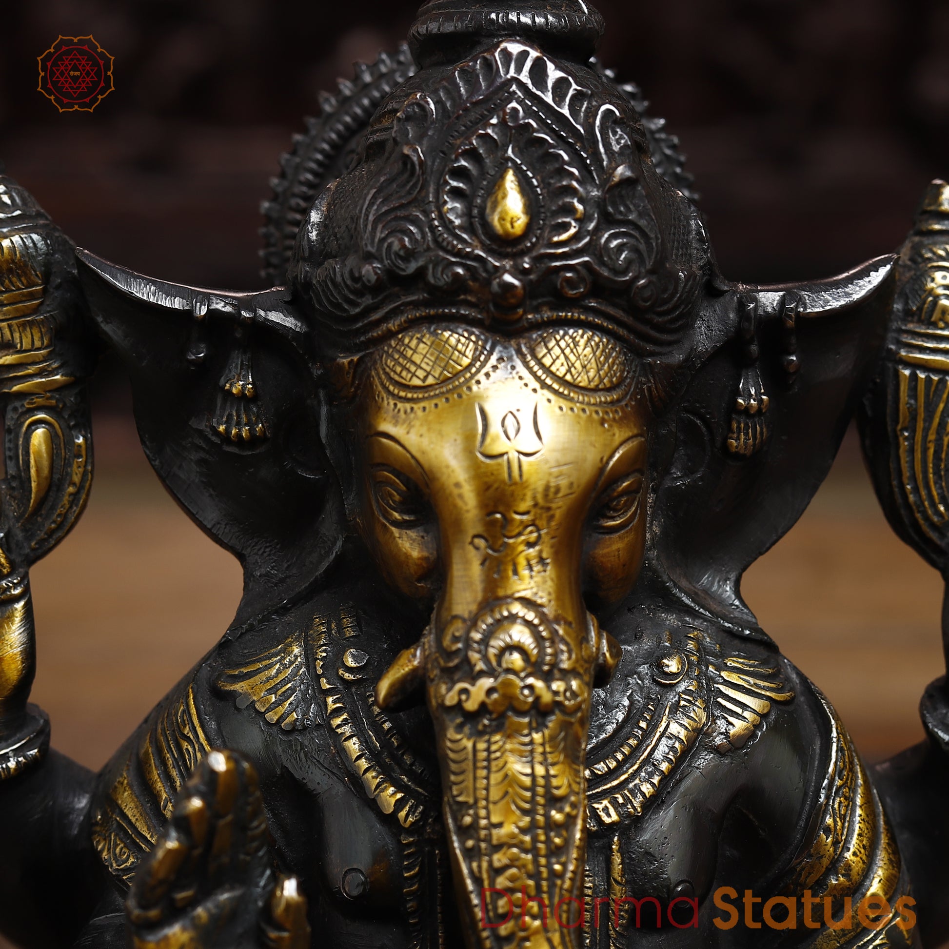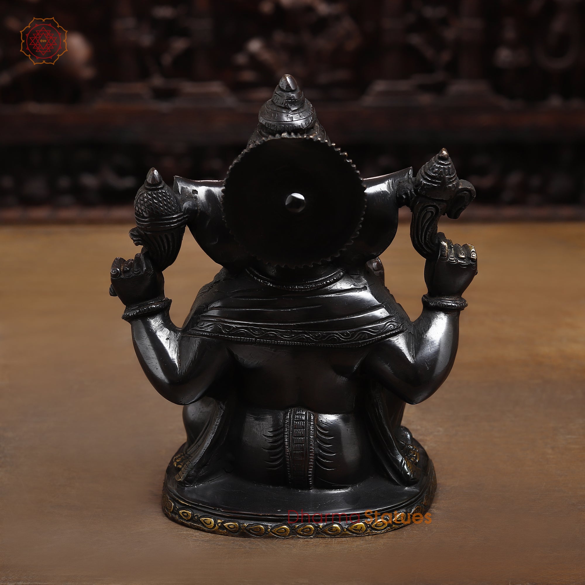 Brass Ganesh seated in Blessing Posture, Golden & Black Patina, 8.5"
