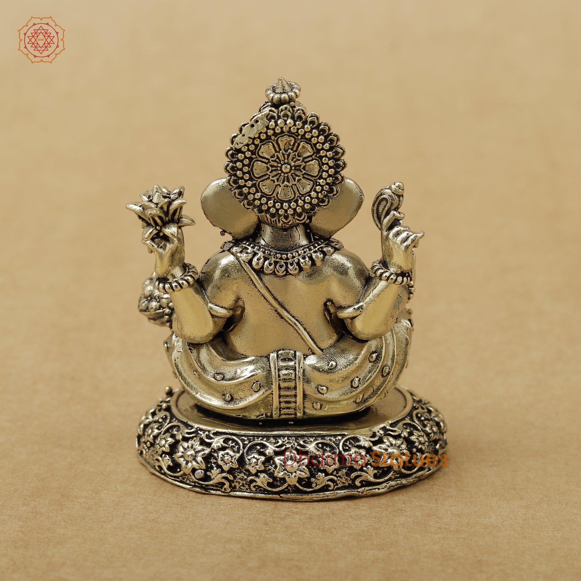 Brass Ganesh Seated in Blessing Posture is a symbol of wisdom, prosperity, and protection. This exquisite 6-inch statue, adorned with a radiant golden finish, beautifully captures Lord Ganesh in a serene blessing pose, making it a perfect addition to your home, temple, or sacred space.