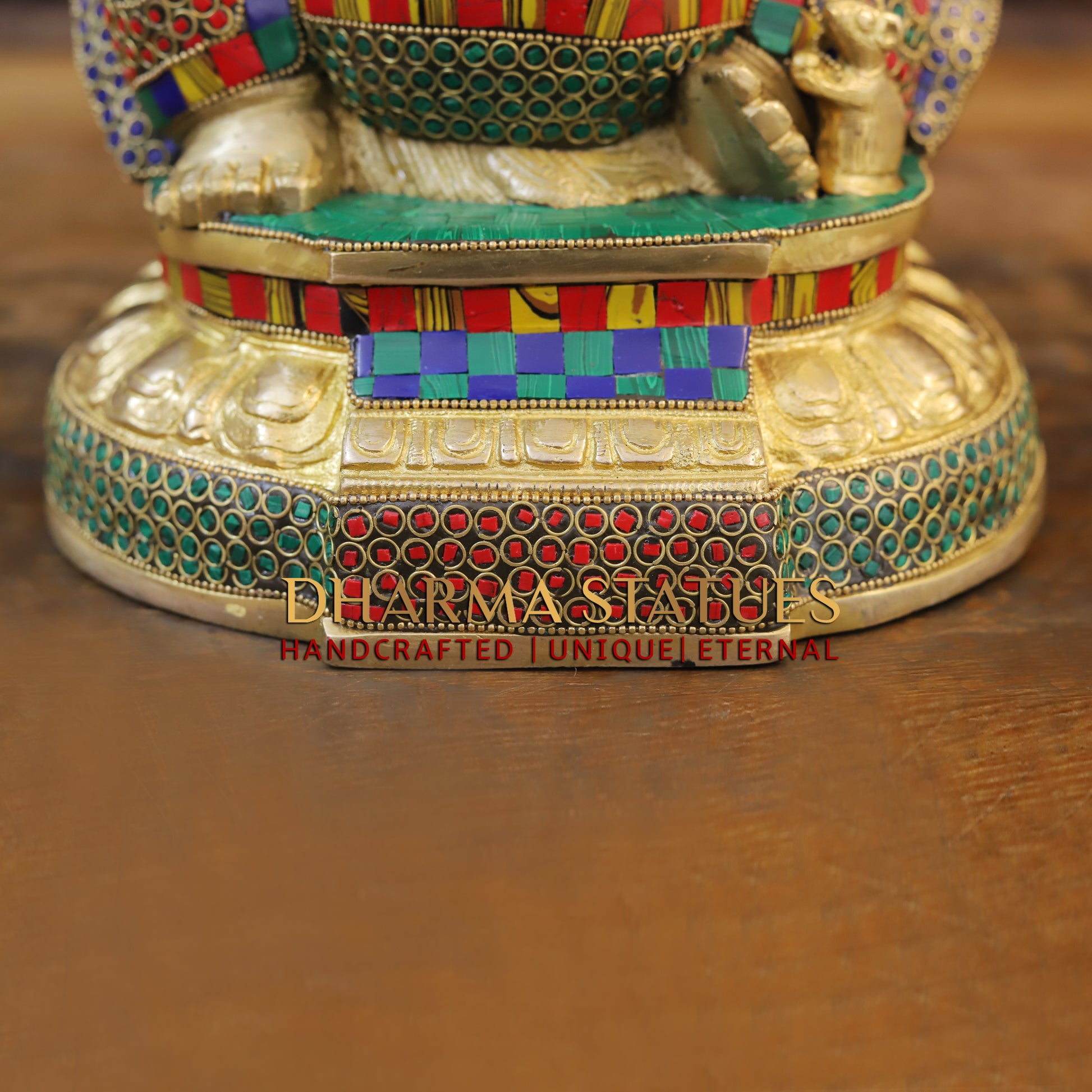 Brass Ganesh seated on Base, Golden & Stonework, 13"
