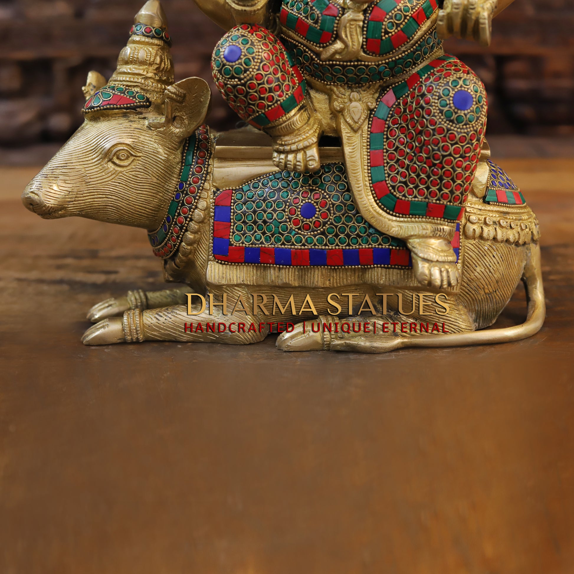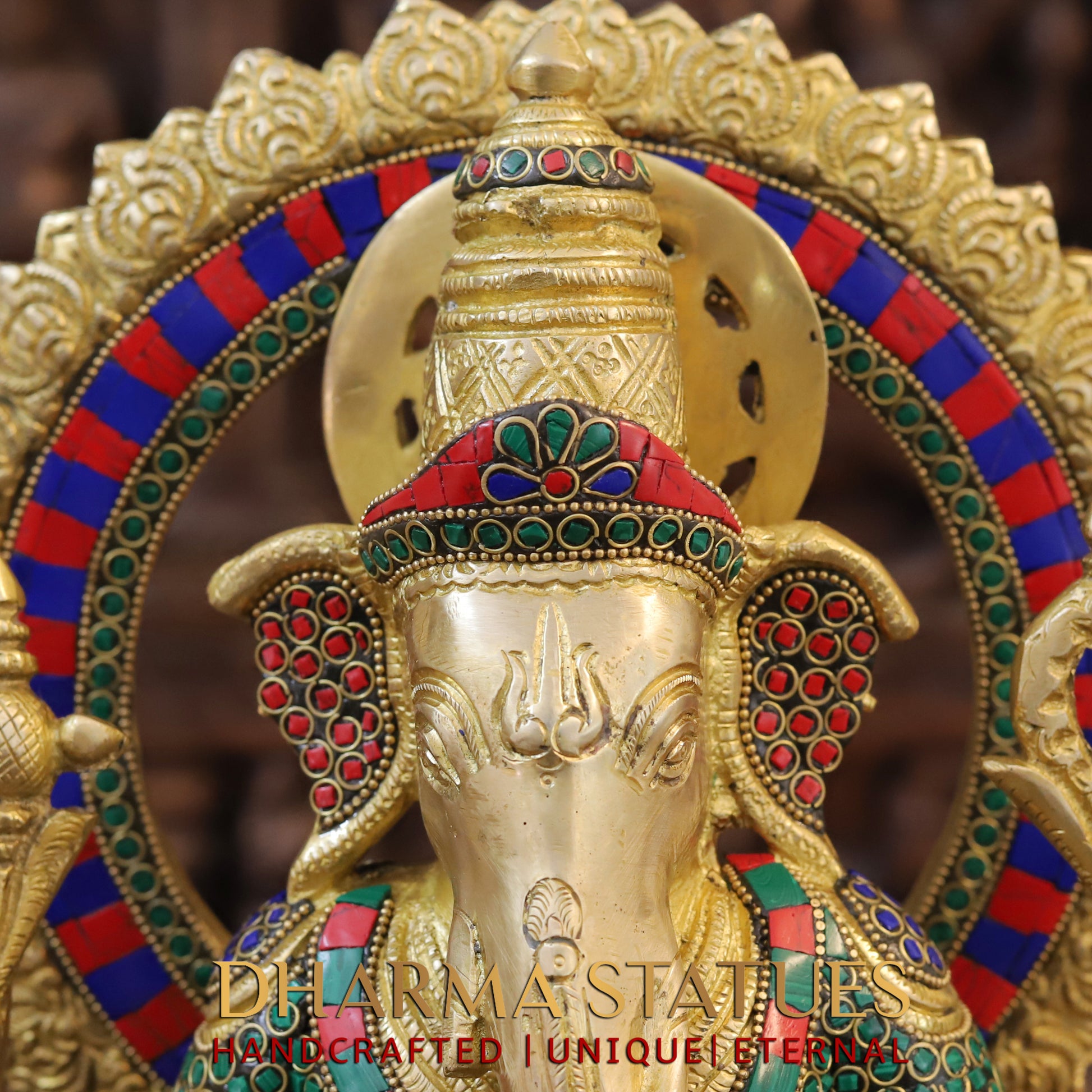 Brass Ganesh seated on Rat, Golden & Stonework, 16"
