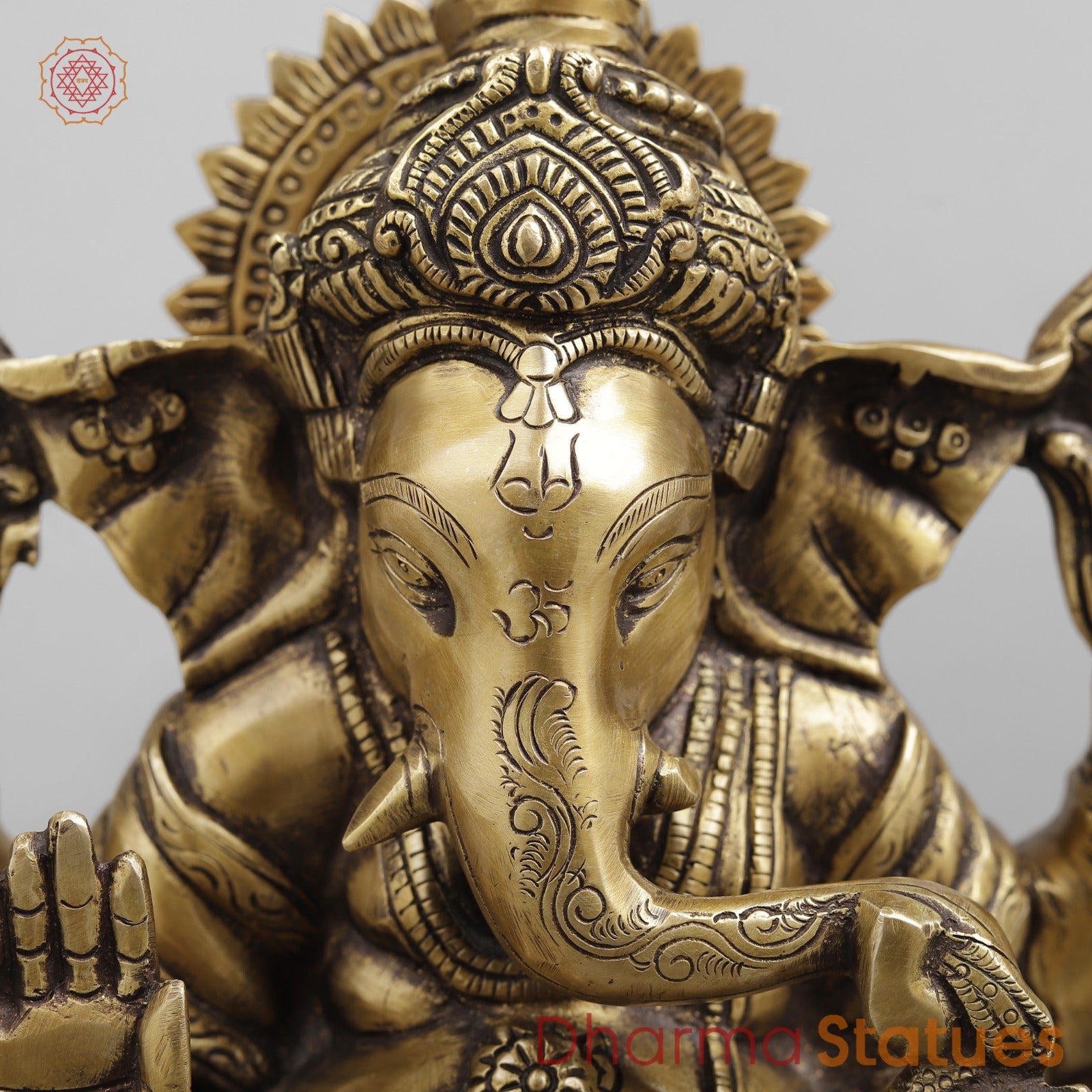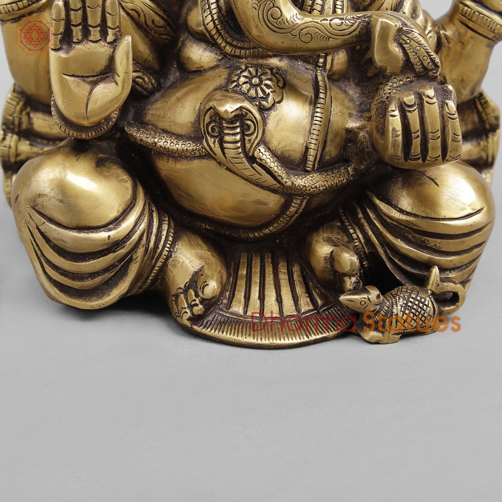 Brass Ganesh seated w/o Base, Antique finish 8”