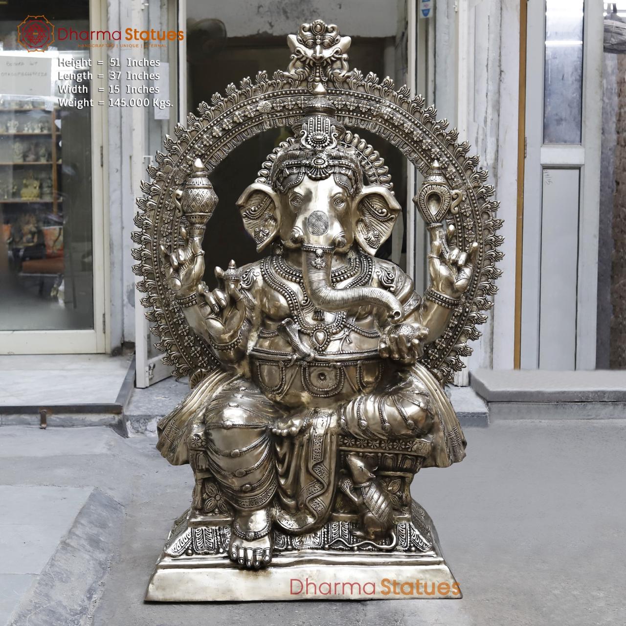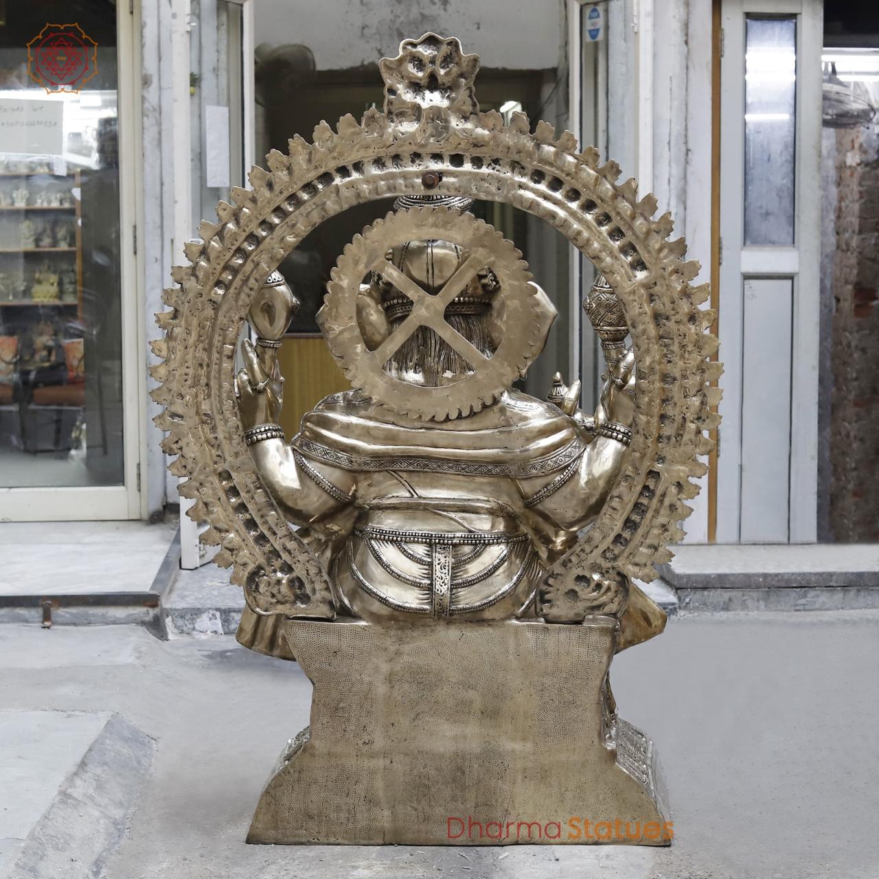 Brass Ganesh Seated With Yaali Arch, Fine Smooth Finish 62”