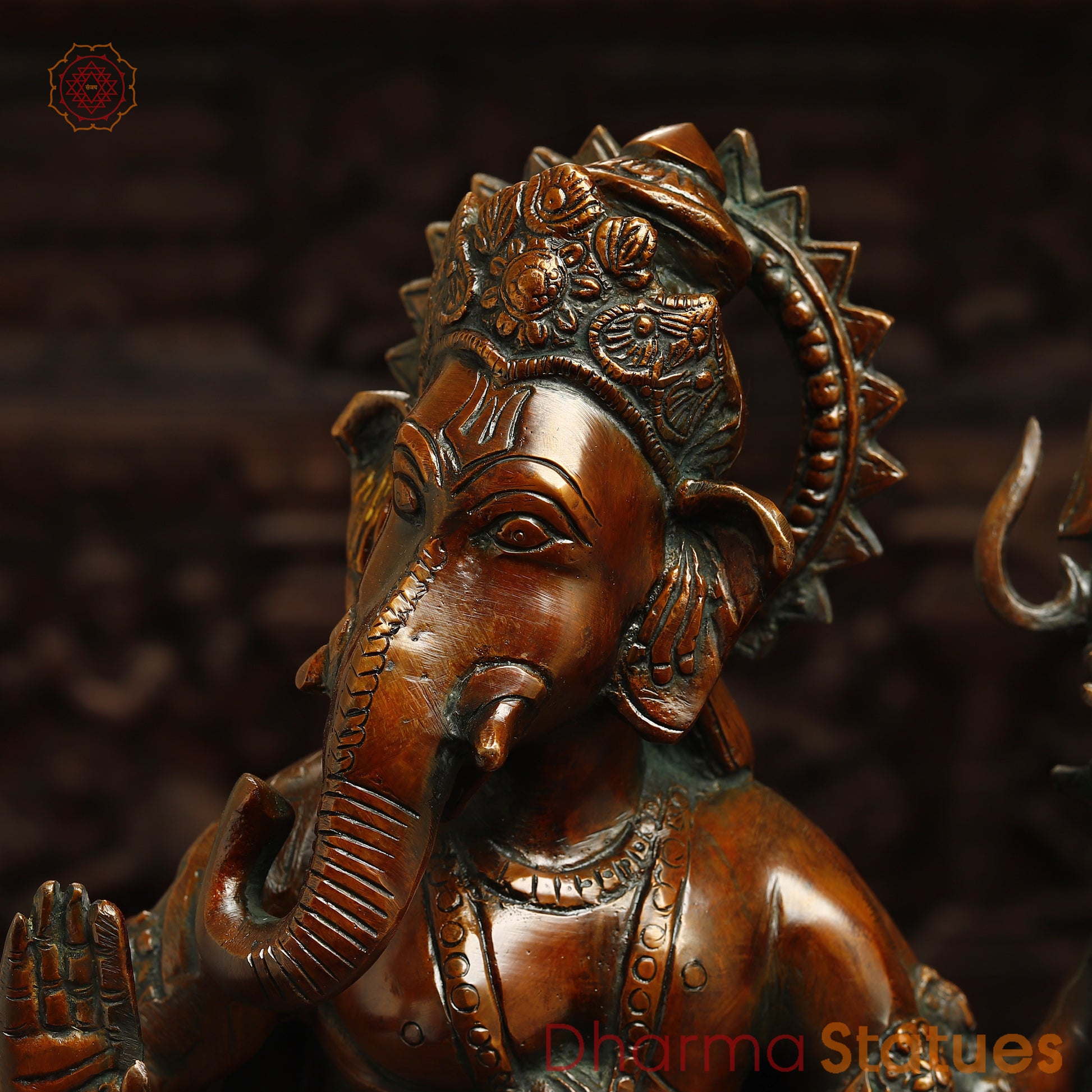 Brass Ganesh Standing on Pedestal, Copper Finish, 19"