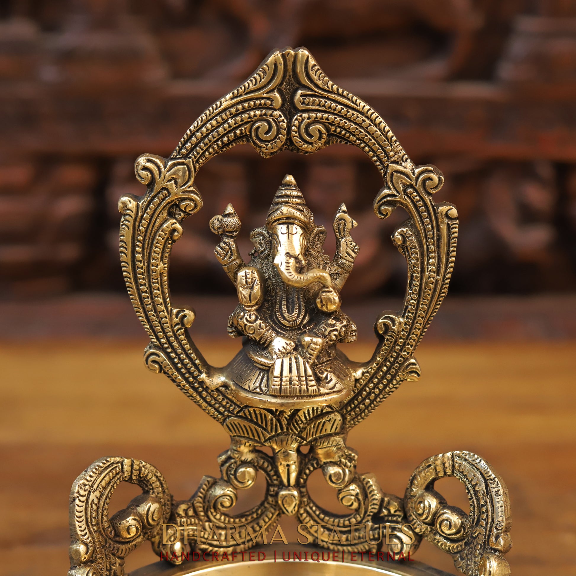 Crafted from high-quality brass and finished with a stunning golden hue, our 10" Brass Ganesh Urli is a beautiful addition to any space. With intricate detailing and an elegant design, it adds a touch of sophistication and traditional charm. Perfect for displaying flowers or floating candles, this urli brings both aesthetic and functional benefits to your decoration.