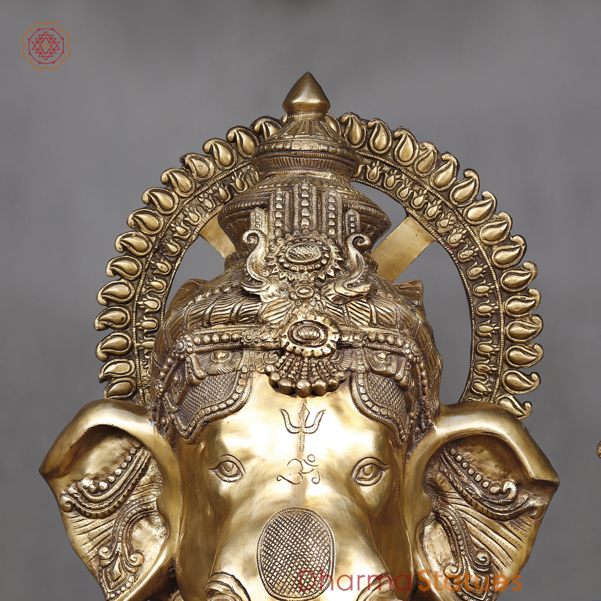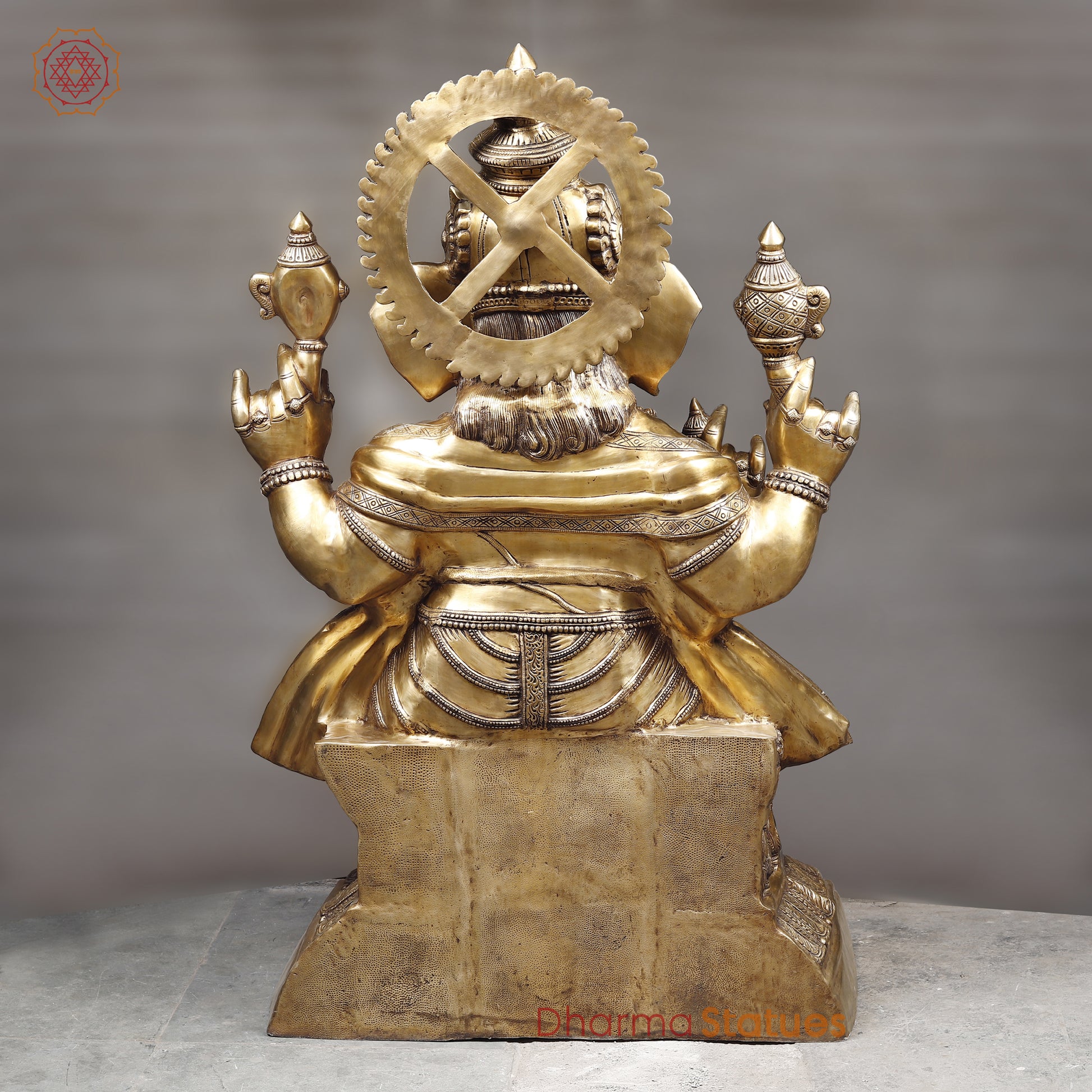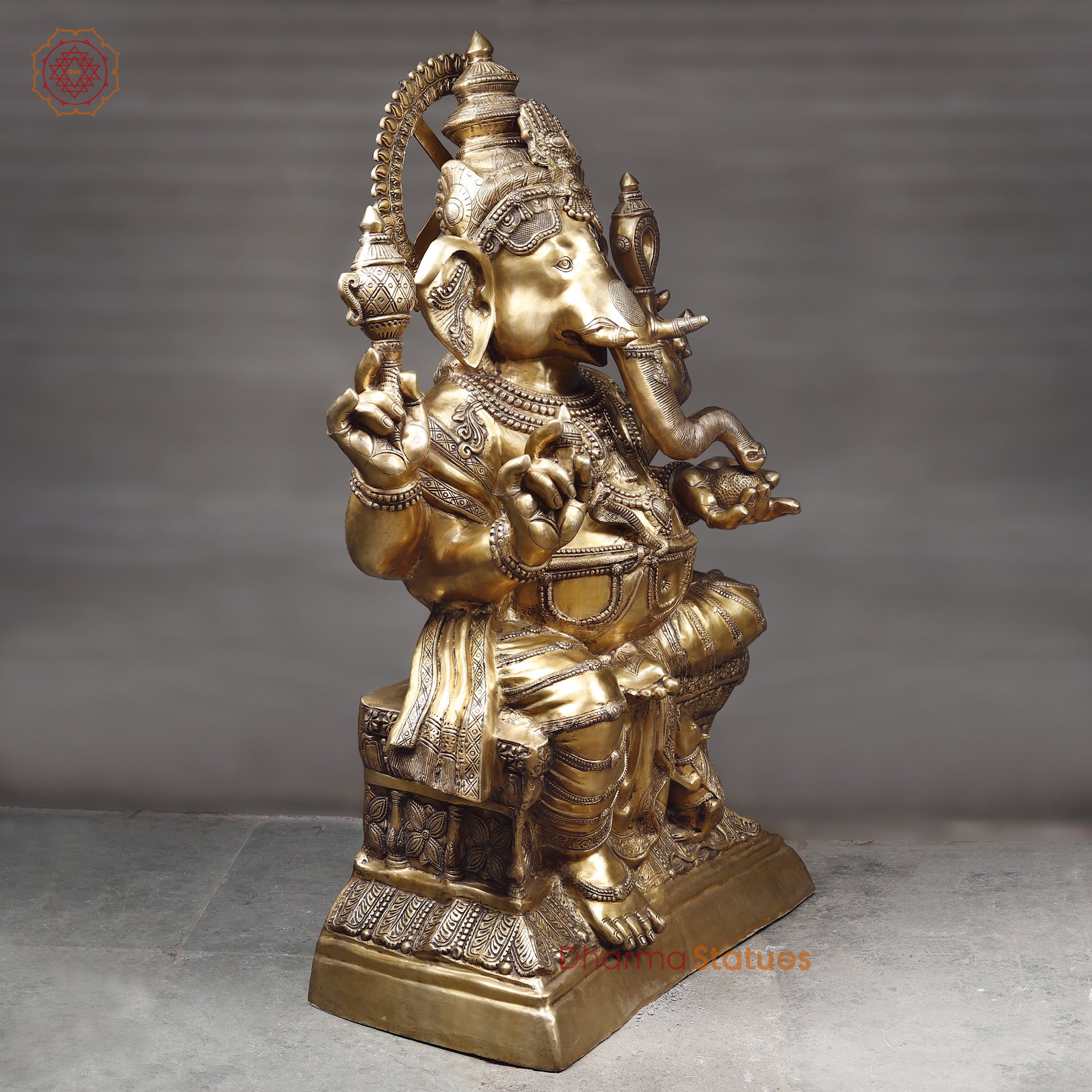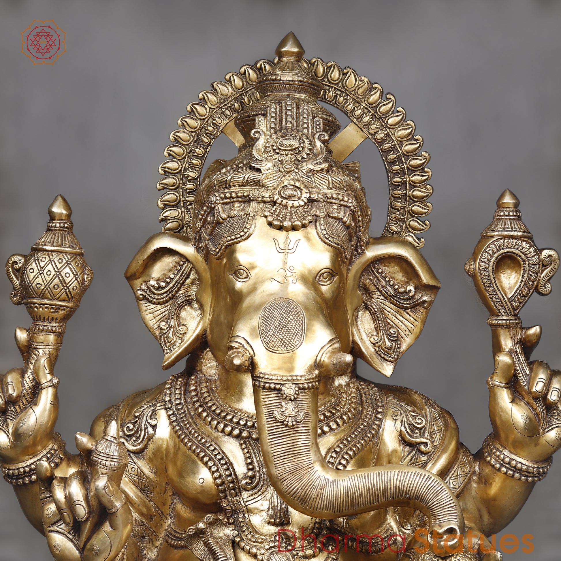 Brass Ganesh Statue Seated , Special Gold Finish 62"