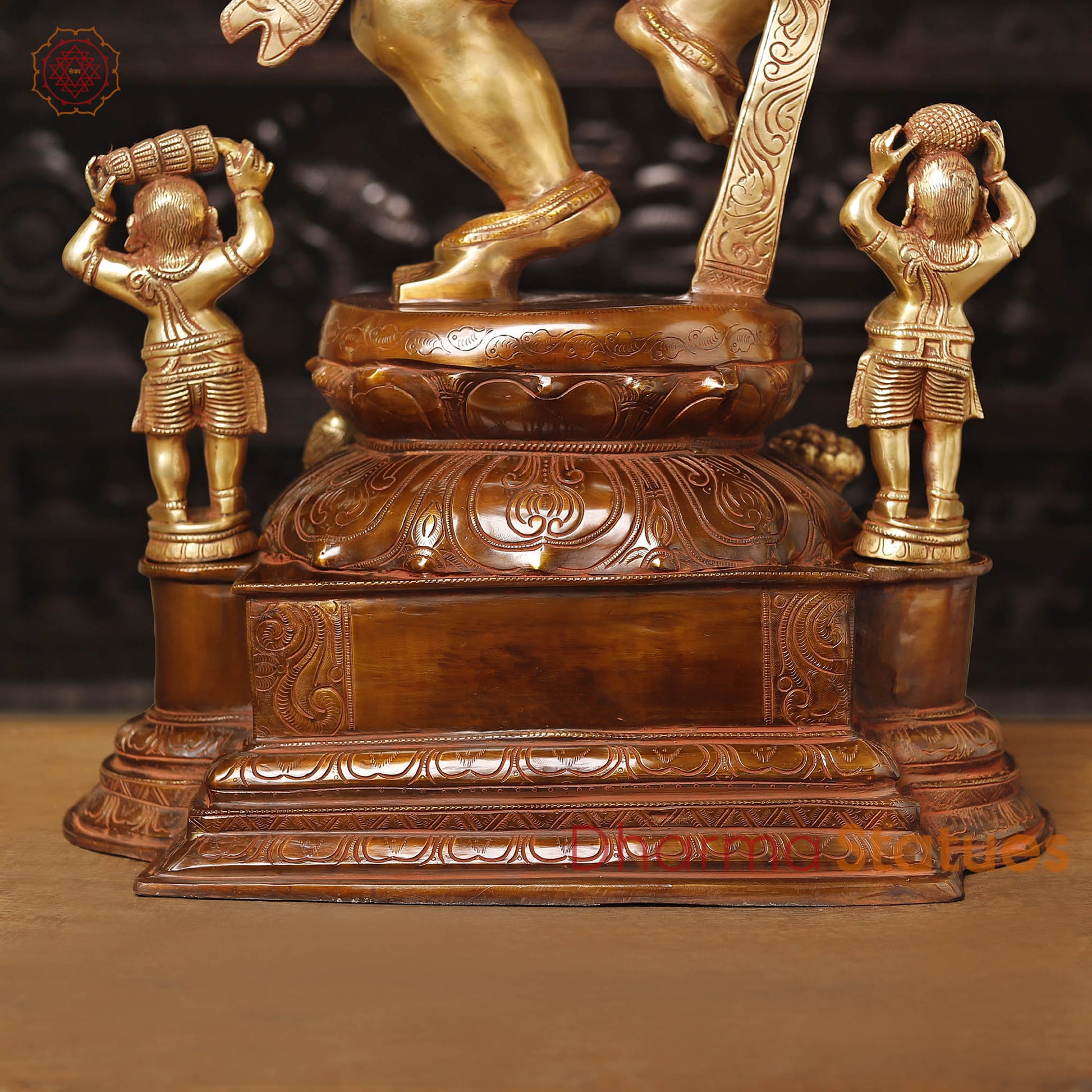 •    The statue also includes two joyful dancing devotees, each holding symbolic offerings or musical instruments, participating in the divine dance.
