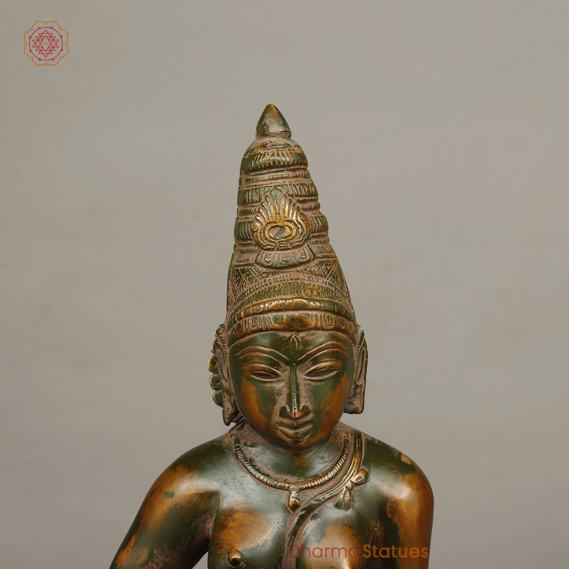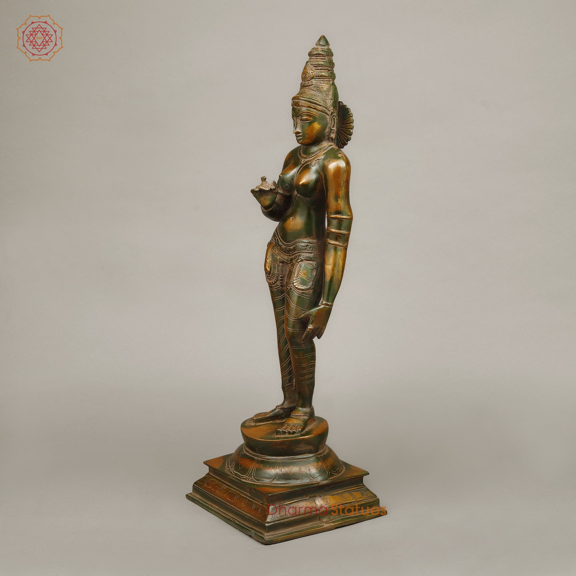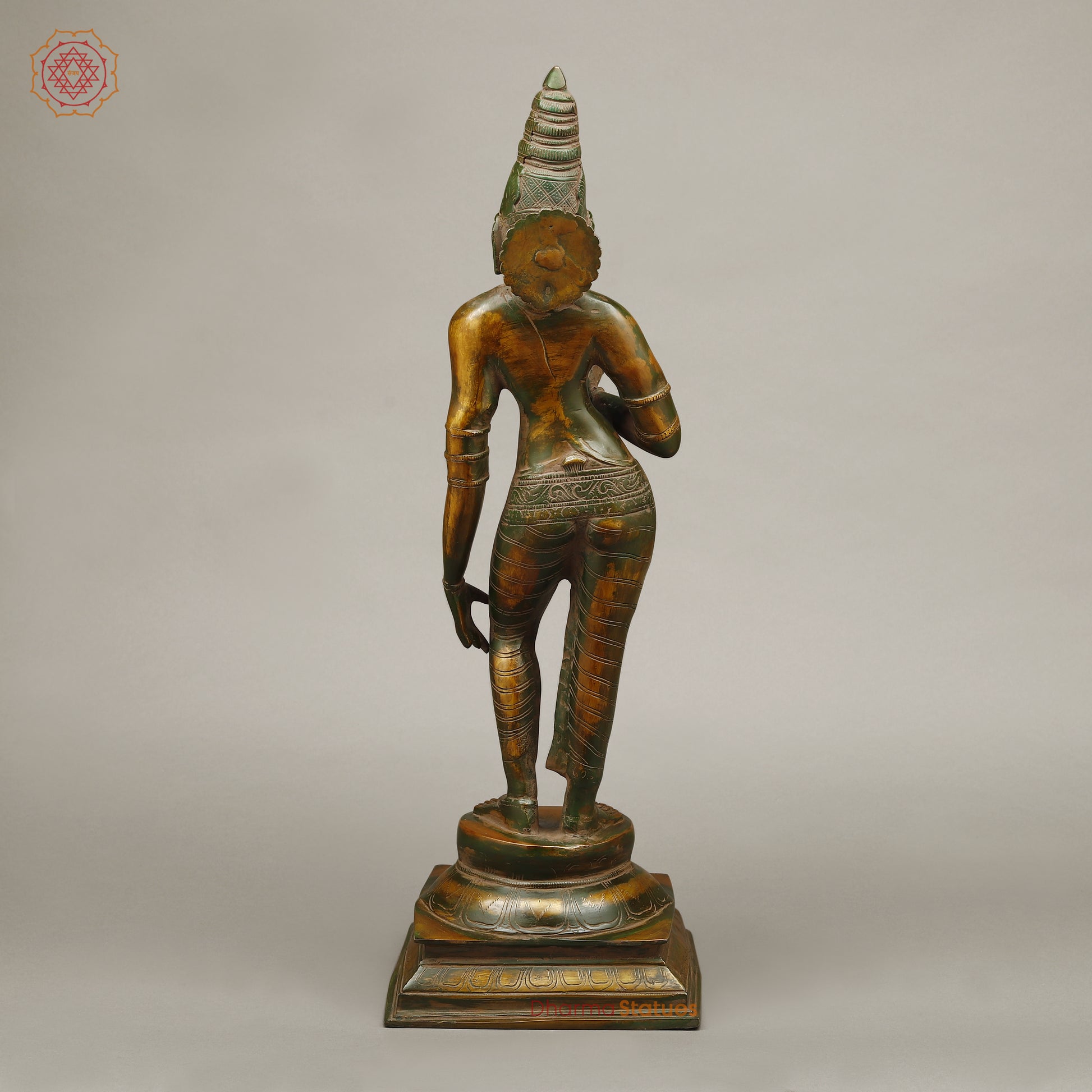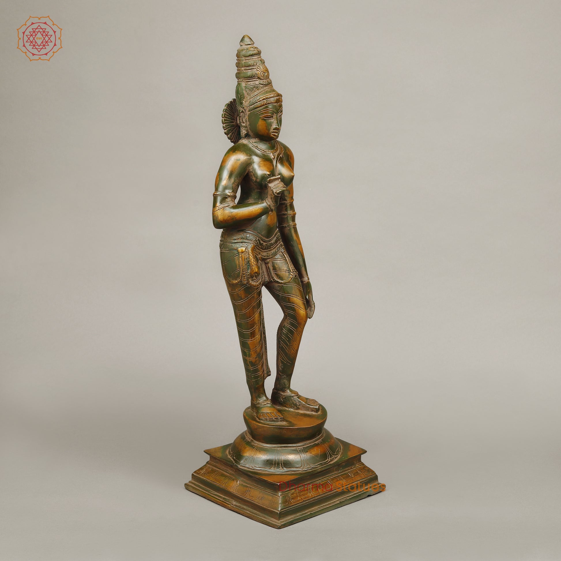 The Brass Goddess Uma stands at 23 inches tall and features a vibrant, multi-color finish. Crafted from durable brass, this statue embodies the beauty and strength of the goddess herself. Bring a touch of divinity and grace to your space with this stunning piece.
