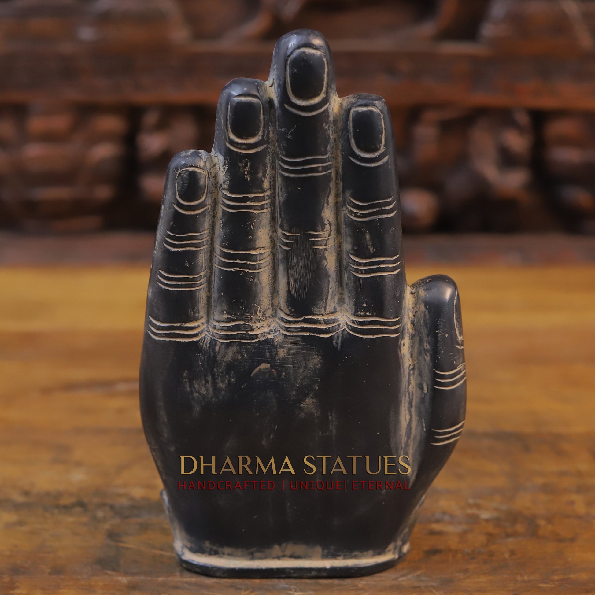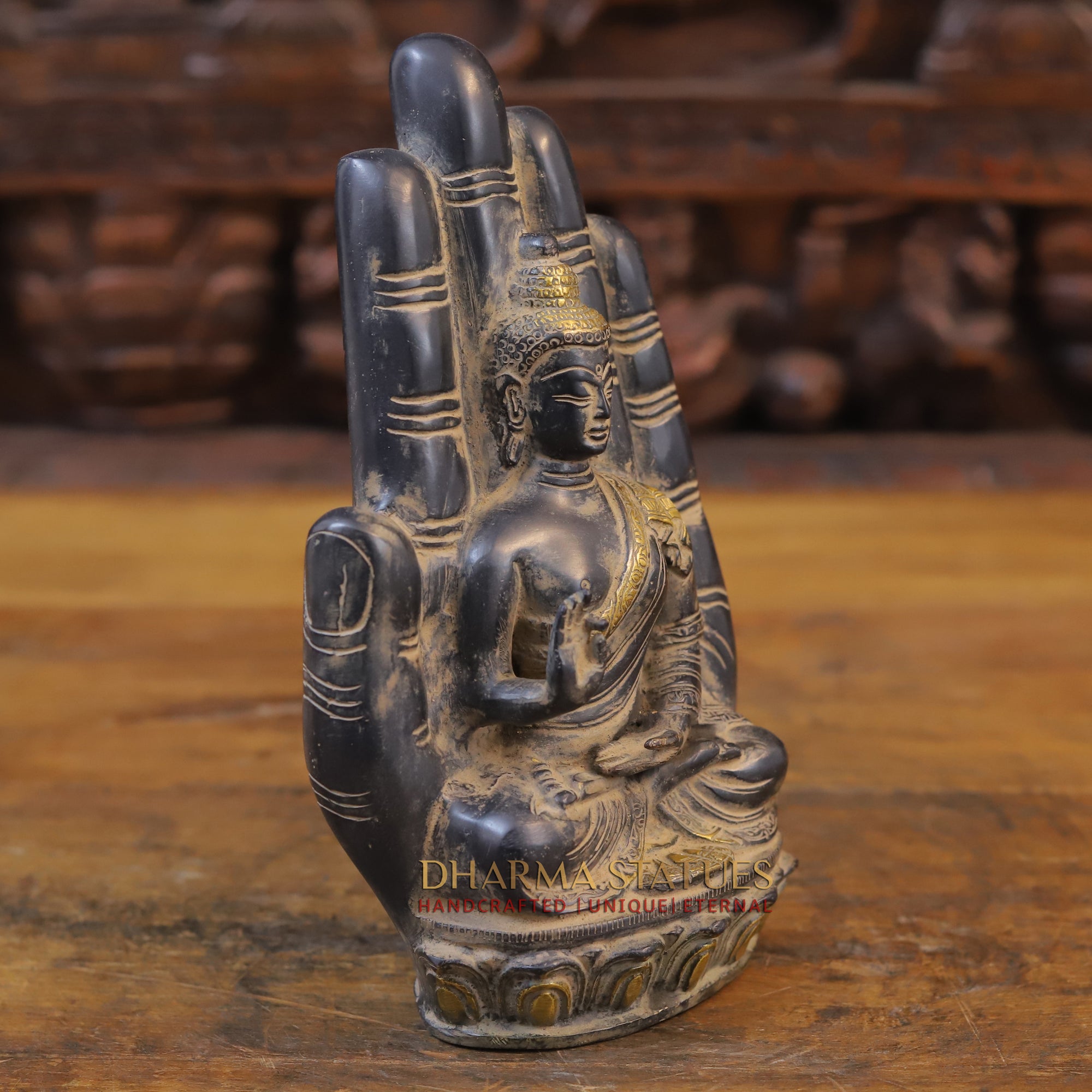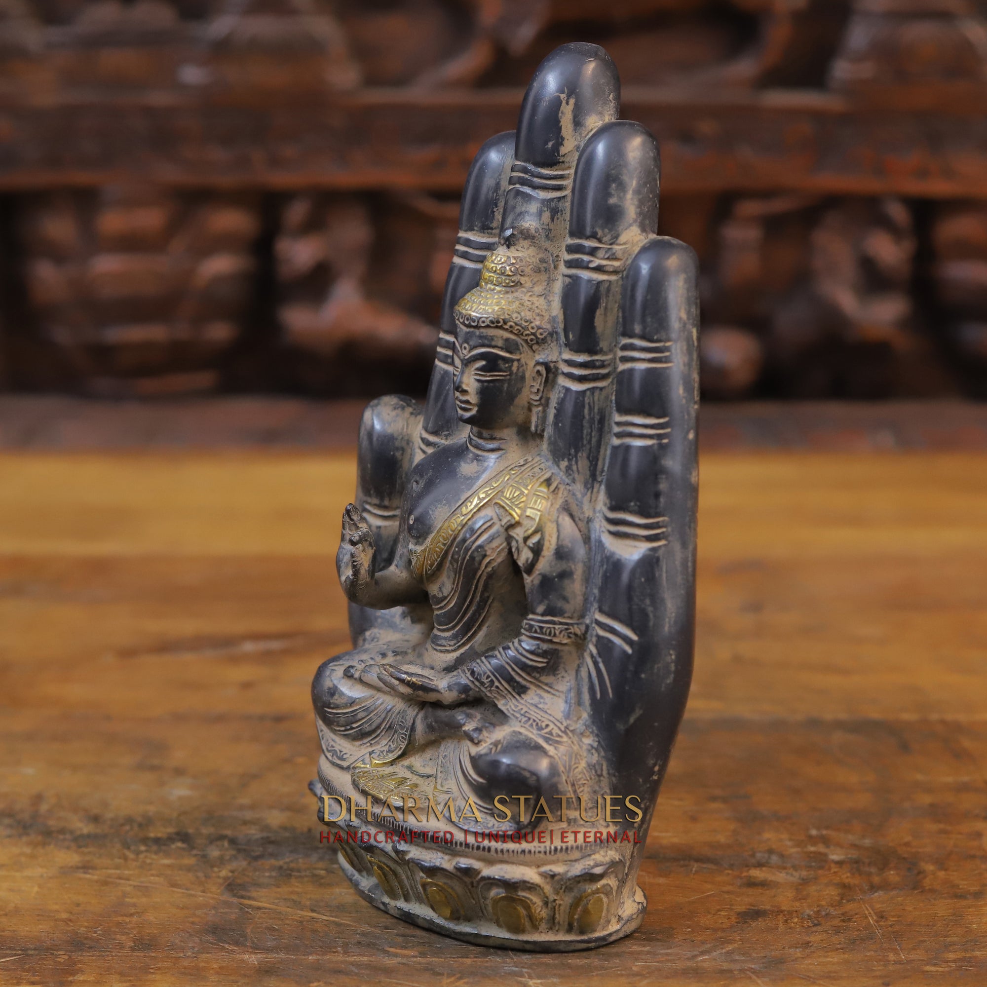 Brass Hand Palm Blessing Buddha Statue, Copper & Golden Finish, 9.5"