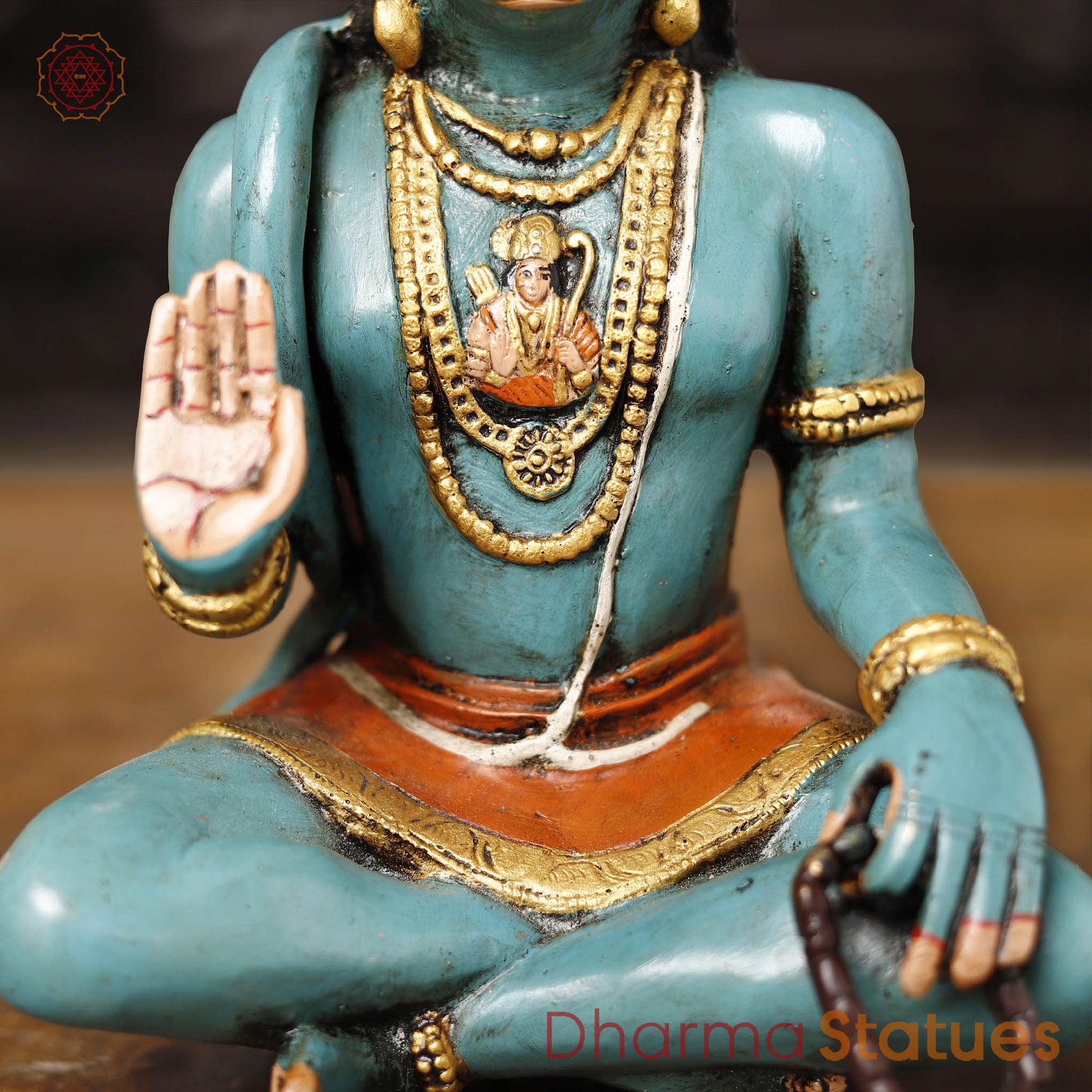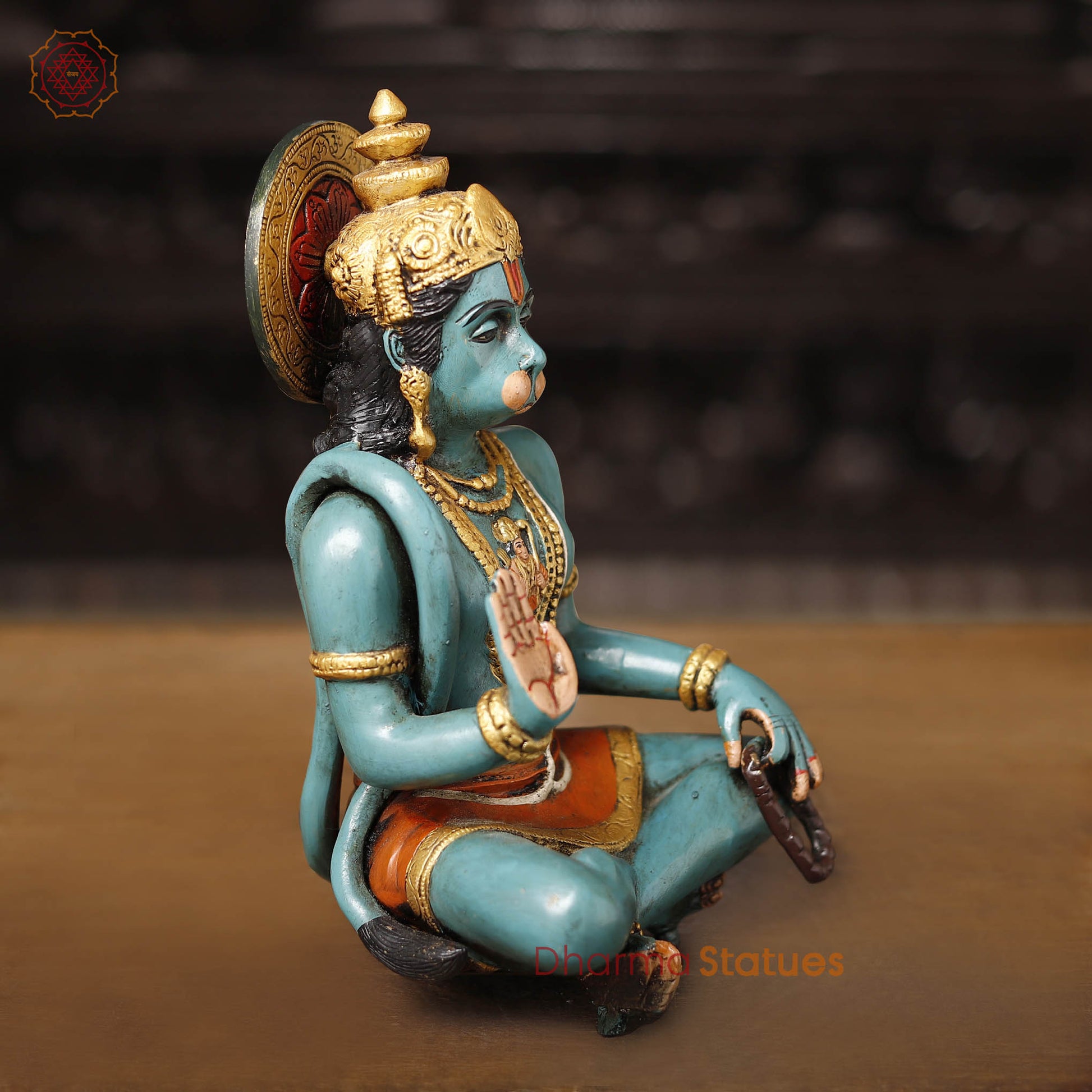 Brass Hanuman Statue, Blessing Posture, Fine colorful Finish 11"