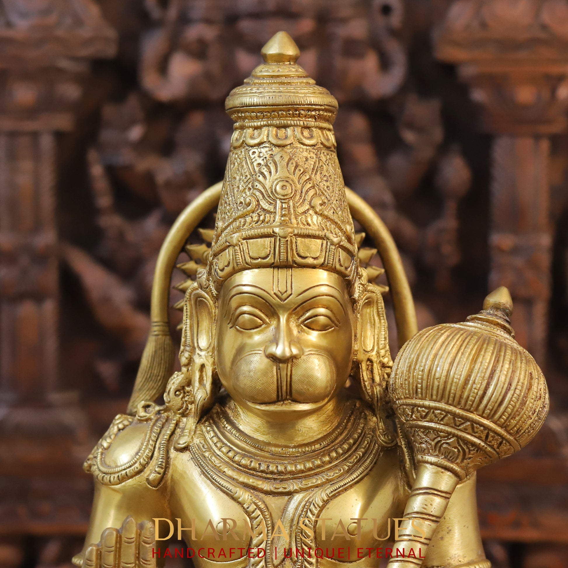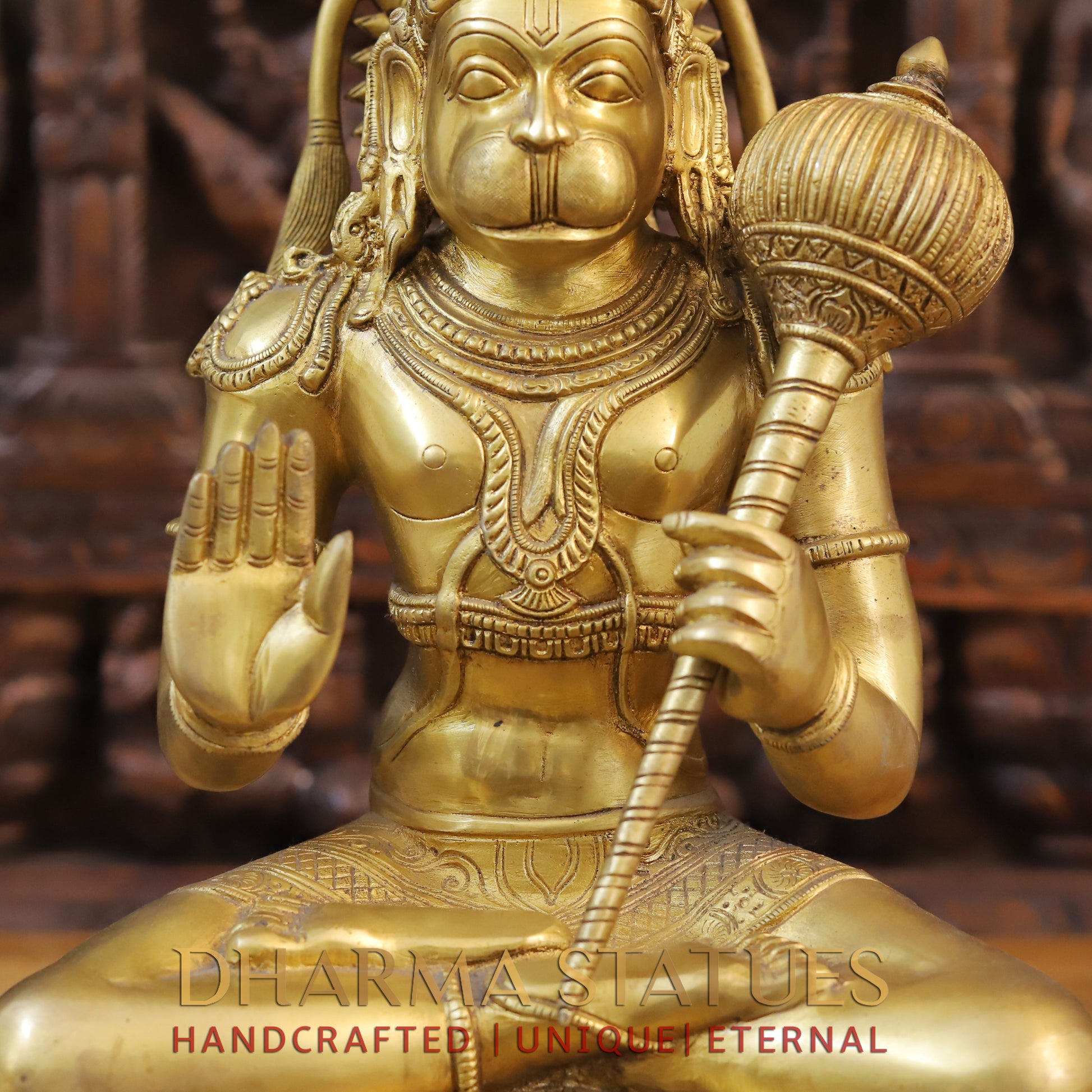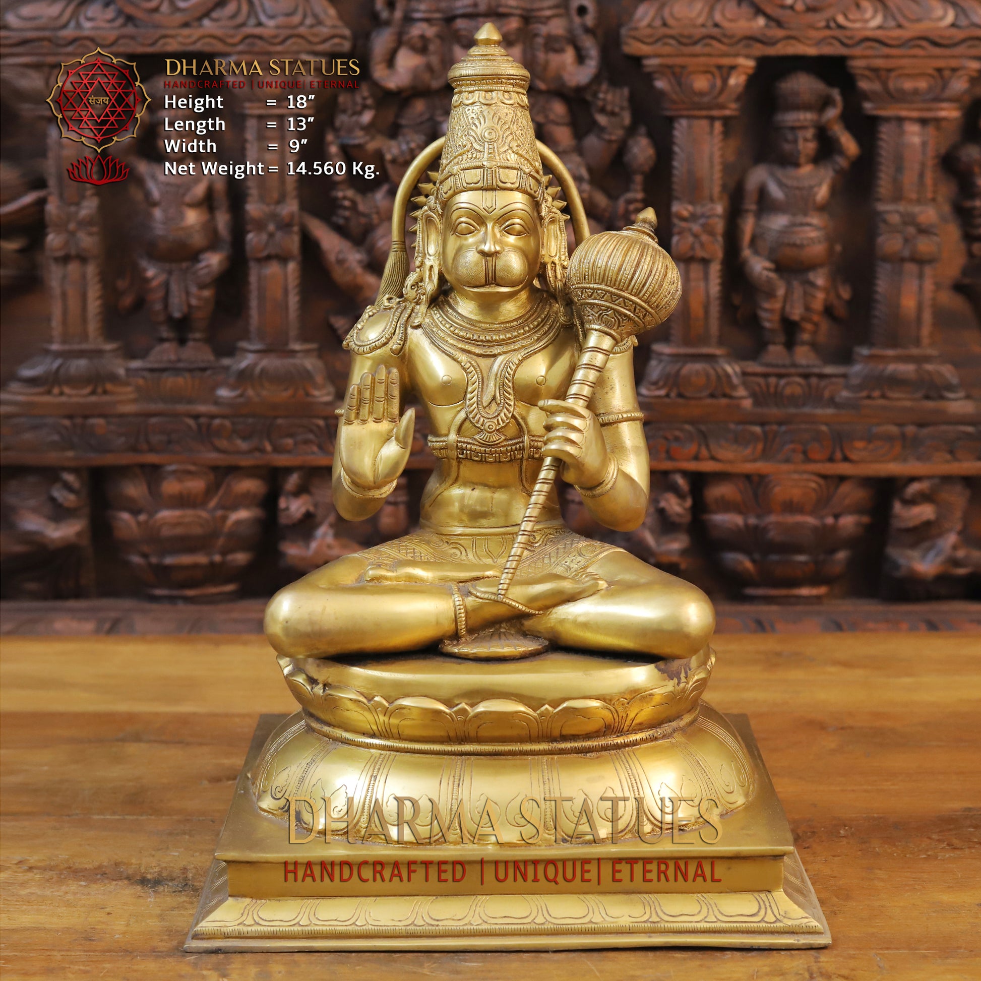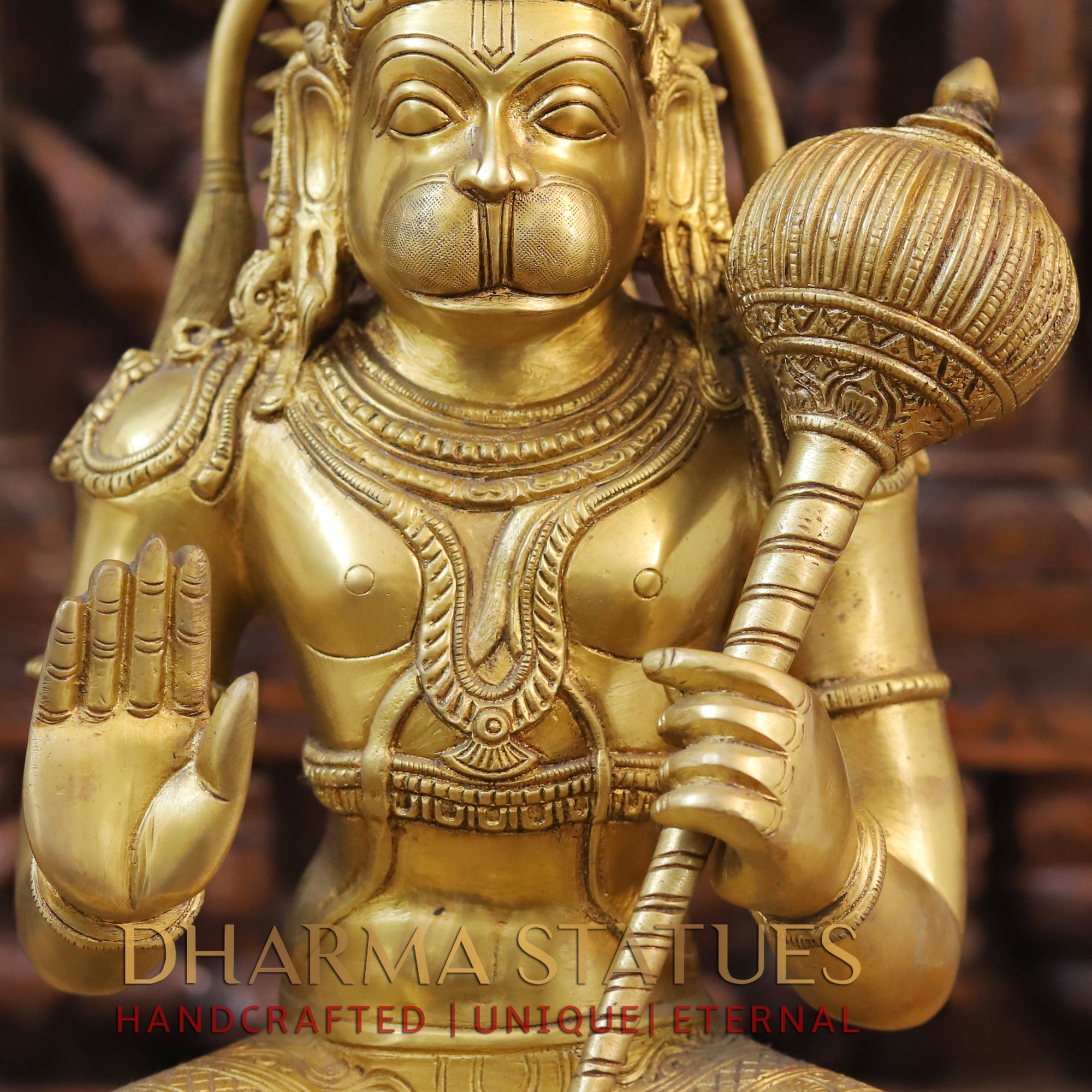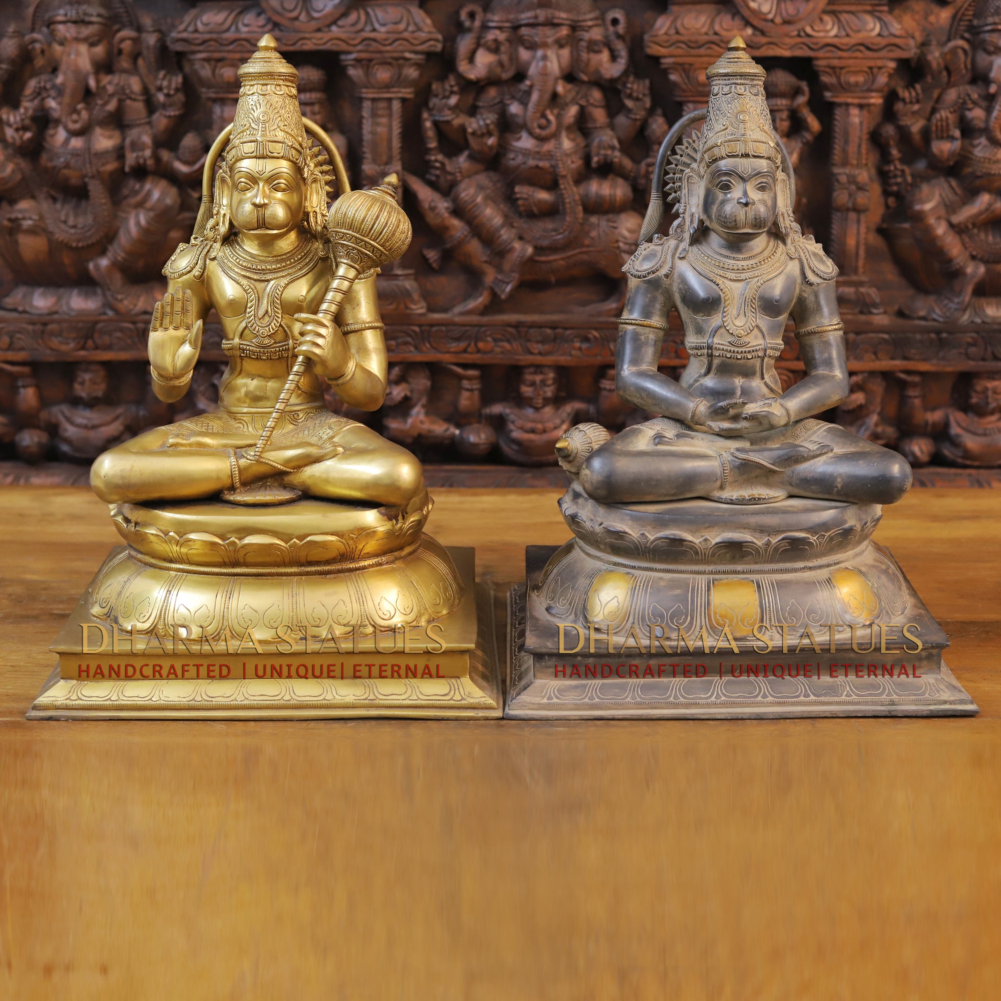 Meticulously crafted by skilled artisans, every detail of this idol—from Hanuman's expressive face to the intricate design of the lotus—showcases exceptional craftsmanship. The lotus pedestal symbolizes purity and enlightenment, further elevating the significance of this piece as a harbinger of prosperity and positive energy.
