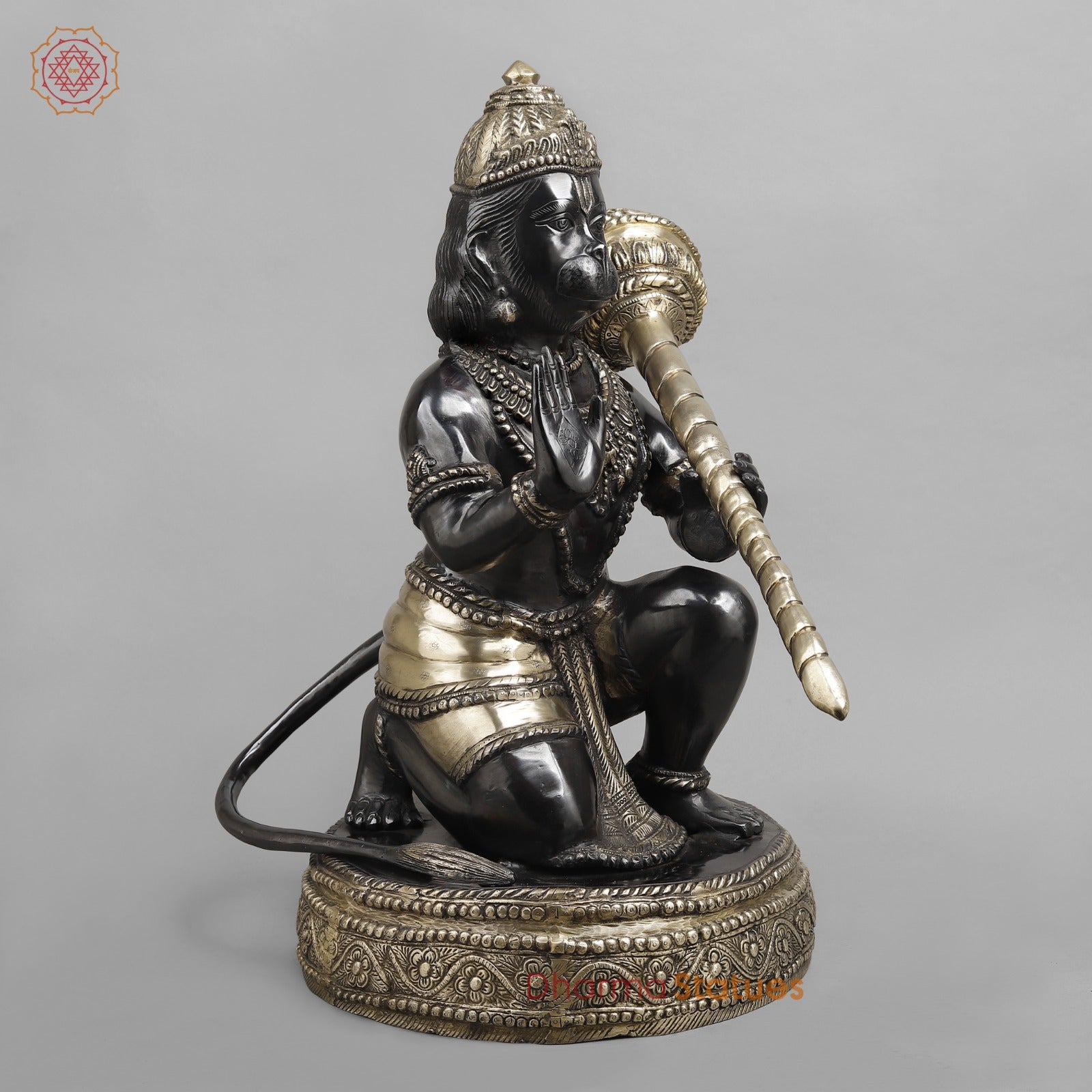 Brass Hanuman ji Seated, Black and Smooth finish 26”