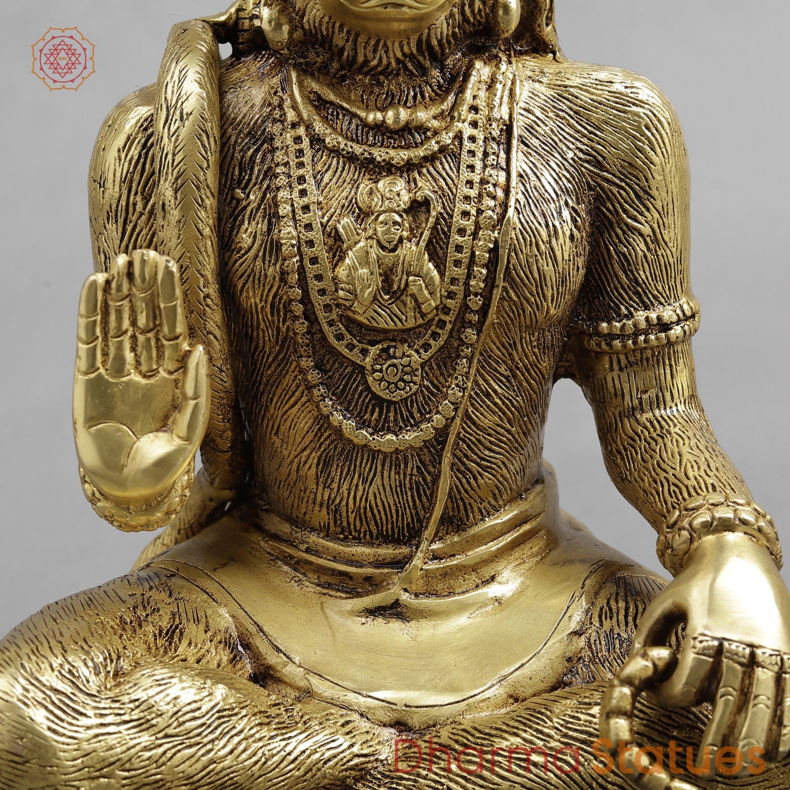 Brass Hanuman Seated Fine, Golden Finish 11.5”