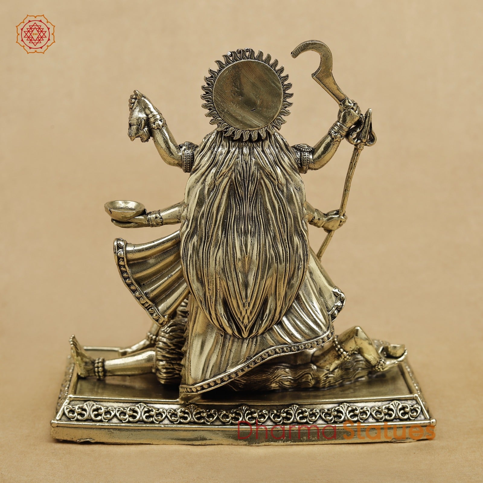 A finely detailed brass statue of Goddess Kaali crafted with intricate ornaments and traditional design. This powerful representation symbolizes strength, protection, and divine energy, making it ideal for home temples or spiritual décor.