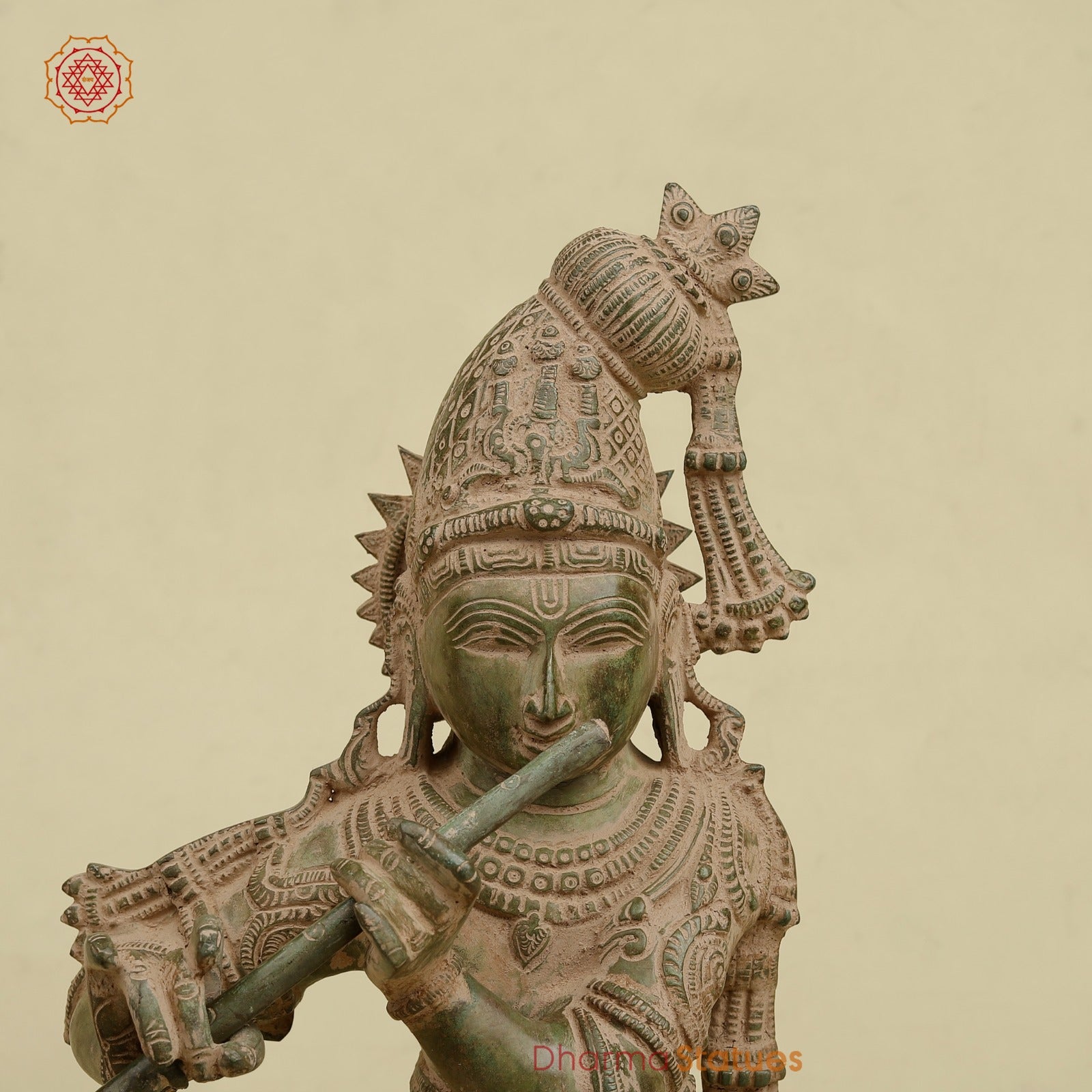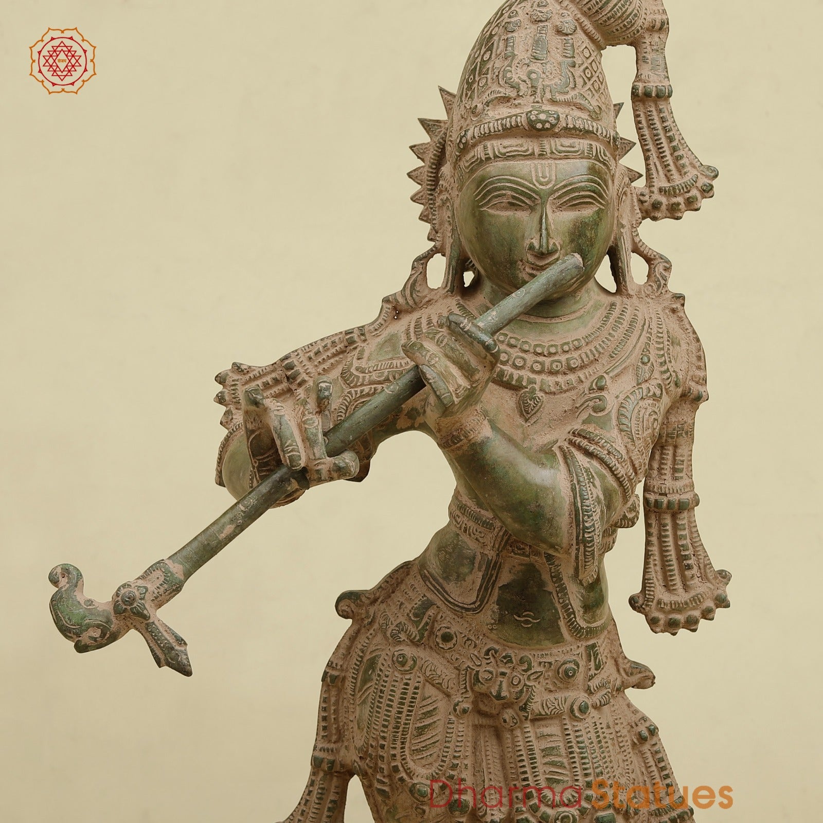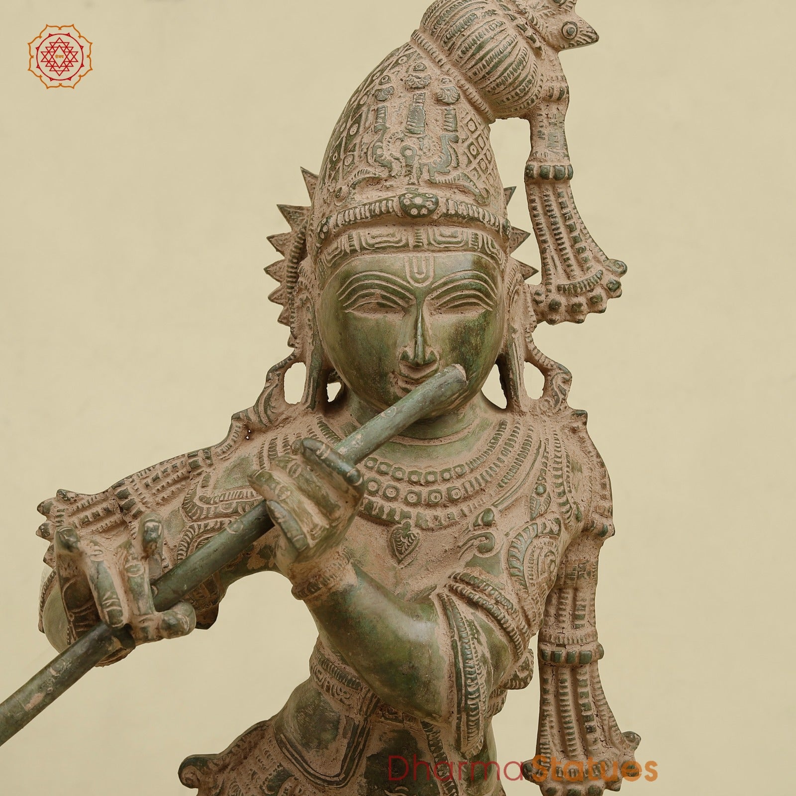 Brass Kalangi Krishna Fine, Antique Green 23”