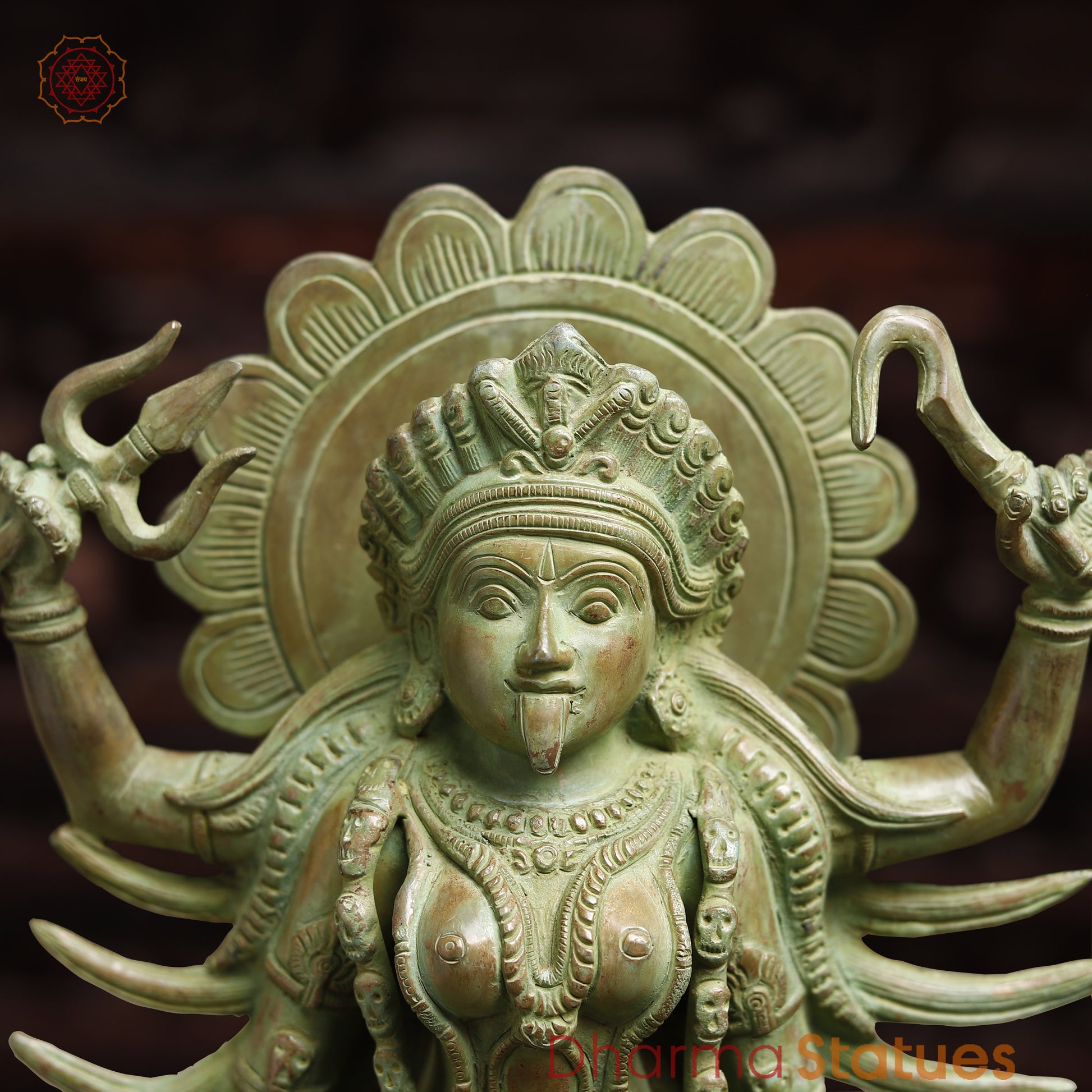 Brass Kali with 4-Arms, Green Patina Finish, 18.5"