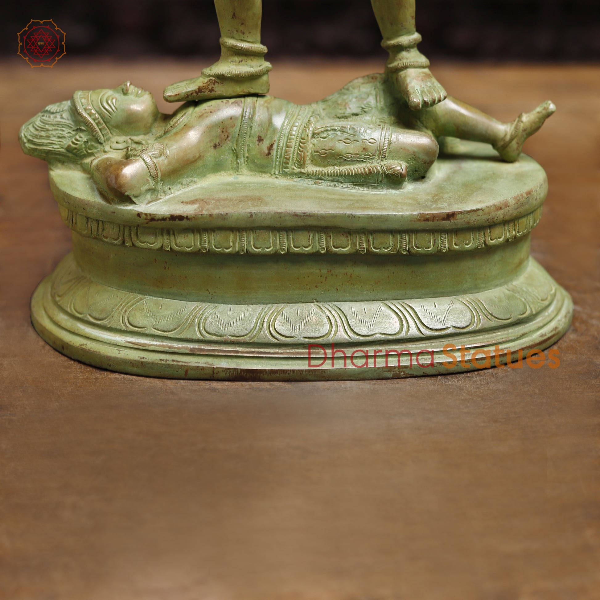 Crafted from high-quality brass, this stunning Kali statue features intricately carved 4-arms and a beautiful green patina finish. With its elegant design and sturdy construction, it is a perfect addition to your home decor. Enhance your space with the divine energy and aesthetic charm of this 18.5" masterpiece.